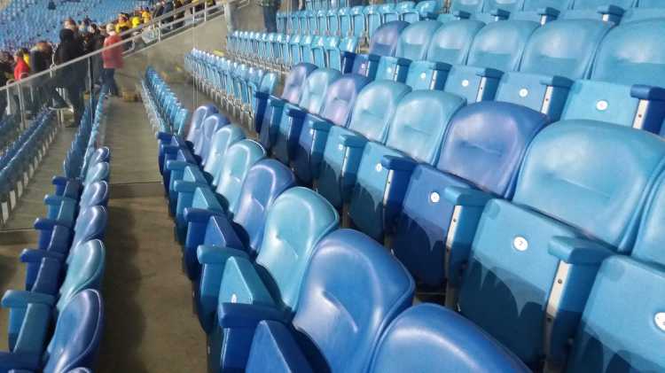 |  | | Sektor Premium, a po drugiej stronie taśmy - sektor VIP. Miękkość siedzeń ta sama, za to u nas brak darmowego poczęstunku i programów meczowych | |