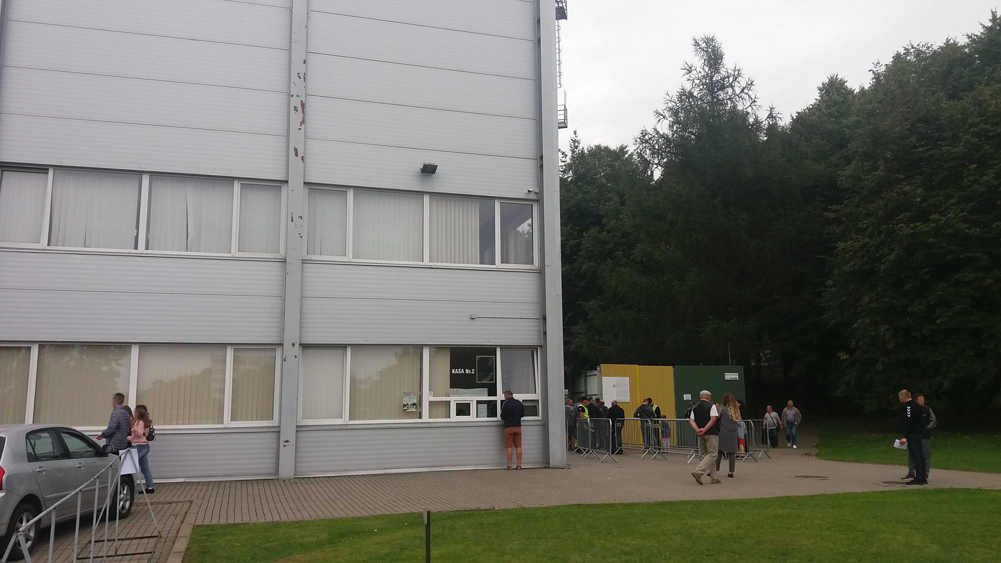 |  | | Kasy biletowe i kolejka chętnych do wejścia na stadion | |