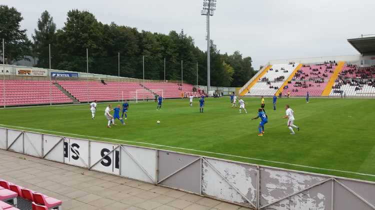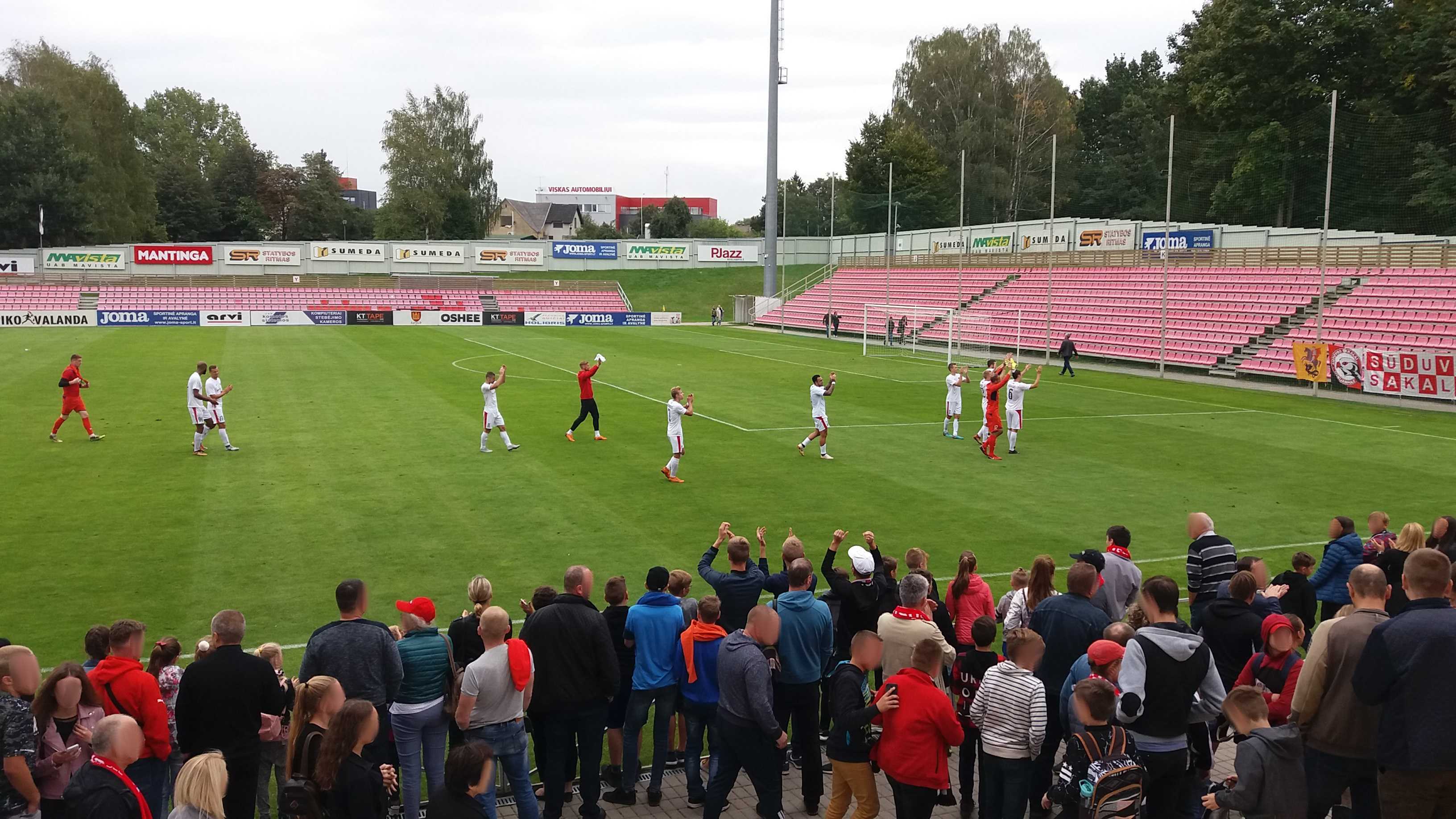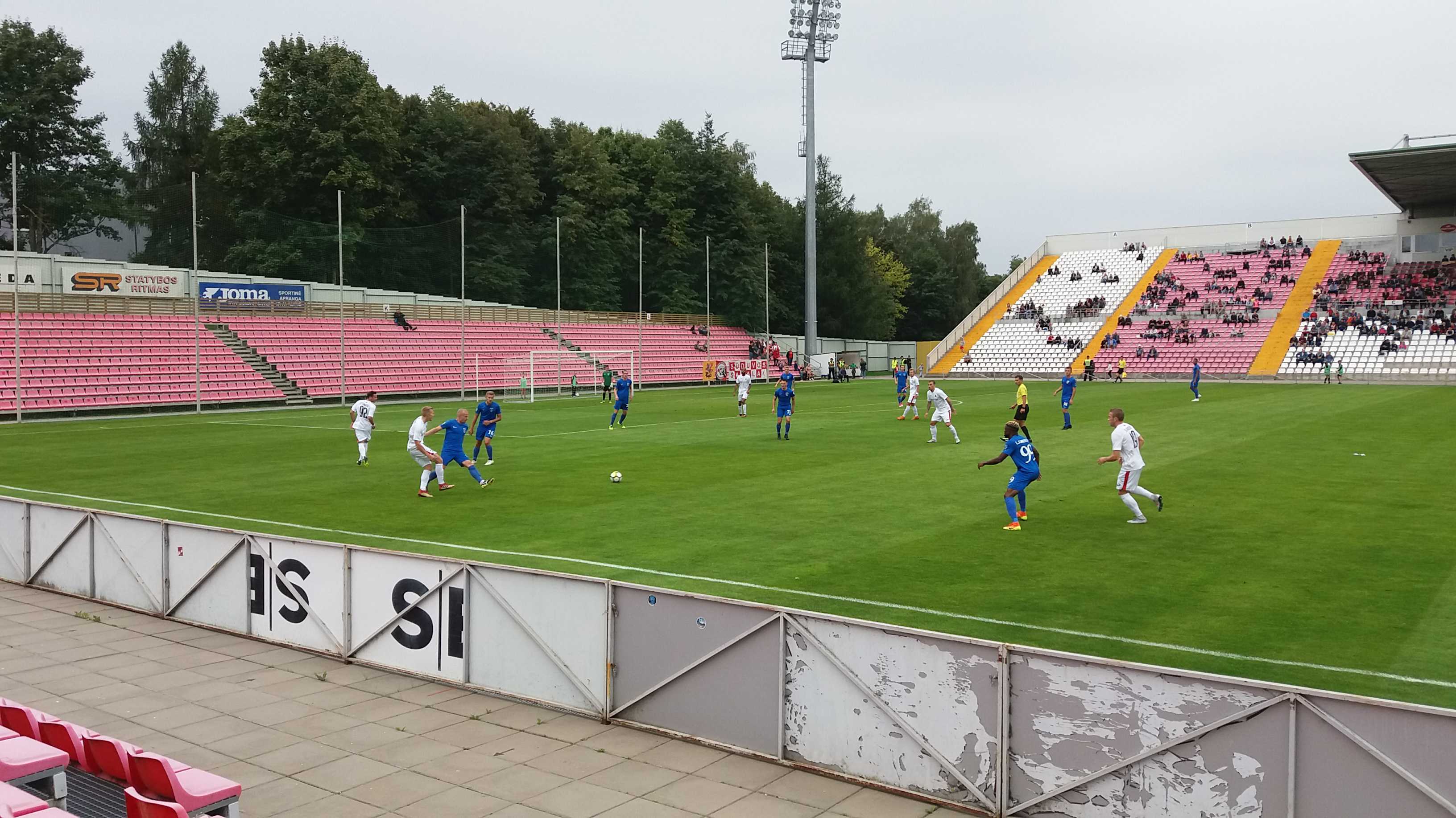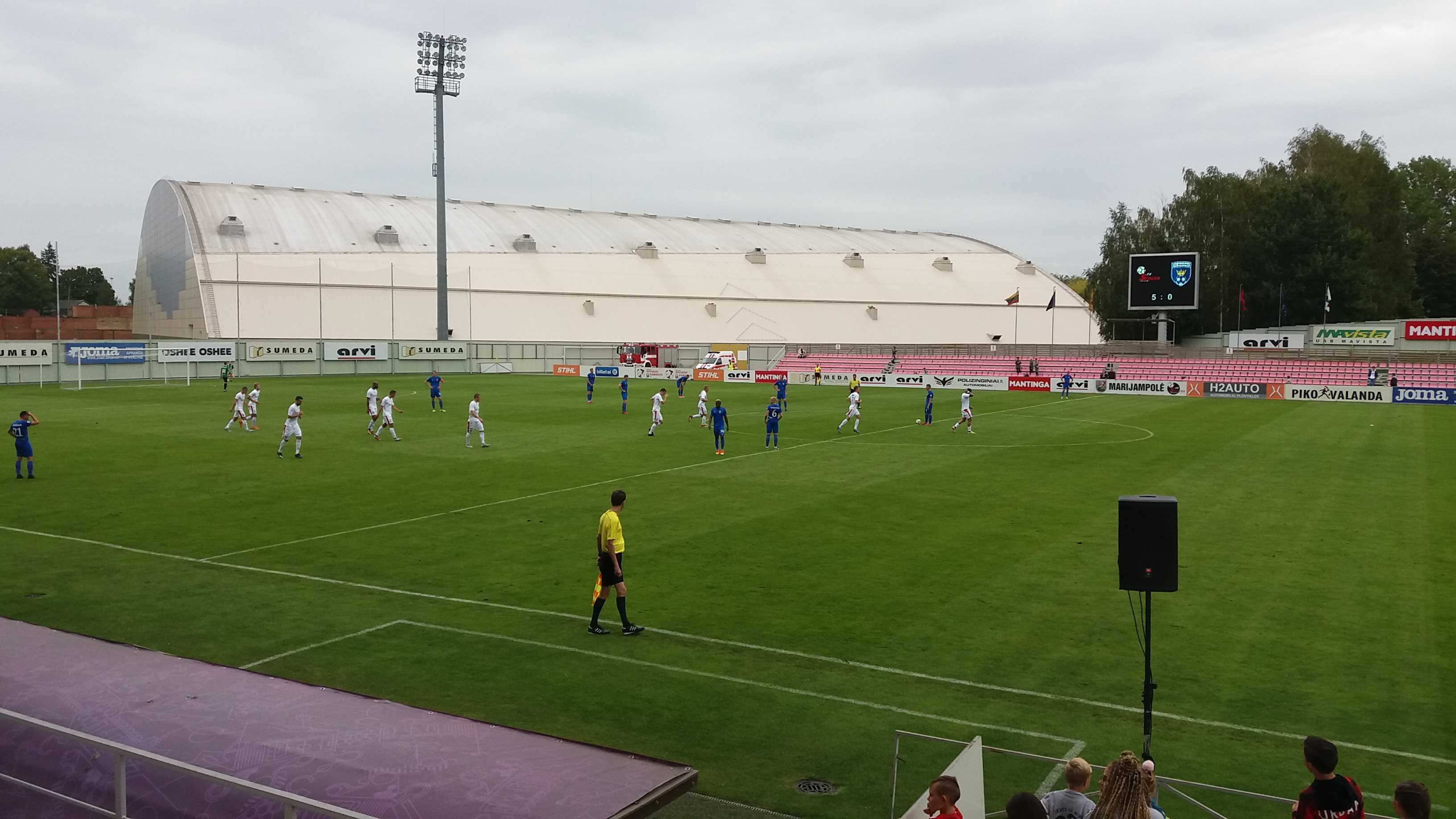 |  | | Końcówka pierwszej połowy; gracze Suduvy wracają na własną połowę po drugim golu Gotalasa | |