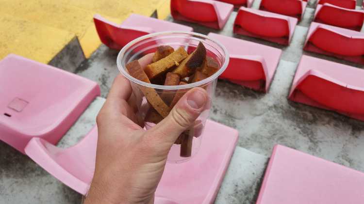 |  | | Bałtycki przysmak, czyli sucharki podsmażane w oleju z czosnkiem. Widać również krzesełka na głównej i moje poobgryzane palce | |