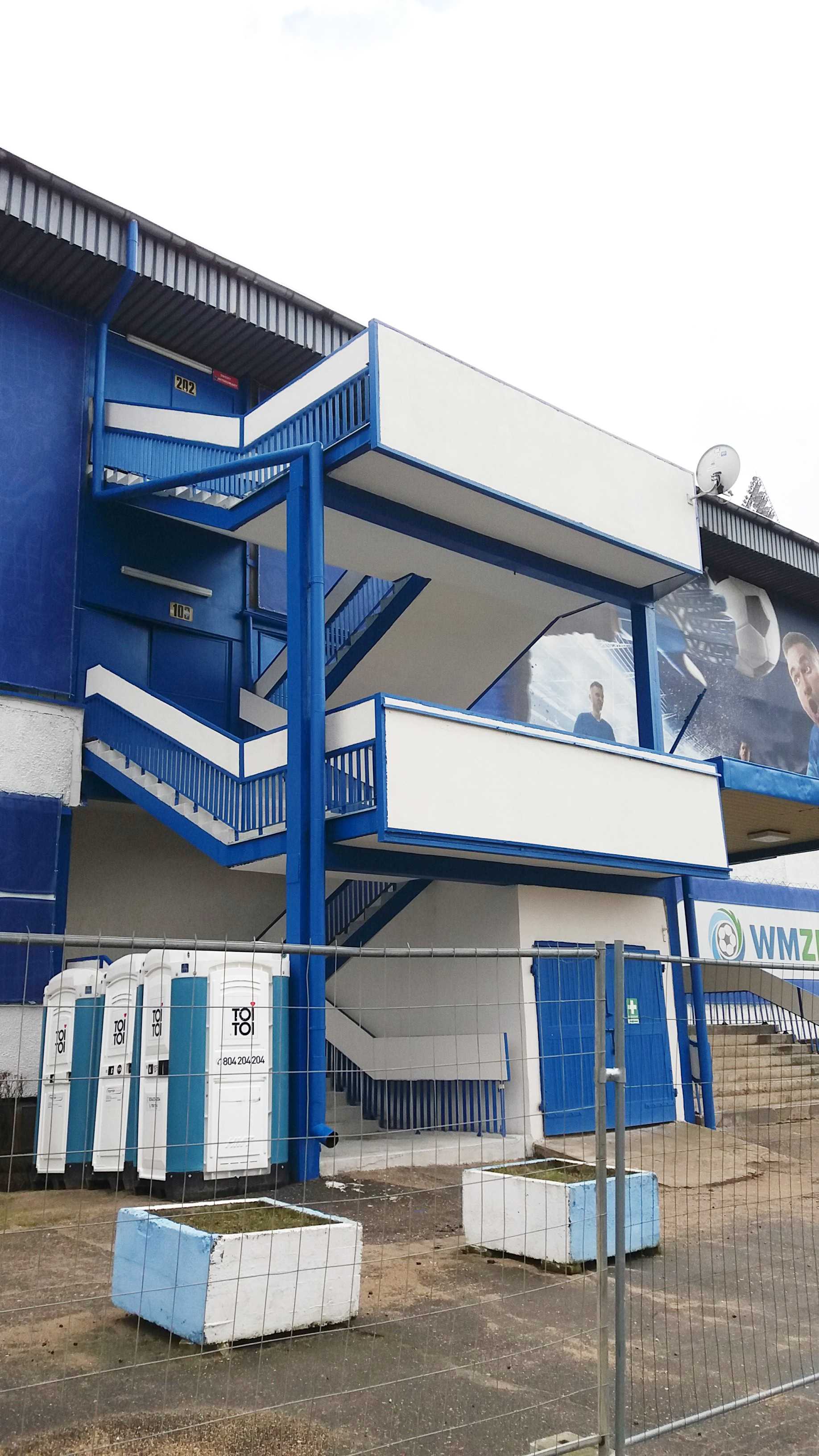 |  | | Kawałek trybuny Odkrytej, wyłączonej z użytku. Funkcjonuje jedynie widoczny gdzieś na zdjęciu sektor gości | |