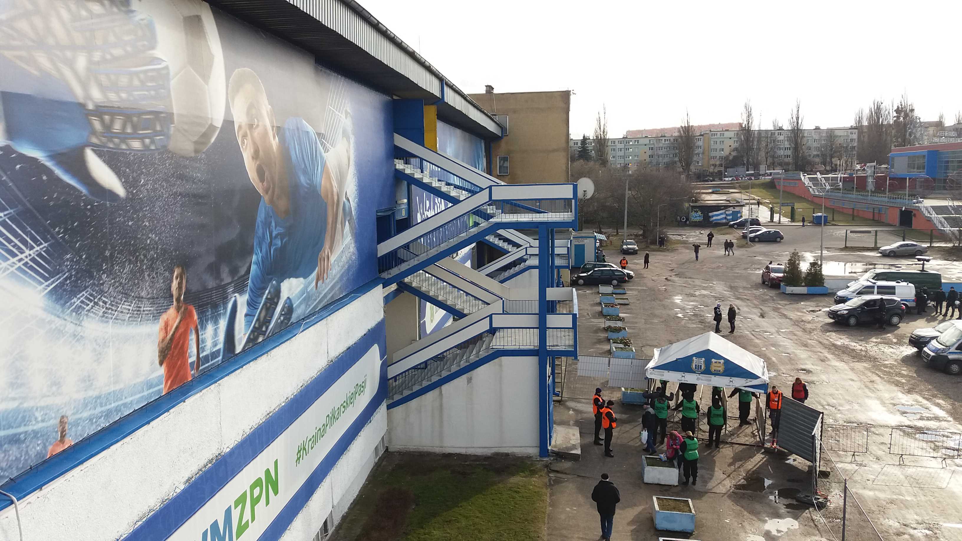 |  | | Front stadionu w Olsztynie. Bardzo ładne murale i druki wielkoformatowe (ale ten asfalt...) | |