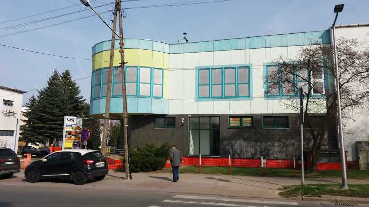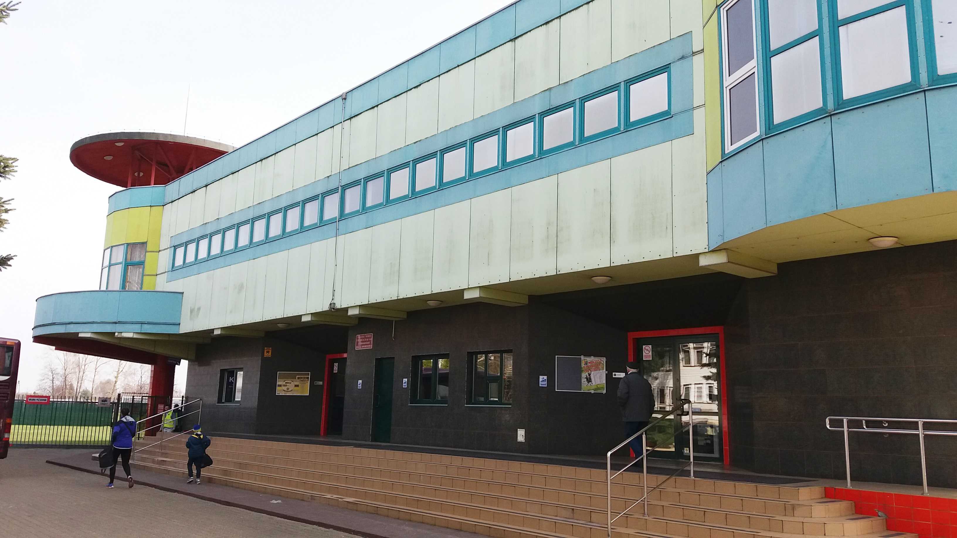 |  | | MOSiR Skierniewice - znów główny budynek; na zdjęciu można dostrzec otwarte okienko kas | |