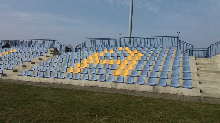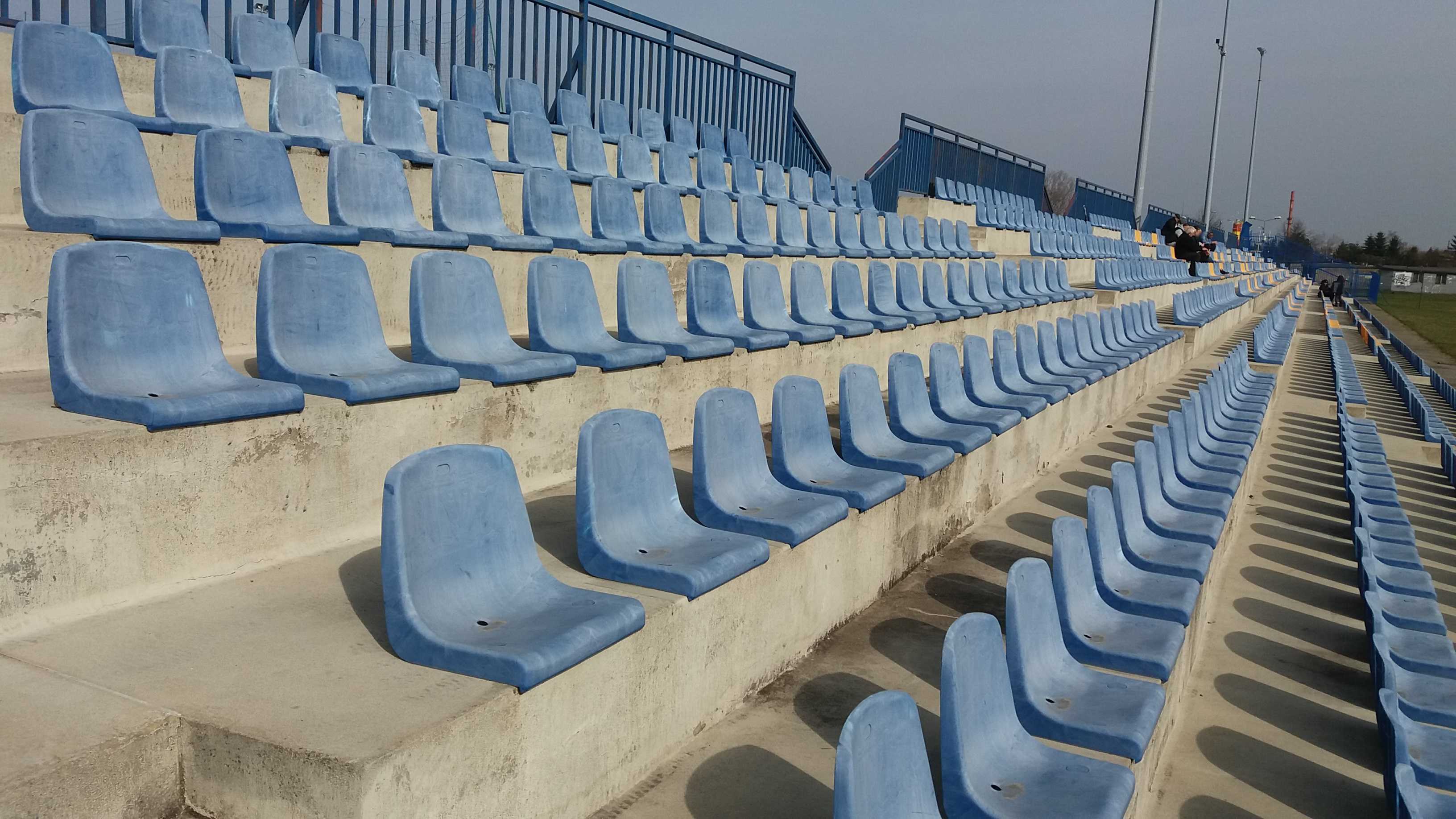|  | | Trybuna, która pewnie kiedyś była główna - dziś znajdują się tam stanowiska dla spikerów i mediow. Oraz ławki rezerwowych | |