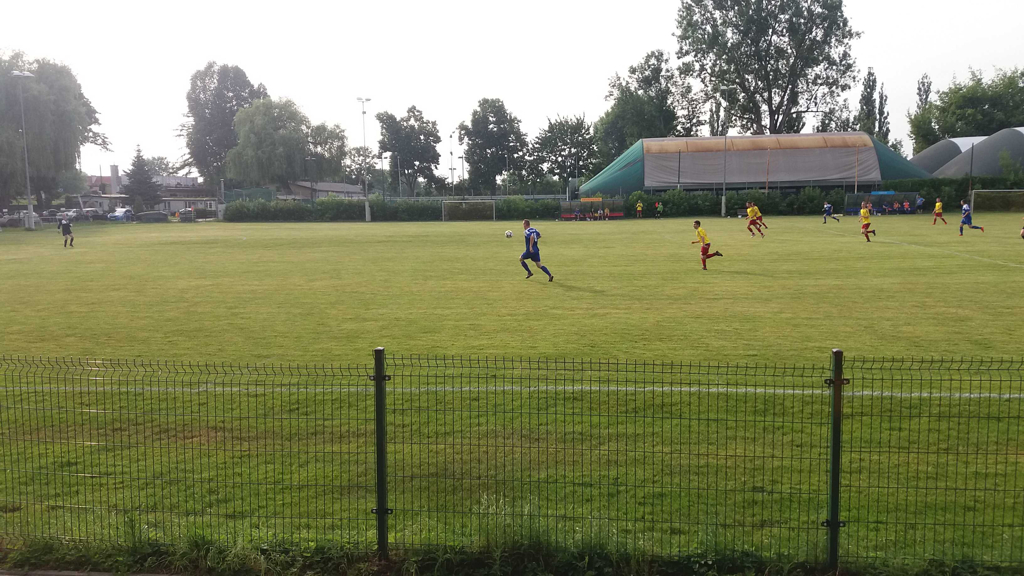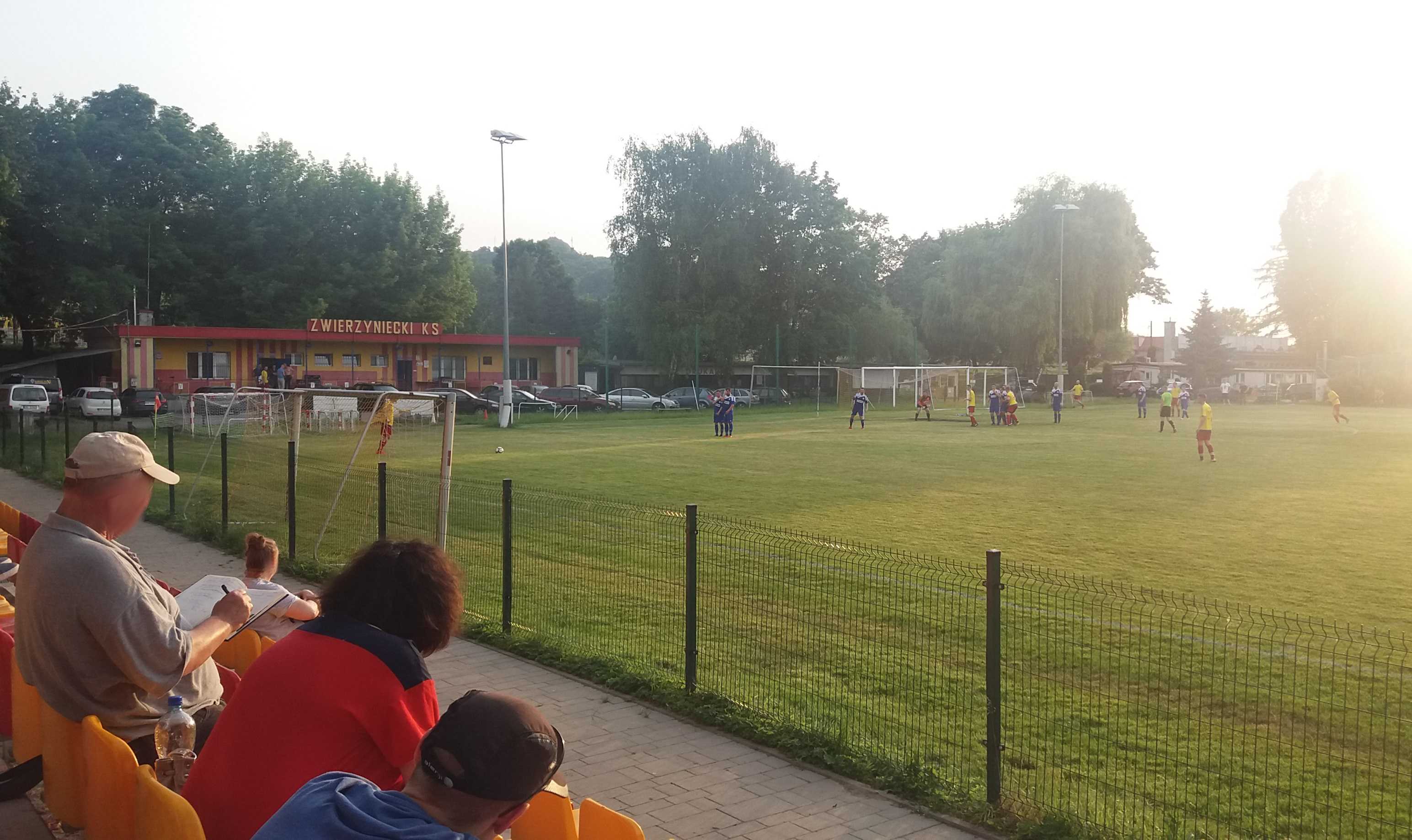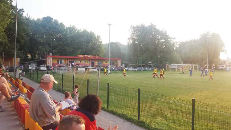 |  | | Bramkarz Bieżanowianki wraca z piłką na boisko, a spostrzegawczy powinni dojrzeć jednego z rezerwowych Zwierzynieckiego KS-u poszukującego piłki za linią końcową | |