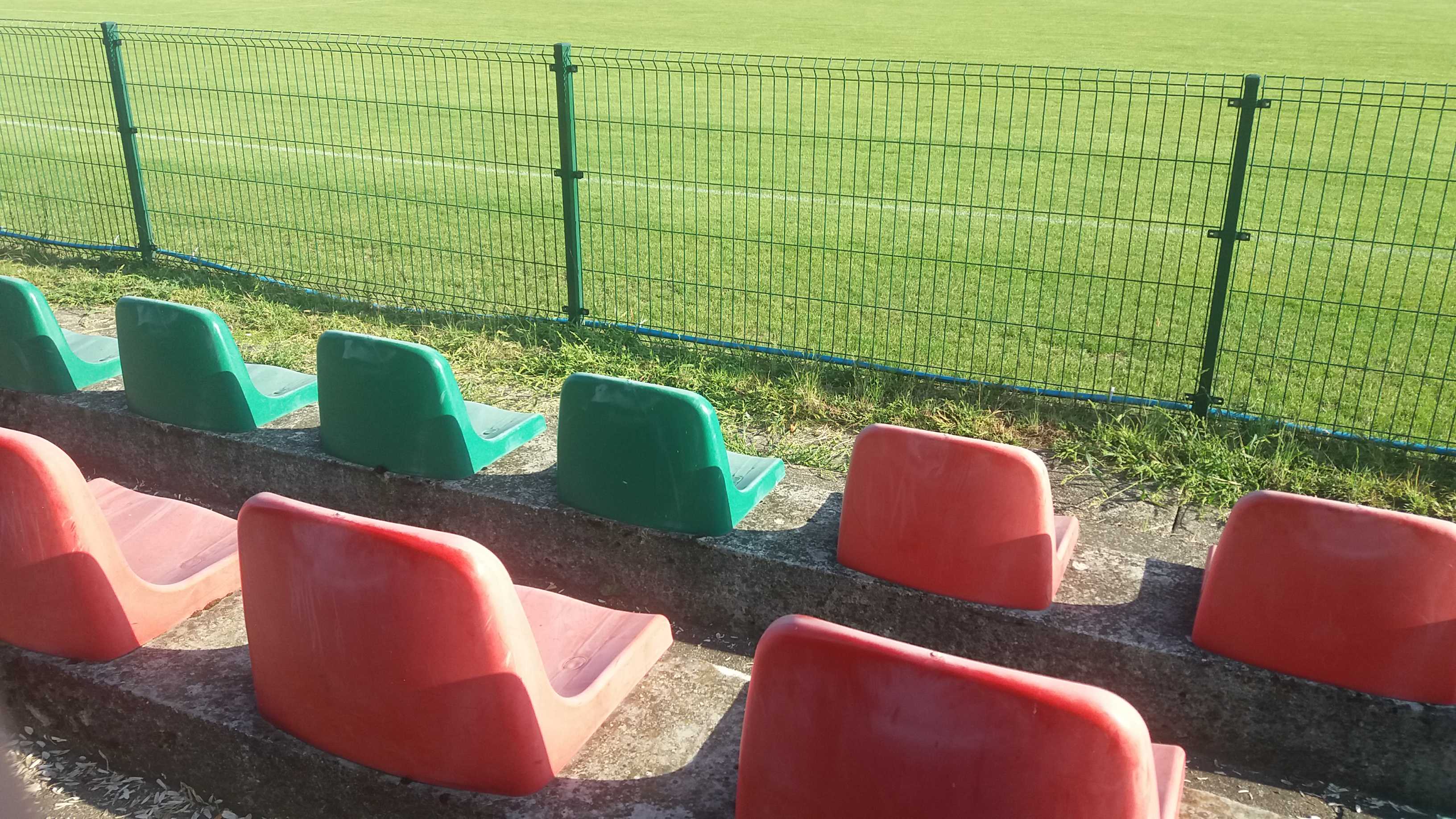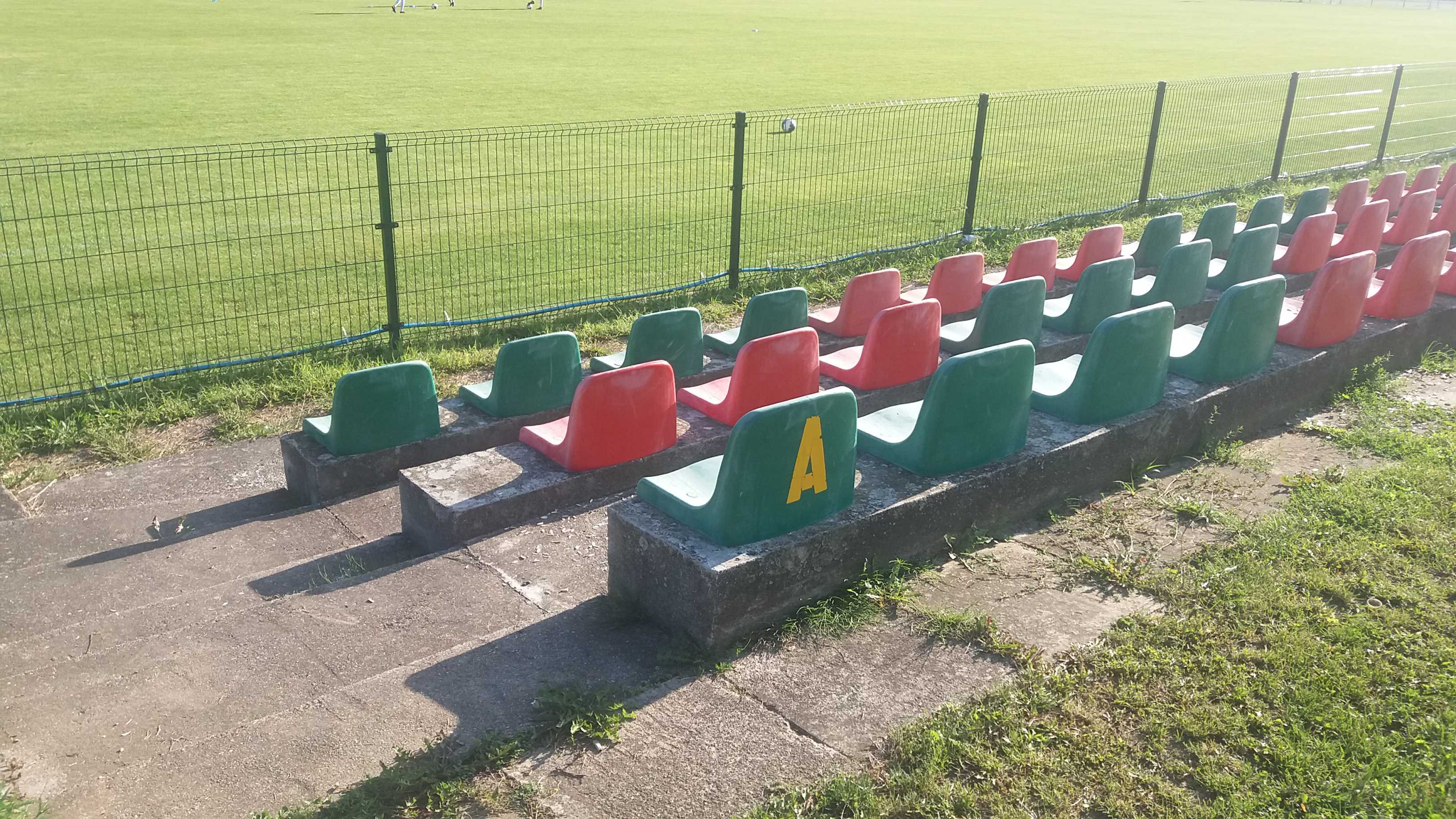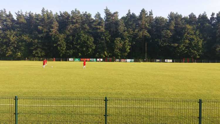 |  | | Przerwa. Podoba mi się las tuż za boiskiem + w powiększeniu widać fajną ławkę rezerwowych gości. | |
