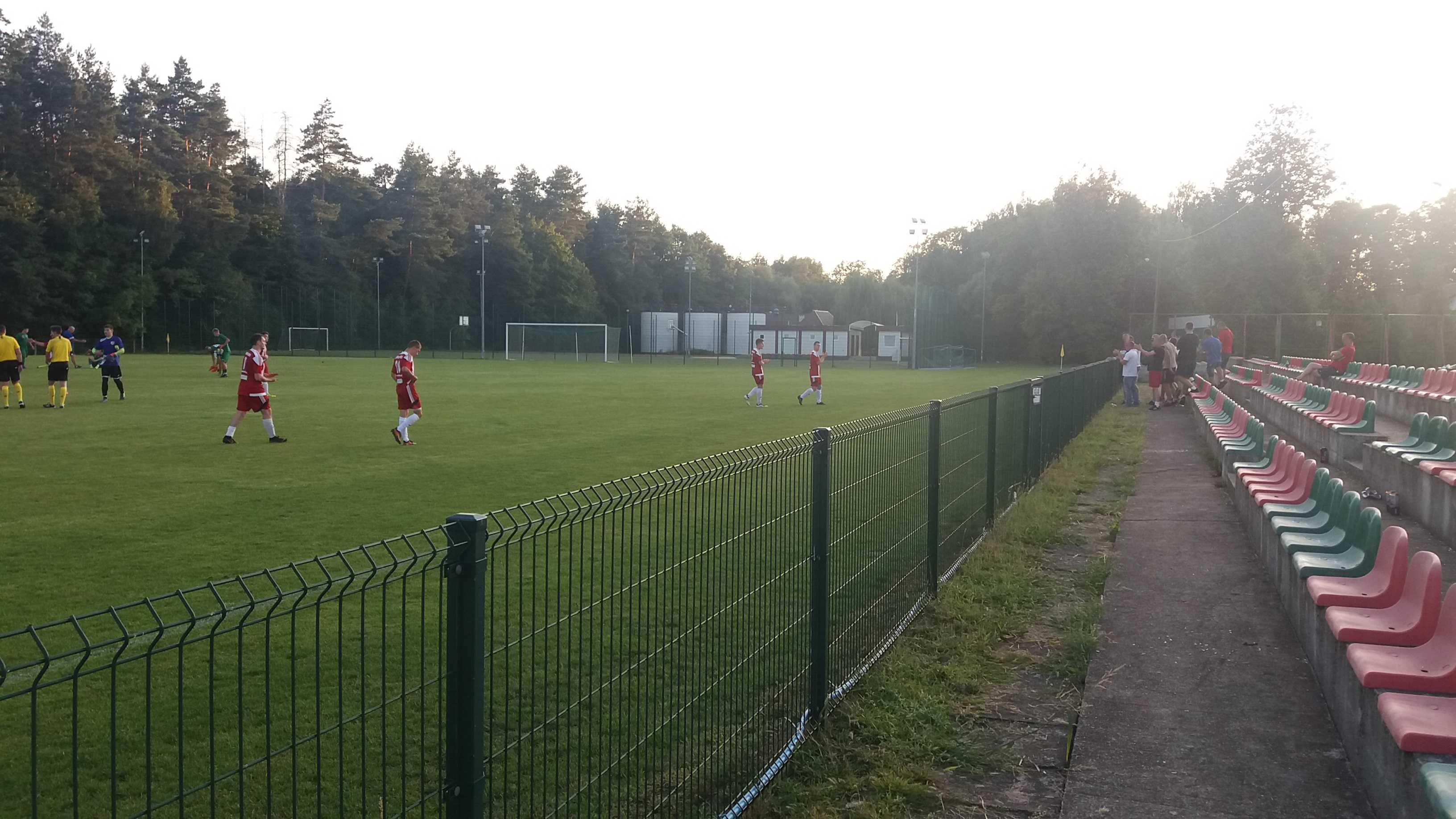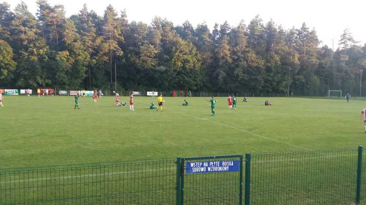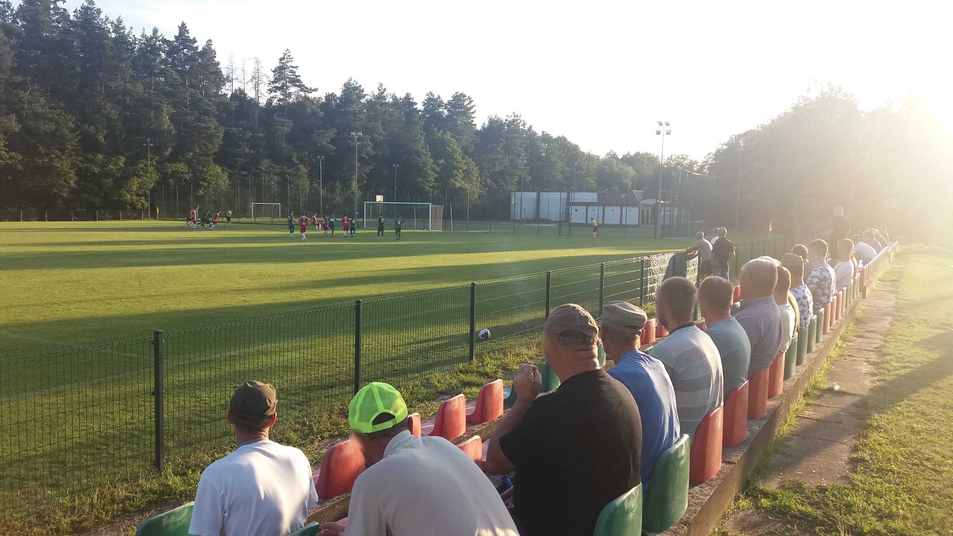 |  | | 14. minuta, radość gości z Dąbrowy Białostockiej po golu Ołowia. Nic nie widać przez to cholerne słońce | |