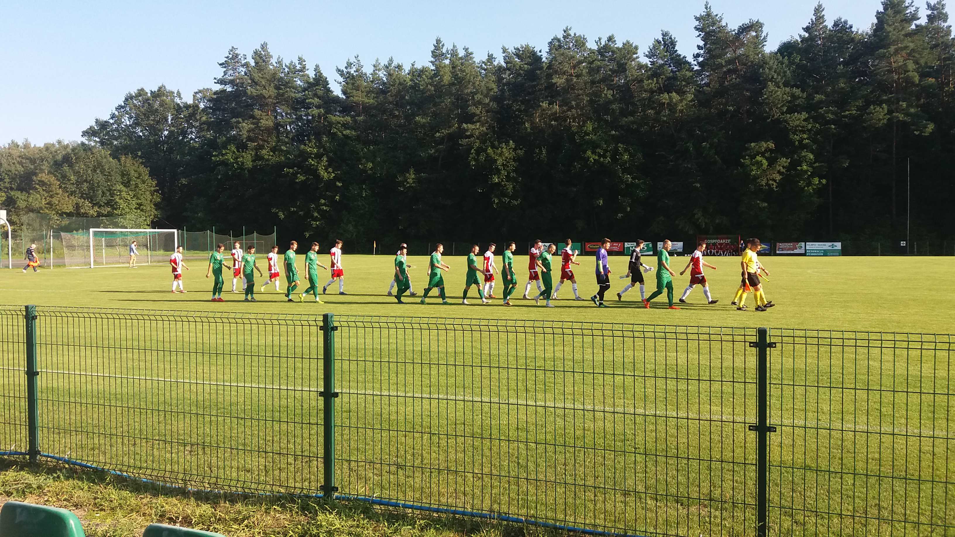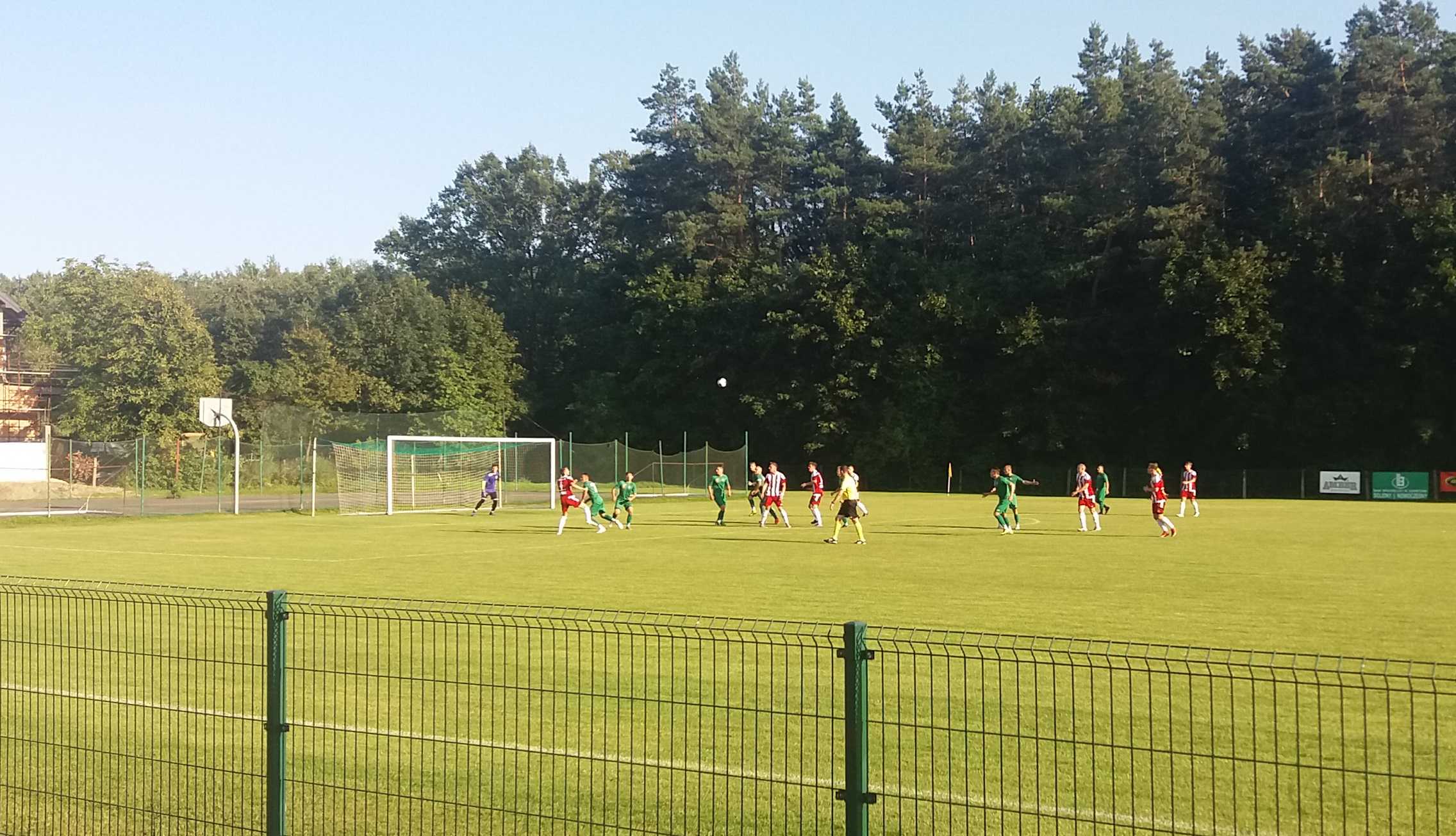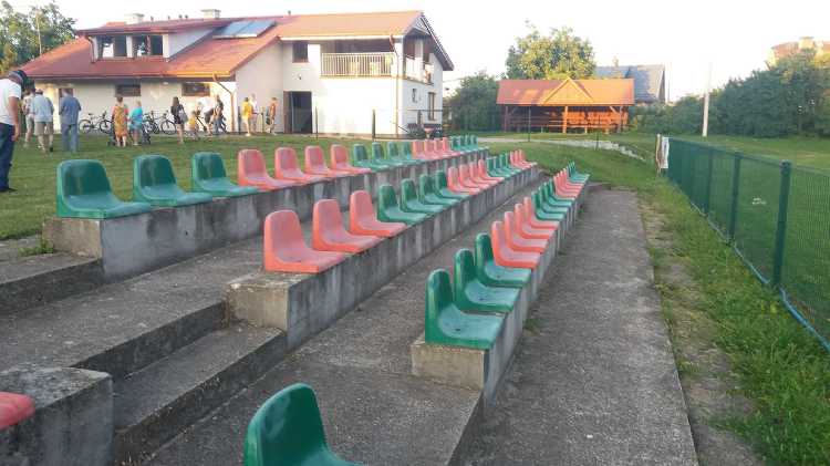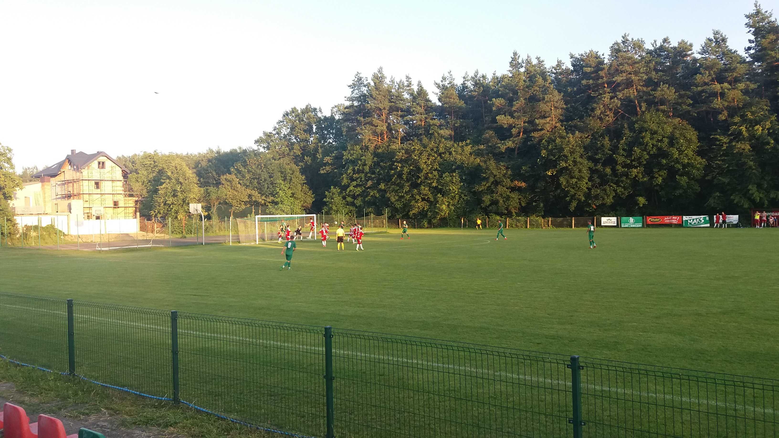 |  | | 14. minuta, radość gości z Dąbrowy Białostockiej po golu Ołowia. Nic nie widać przez to cholerne słońce | |