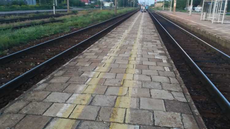 |  | | Peron 3. na stacji kolejowej Szepietowo. Zgodnie z regulaminem, podróżni powinni się chyba skompresować pomiędzy tymi dwoma liniami | |