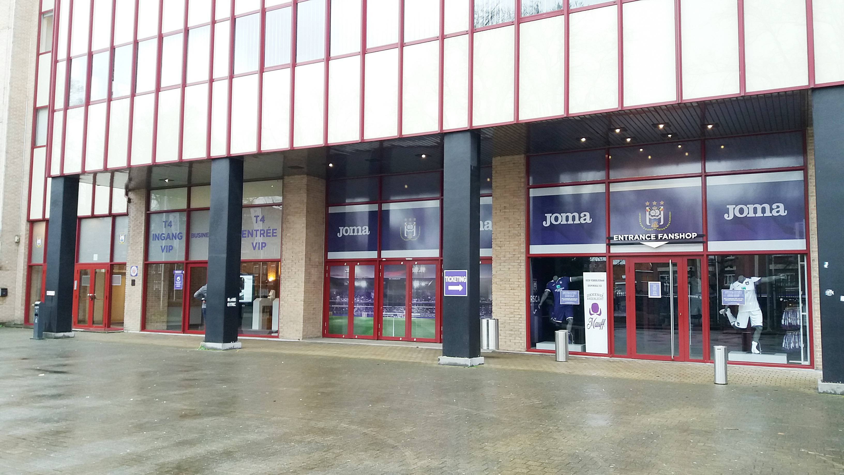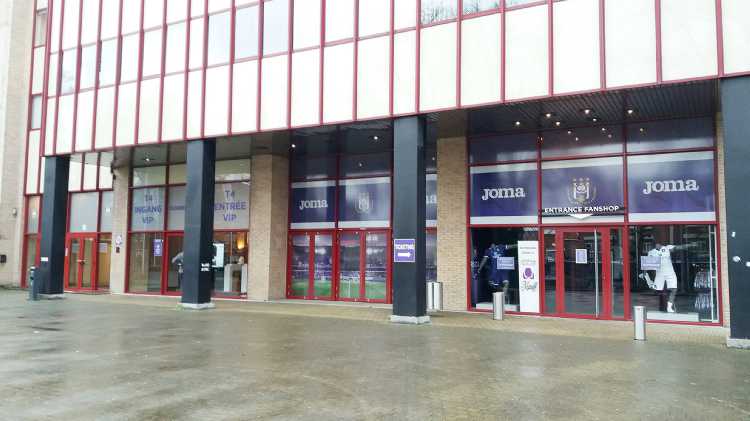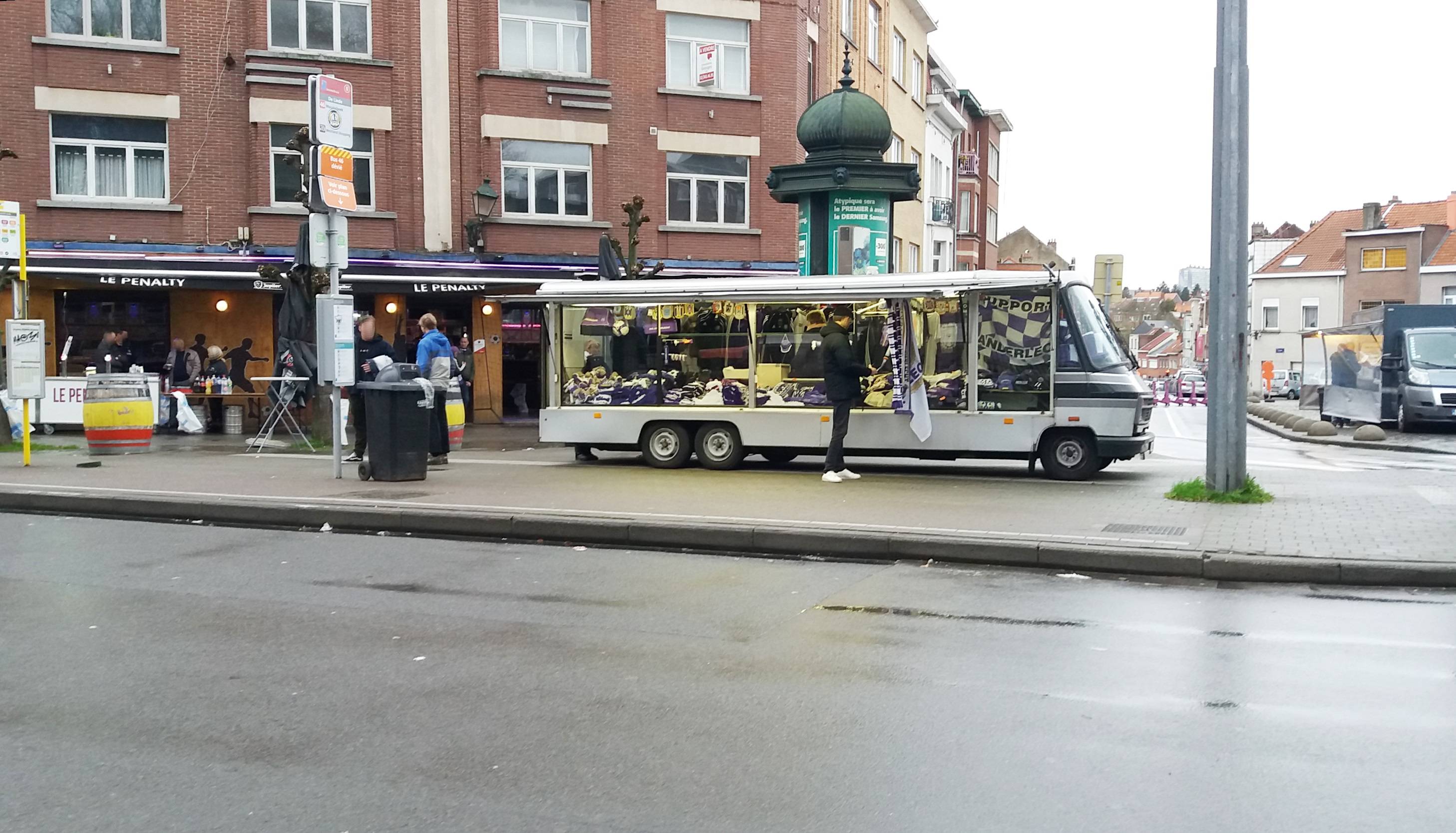|  | | Pod stadionem - van, z którego sprzedawane są pamiątki bez licencji. A więc również bez klubowego herbu (samej nazwy Anderlecht oczywiście nikt zastrzec nie może, w końcu to nazwa miasta) | |
