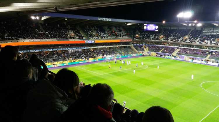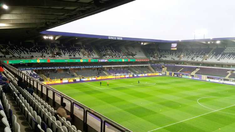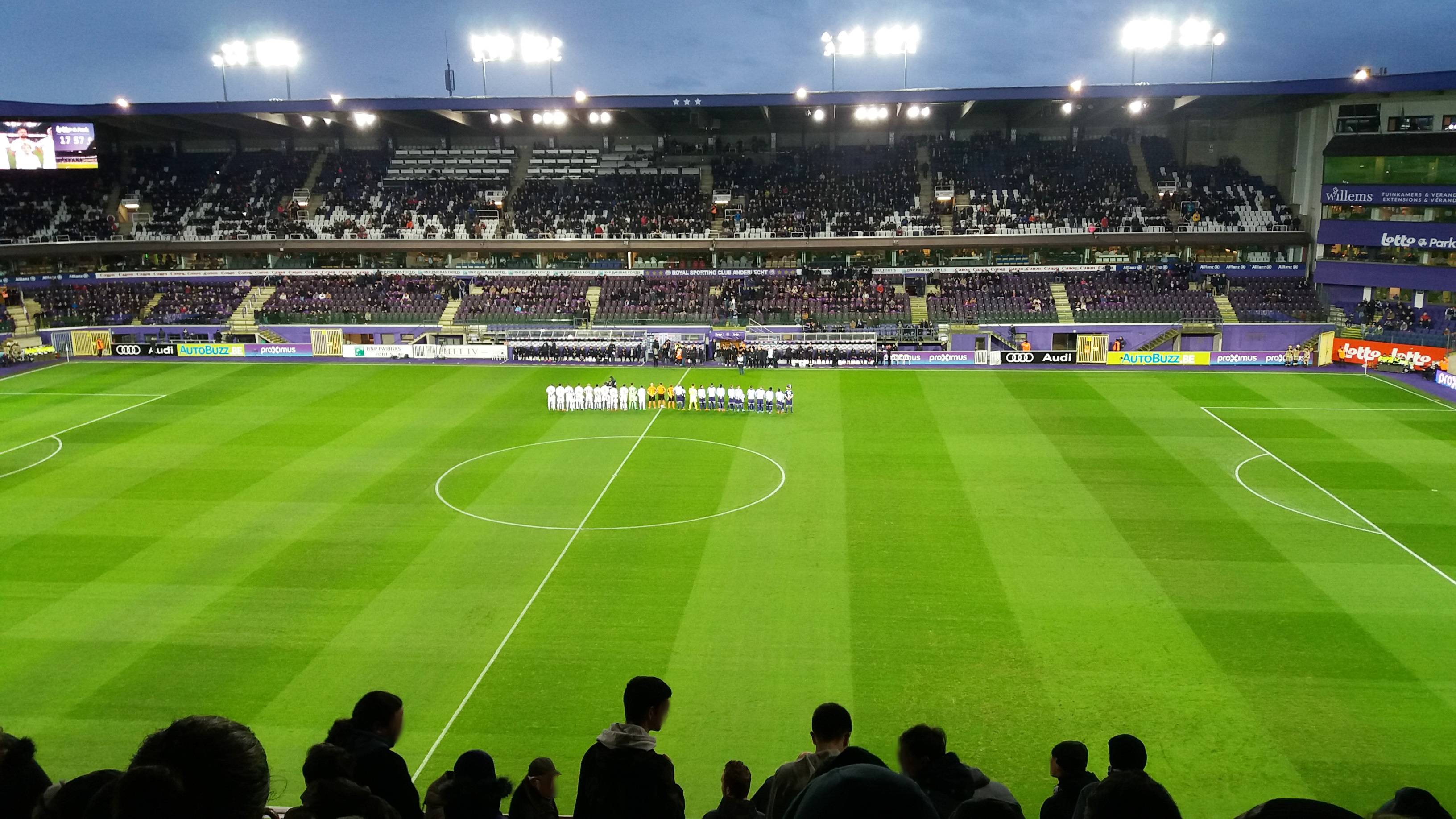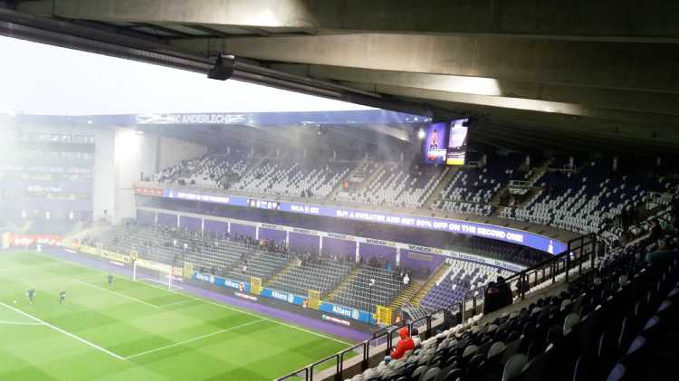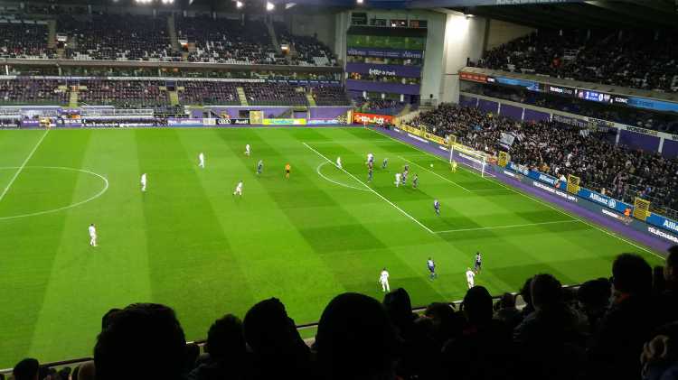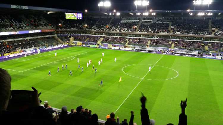 |  | | Kick-off. Na szczęście, Anderlecht pod białymi bluzami dresowymi miał fiołkowe trykoty. | |