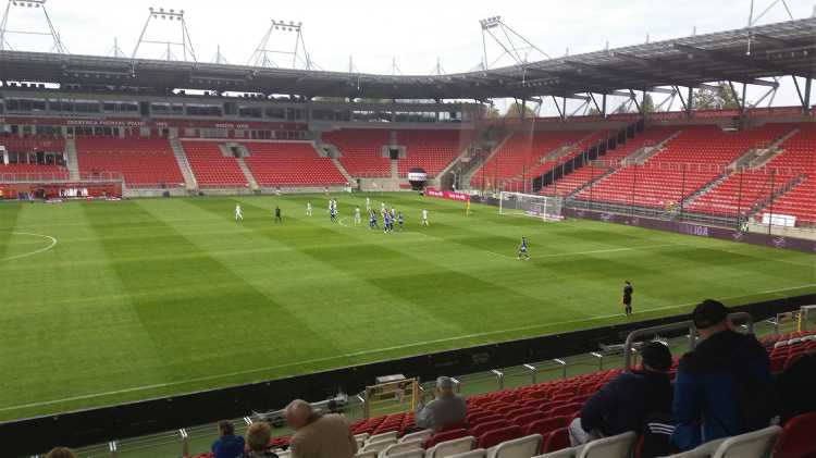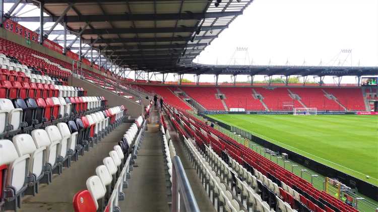 |  | | Rzut oka na trybunę (nie ma na niej więcej niż 150 kibiców) | |