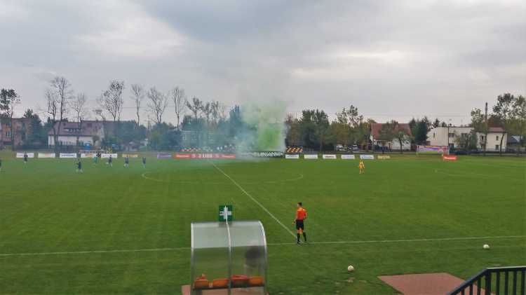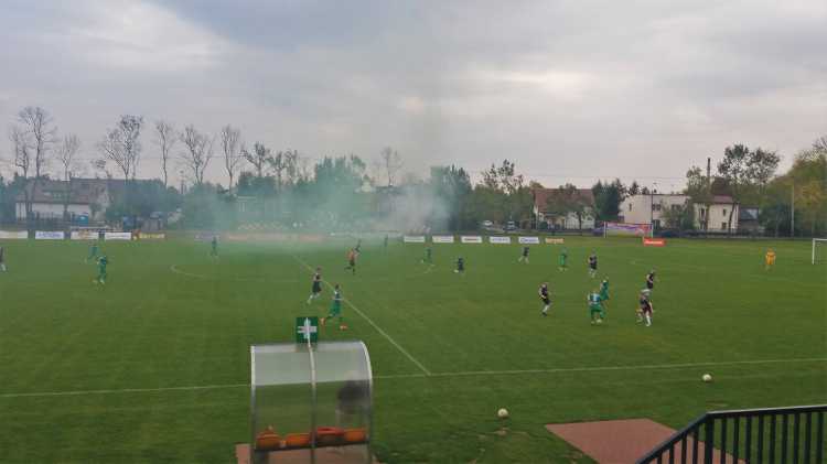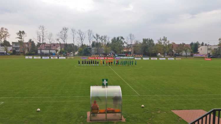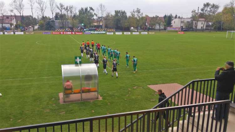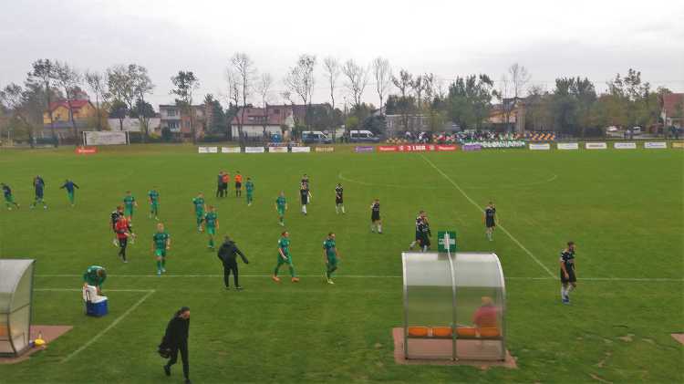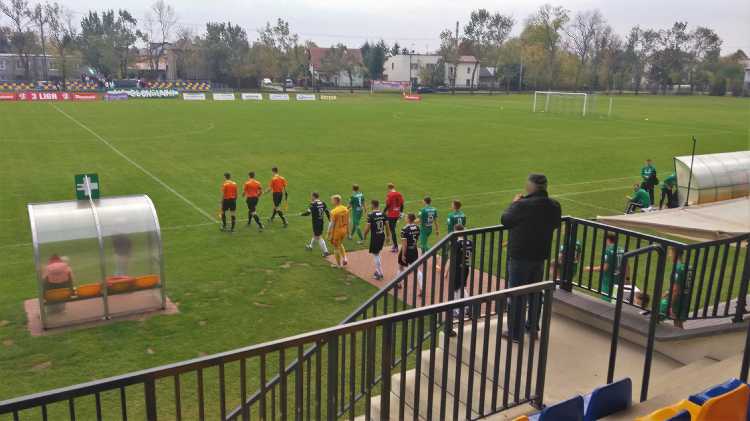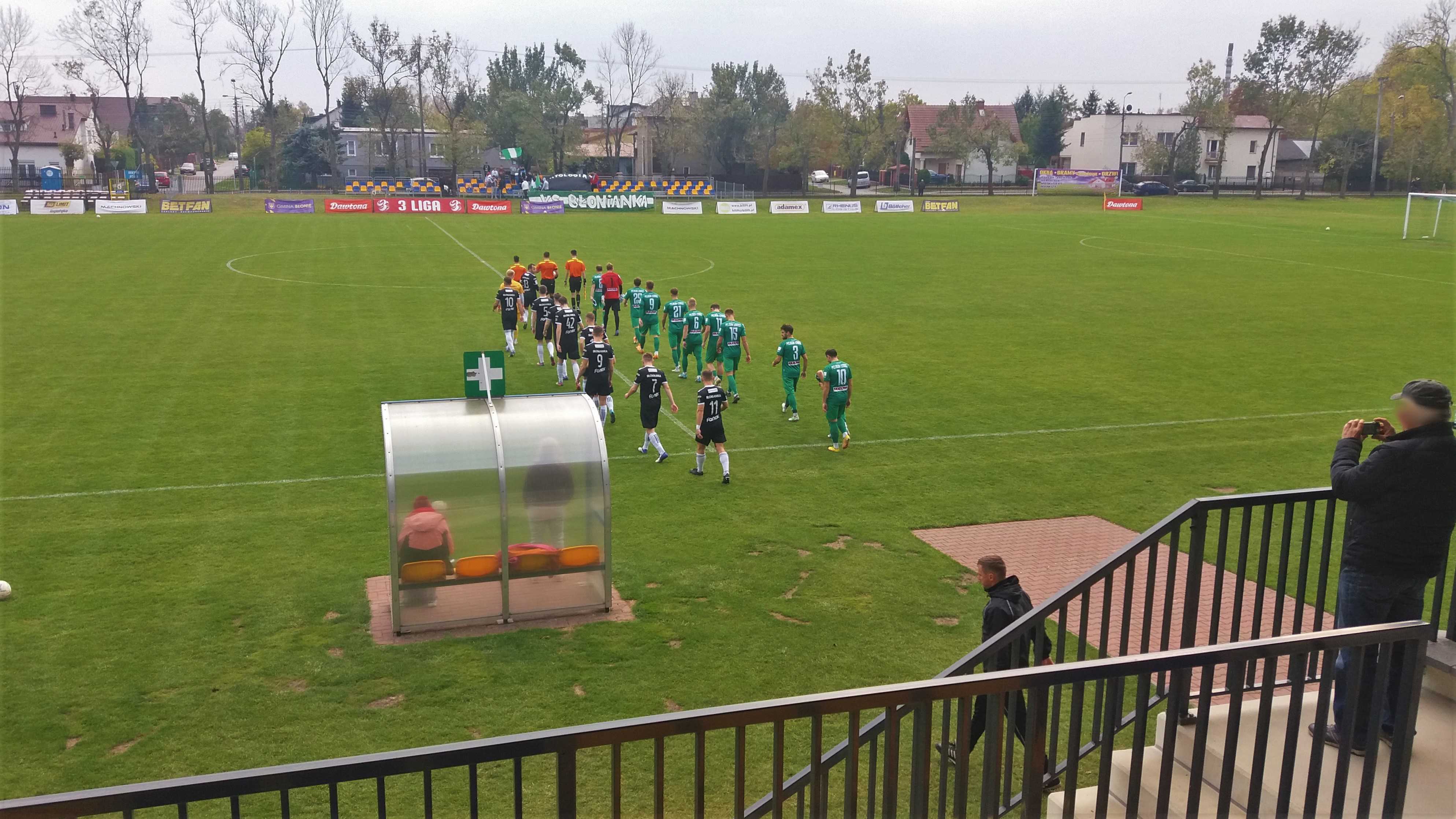 |  | | Piłkarze schodząna przerwę przy stanie 1:0 dla Błonianki | |
