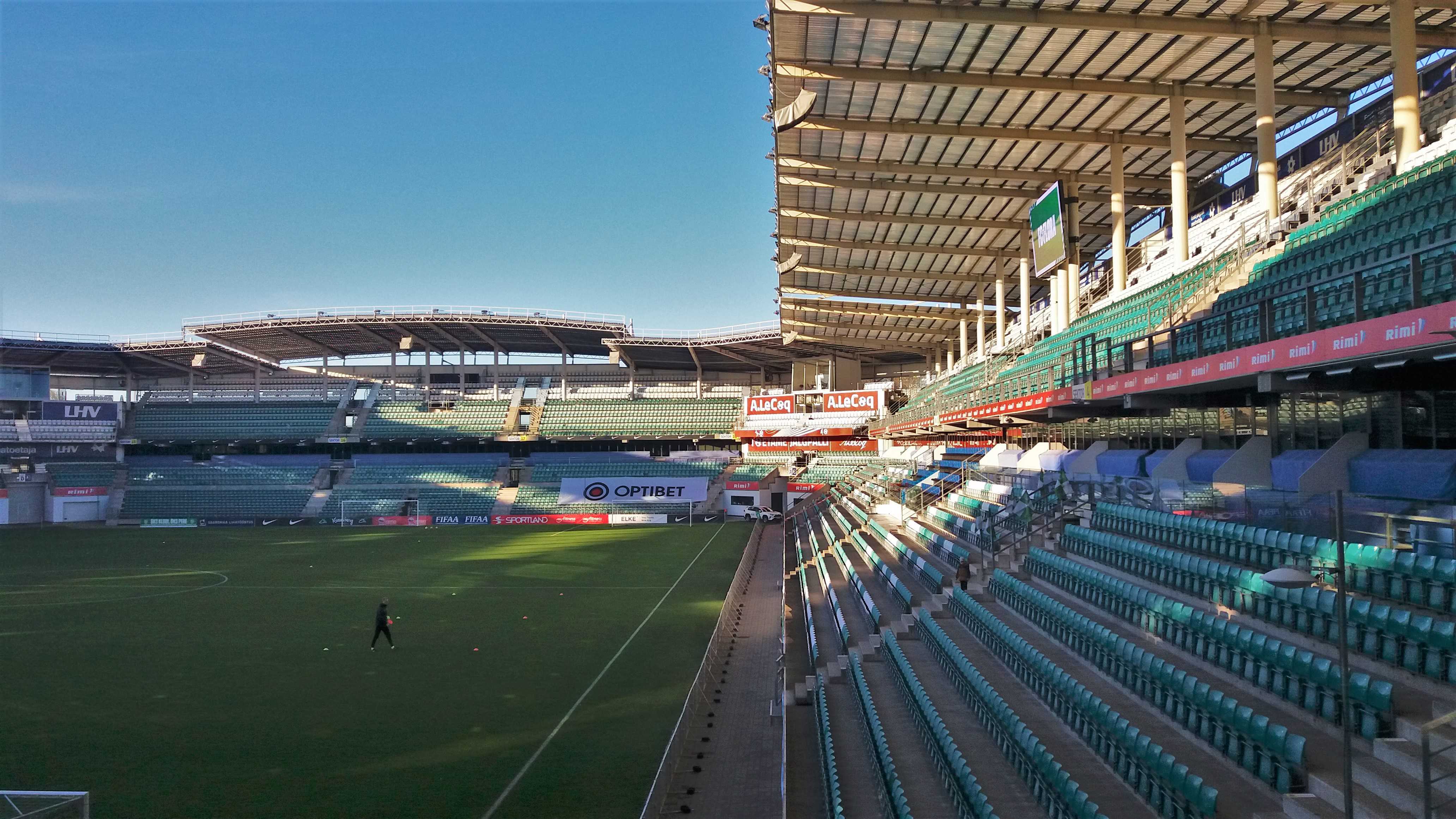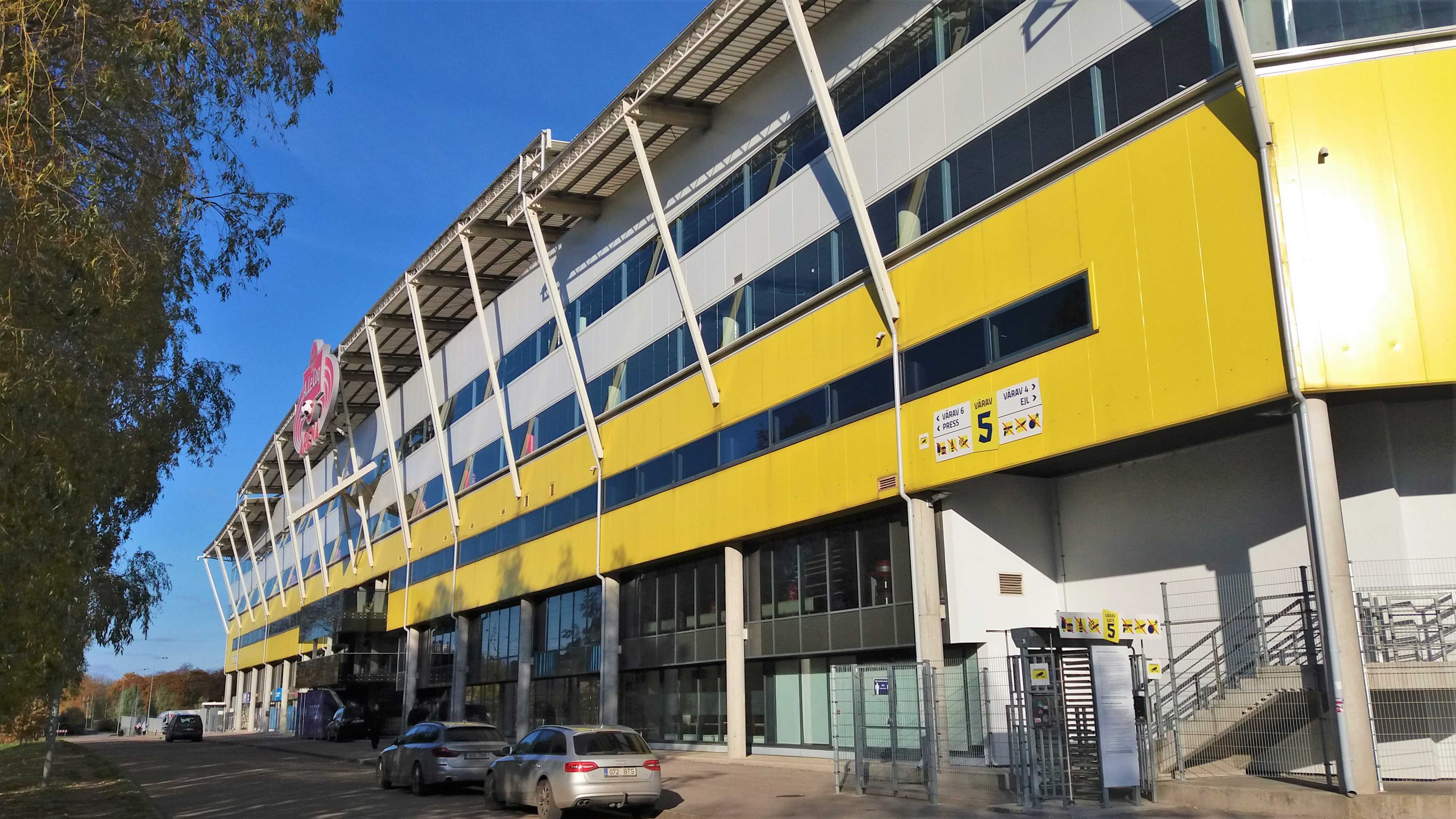 |  | | A. Le Coq Arena od strony zachodniej (bardzo mi się podoba, że ta piłka w logo browaru jest w 3D) | |