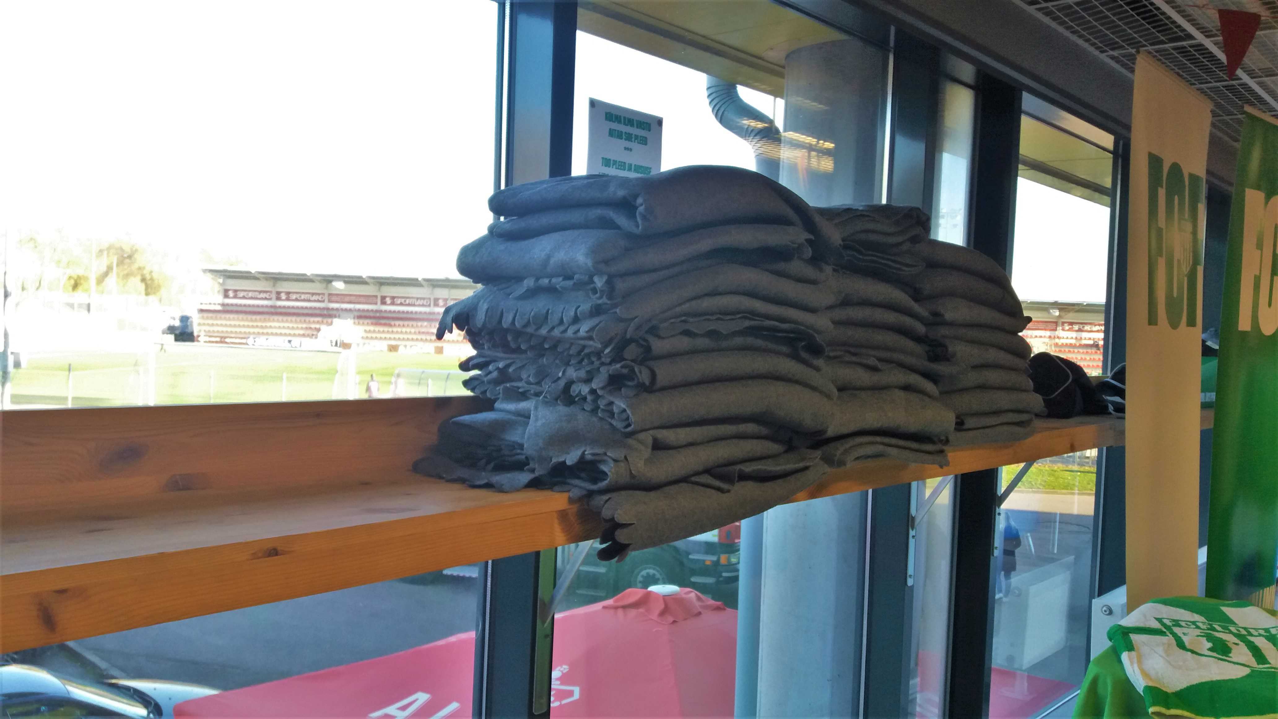 |  | | Wystawka w sklepie Sportland na terenie stadionu - koszulki piłkarskie wszystkich klubów Premier Liigi | |