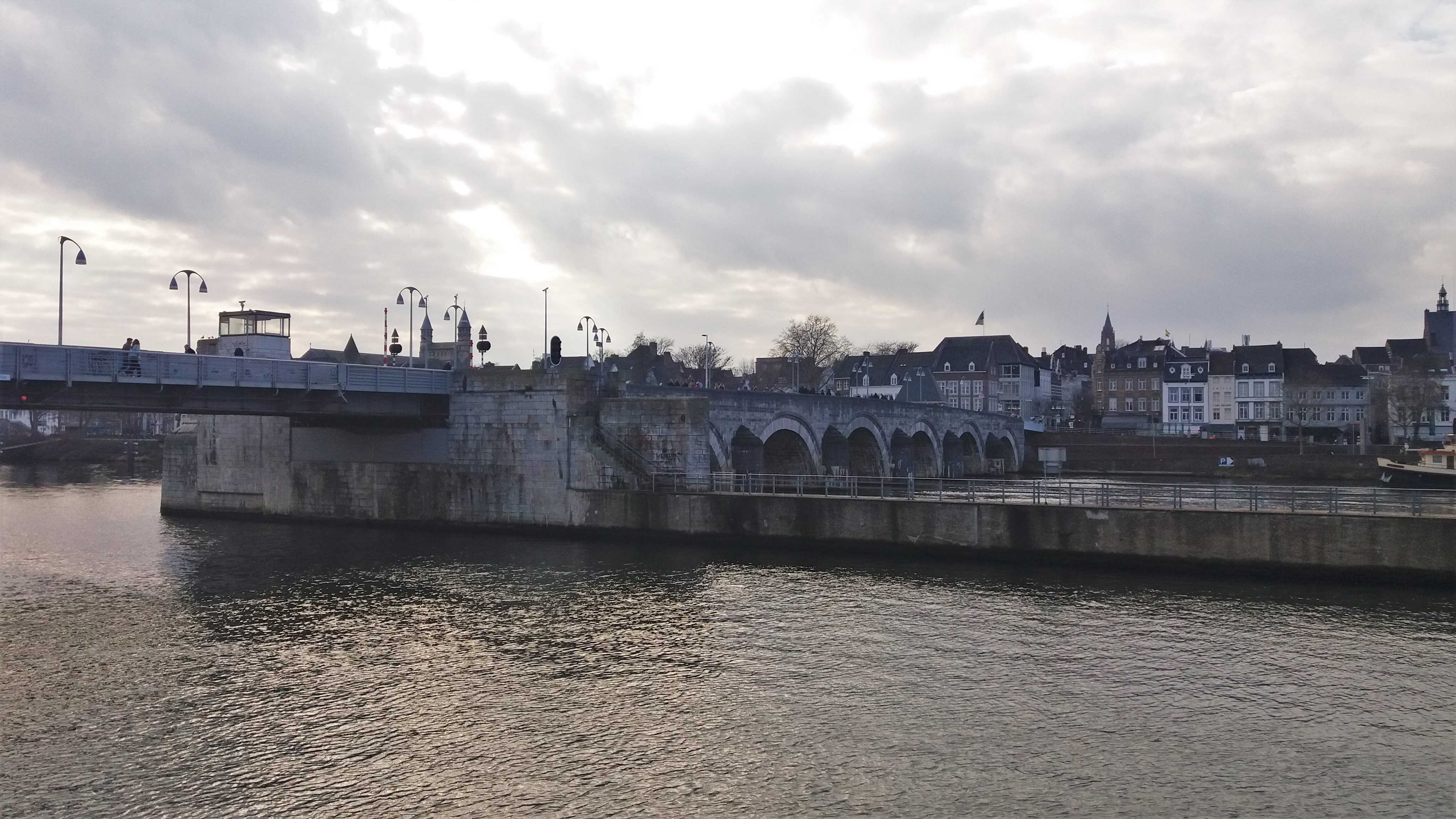 |  | | Sobotni poranek - widok na Mozę z perspektywy kładki dla pieszych | |