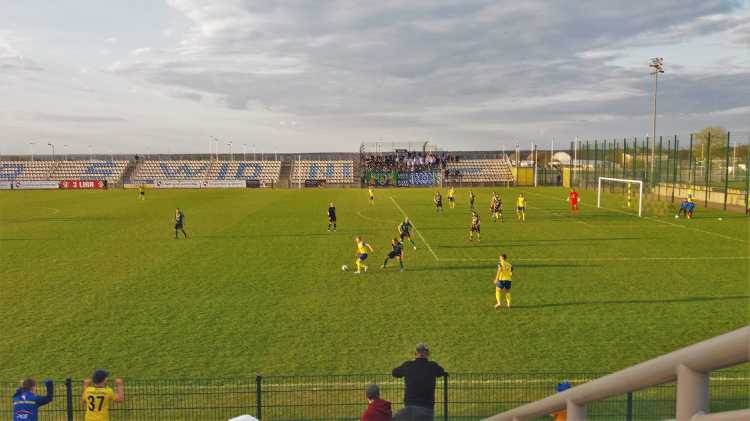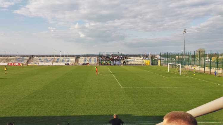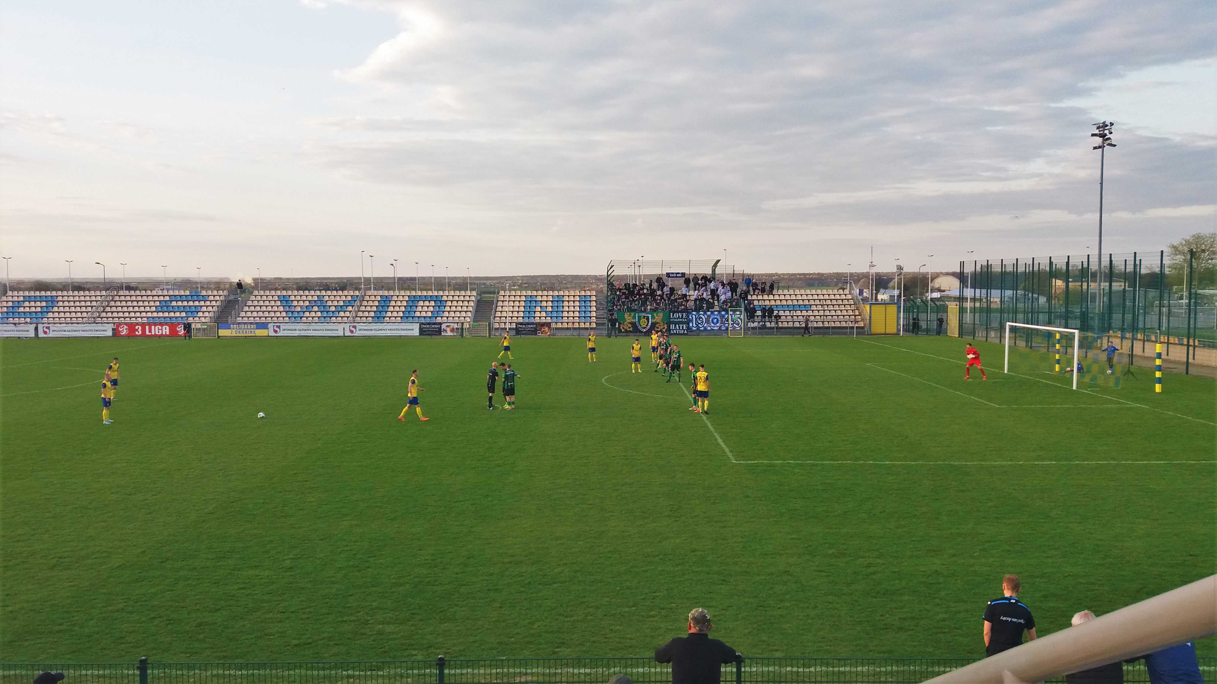 |  | | Arkadiusza Ziarko celebruje gola na 1:0, bramkarz Dawid Rosiak zastygł w pozie mówiącej co jest, kurwa? , a w oddali kibice Stalówki dopiero wyszli z autokaru | |