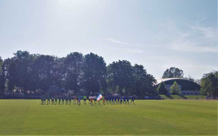 |  | | Prezentacja składów - jedni grają na zielono, drudzy na niebiesko, a biorąc jeszcze pod uwagę, że trzeba było patrzeć pod słońce, to cytując Andrzeja Pyrdoła... Ch*ja było widać | |