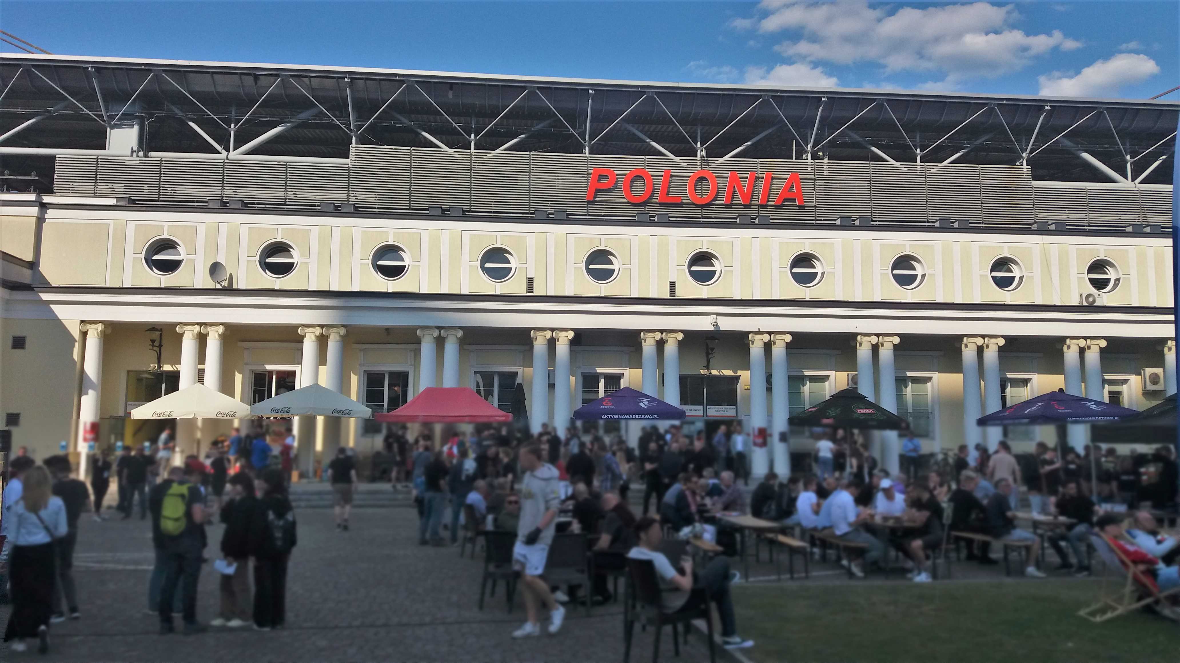 |  | | 53. minuta meczu - grupa kibiców Polonii triumfalnie wraca z oprawą na trybunę Kamienną | |