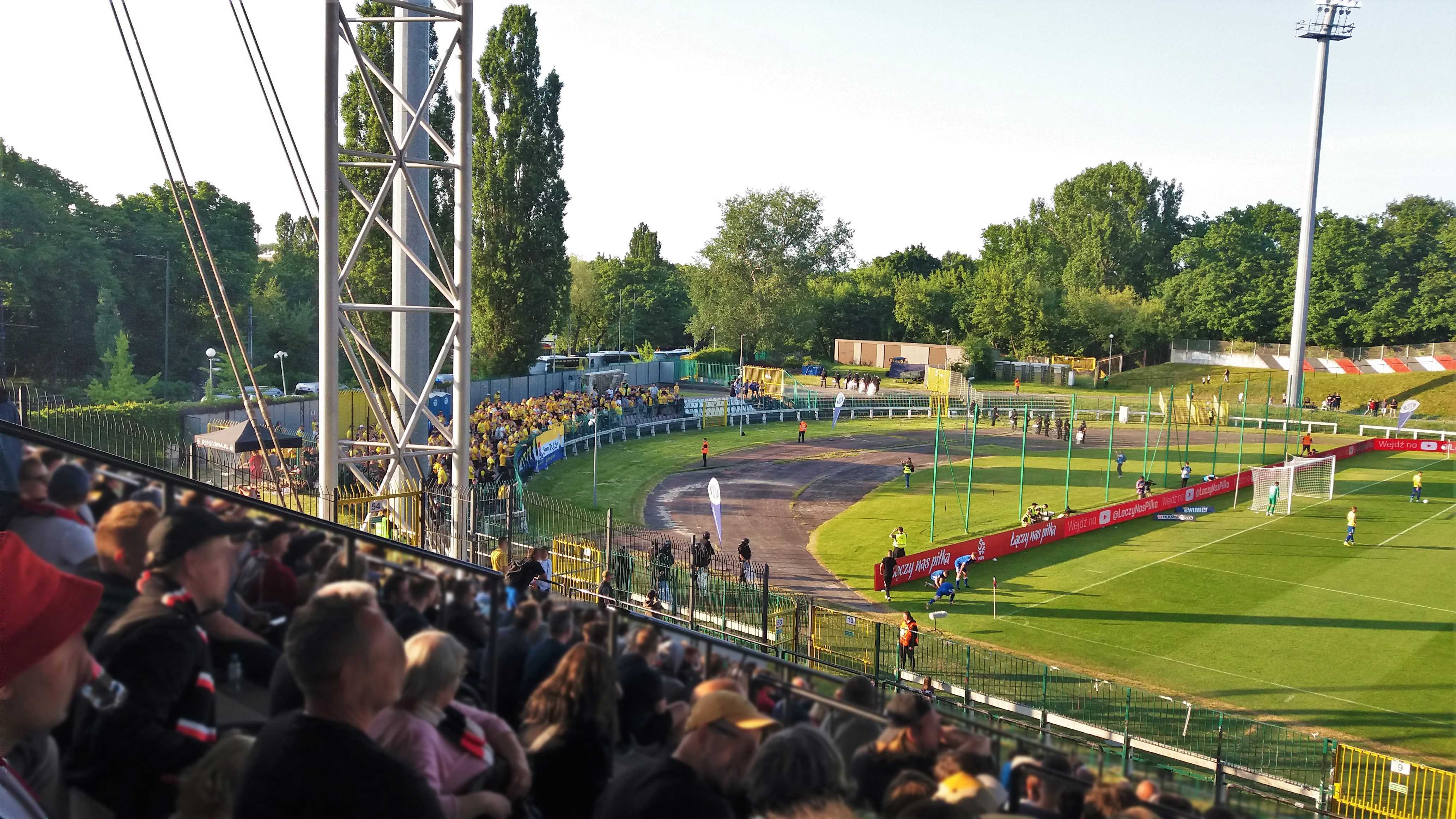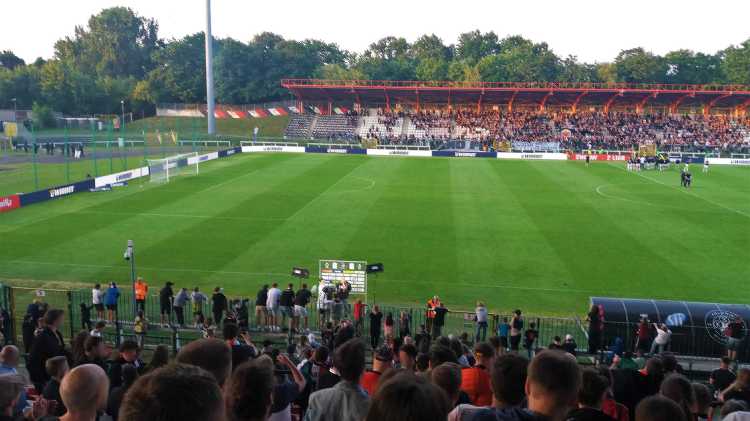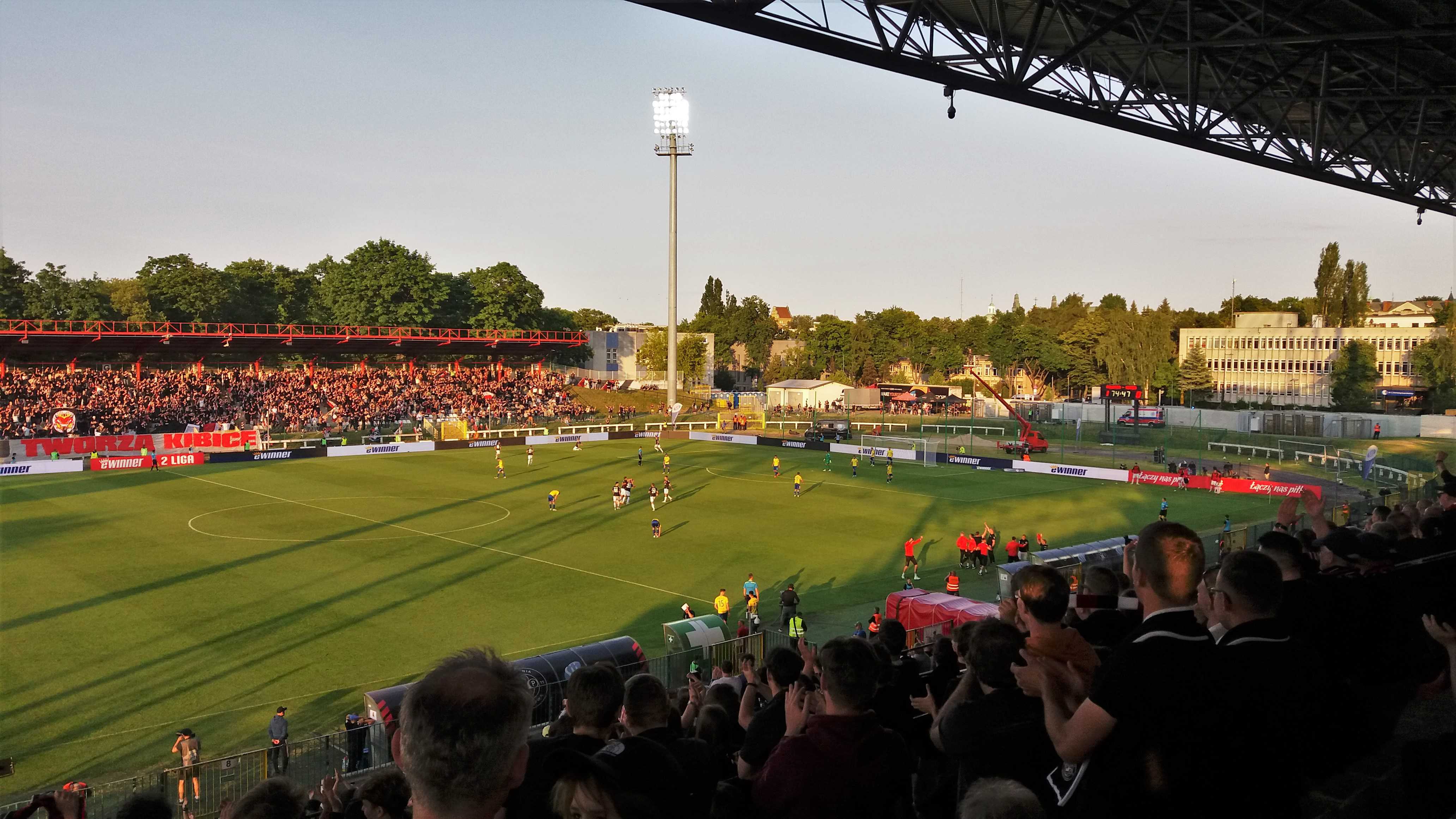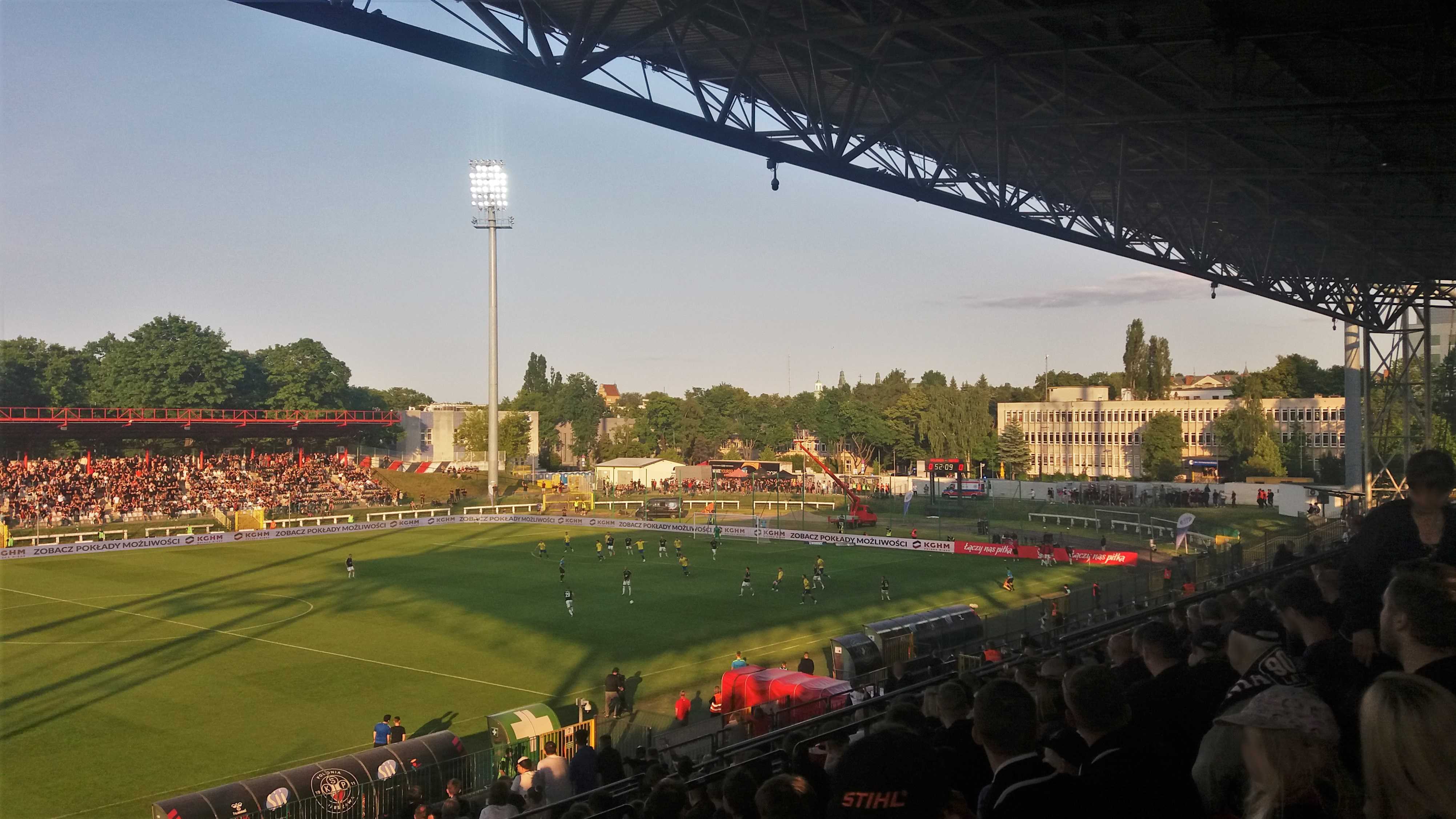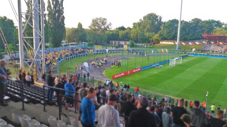 |  | | ok. 35. minuta - kibice gości meldują się w swoim sektorze i rozpoczynają doping | |