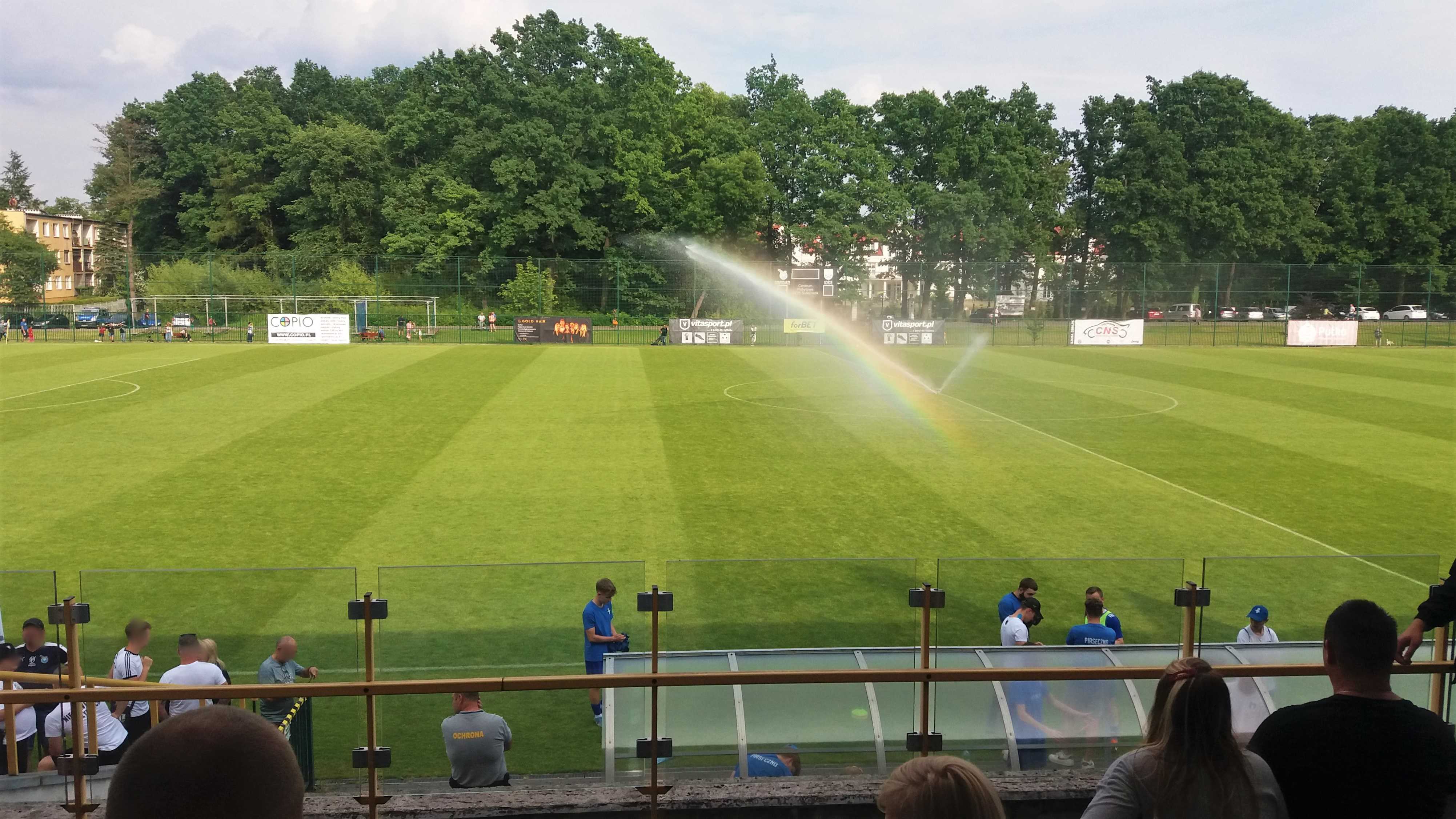 |  | | Zraszacze w akcji z okazji dzisiejszego Marszu Równości w Warszawie władze klubu postanowiły uformować na murawie tęczę | |