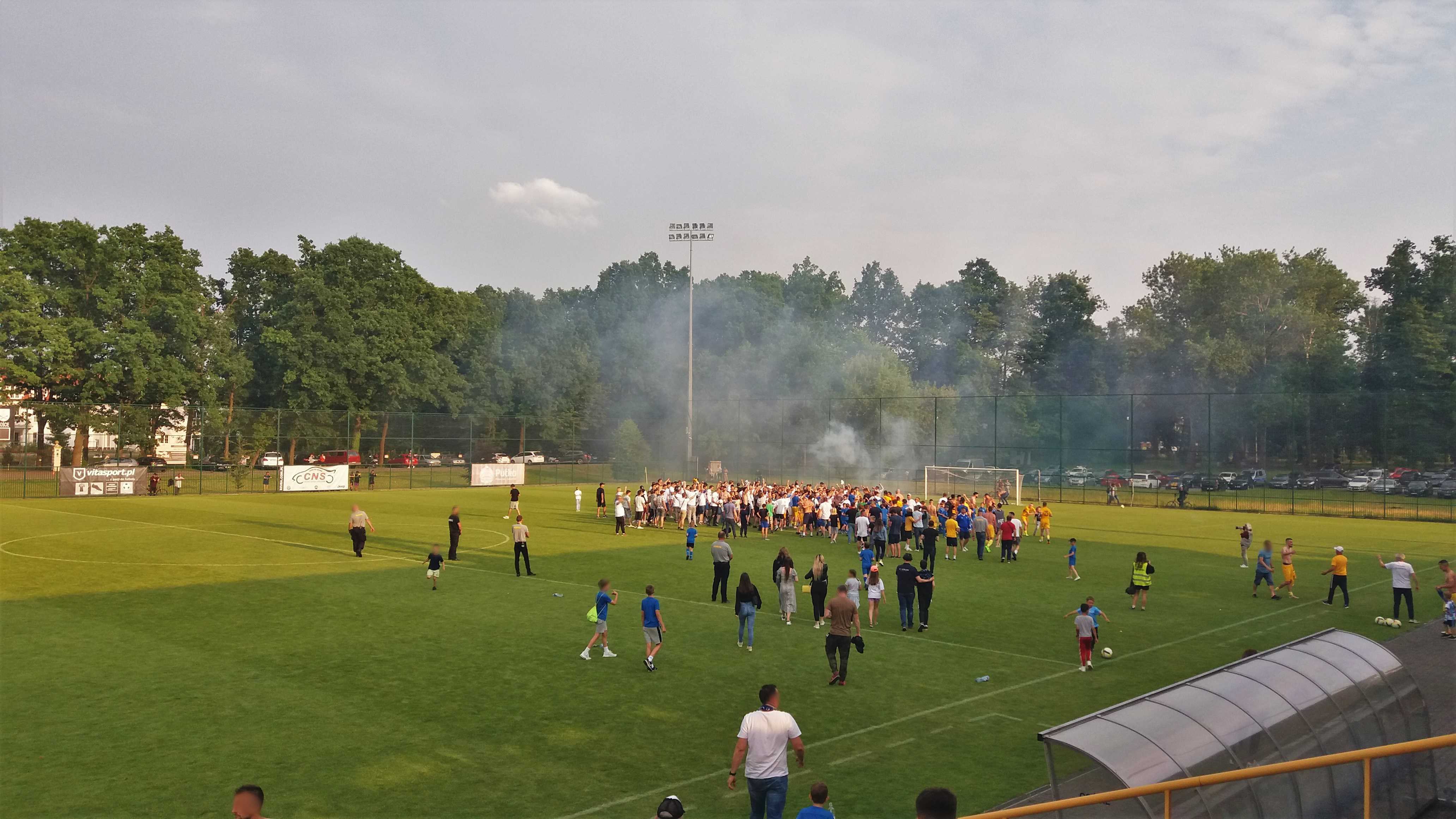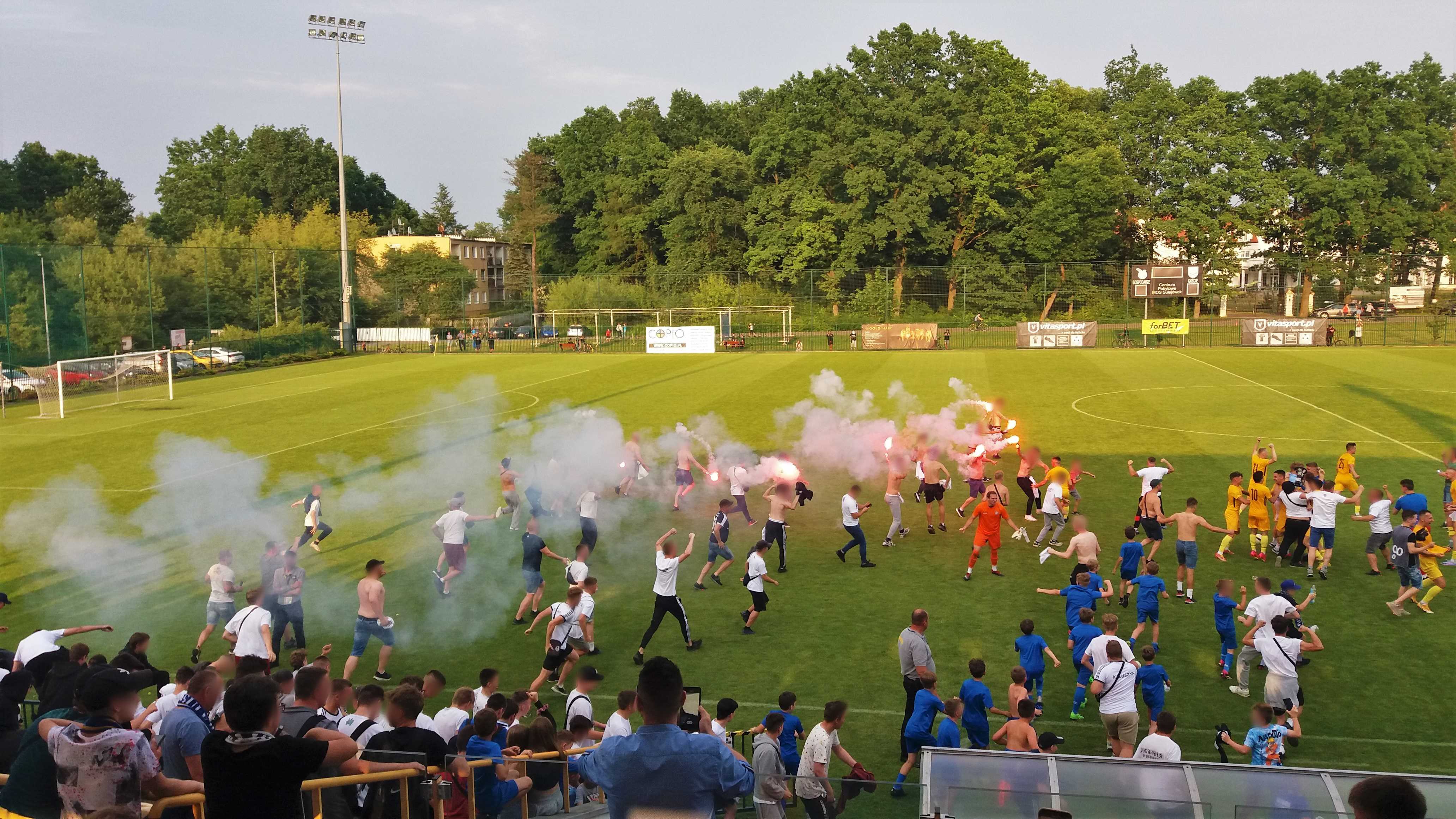 |  | | Koniec meczu w Mińsku Mazowieckim, kibice Victorii robią pitch invasion | |