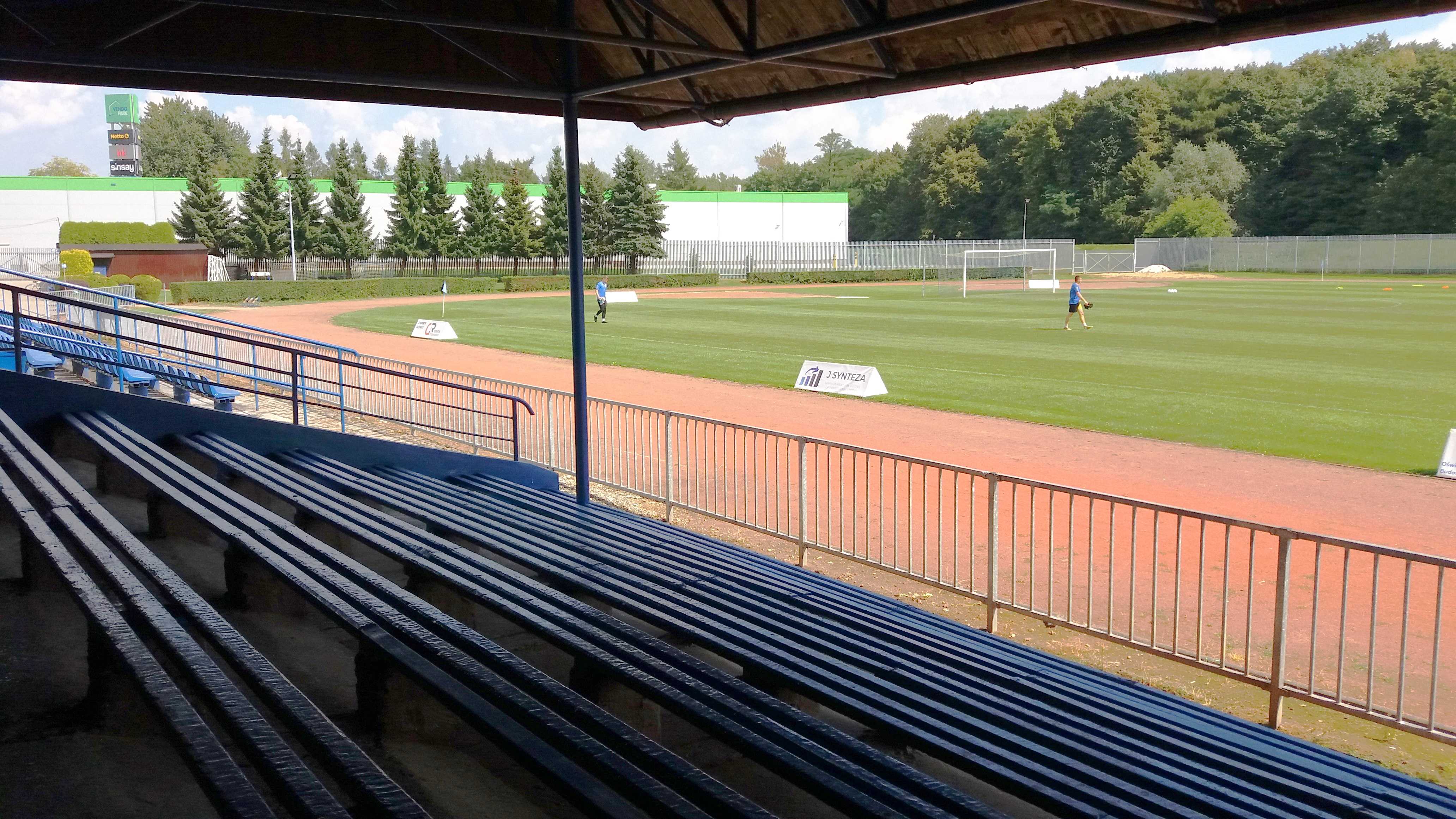 |  | | Na tym zdjęciu chcialem ująć zarówno ławeczki na centralnym sektorze jak i niepotrzebnie szeroką bieżnię | |