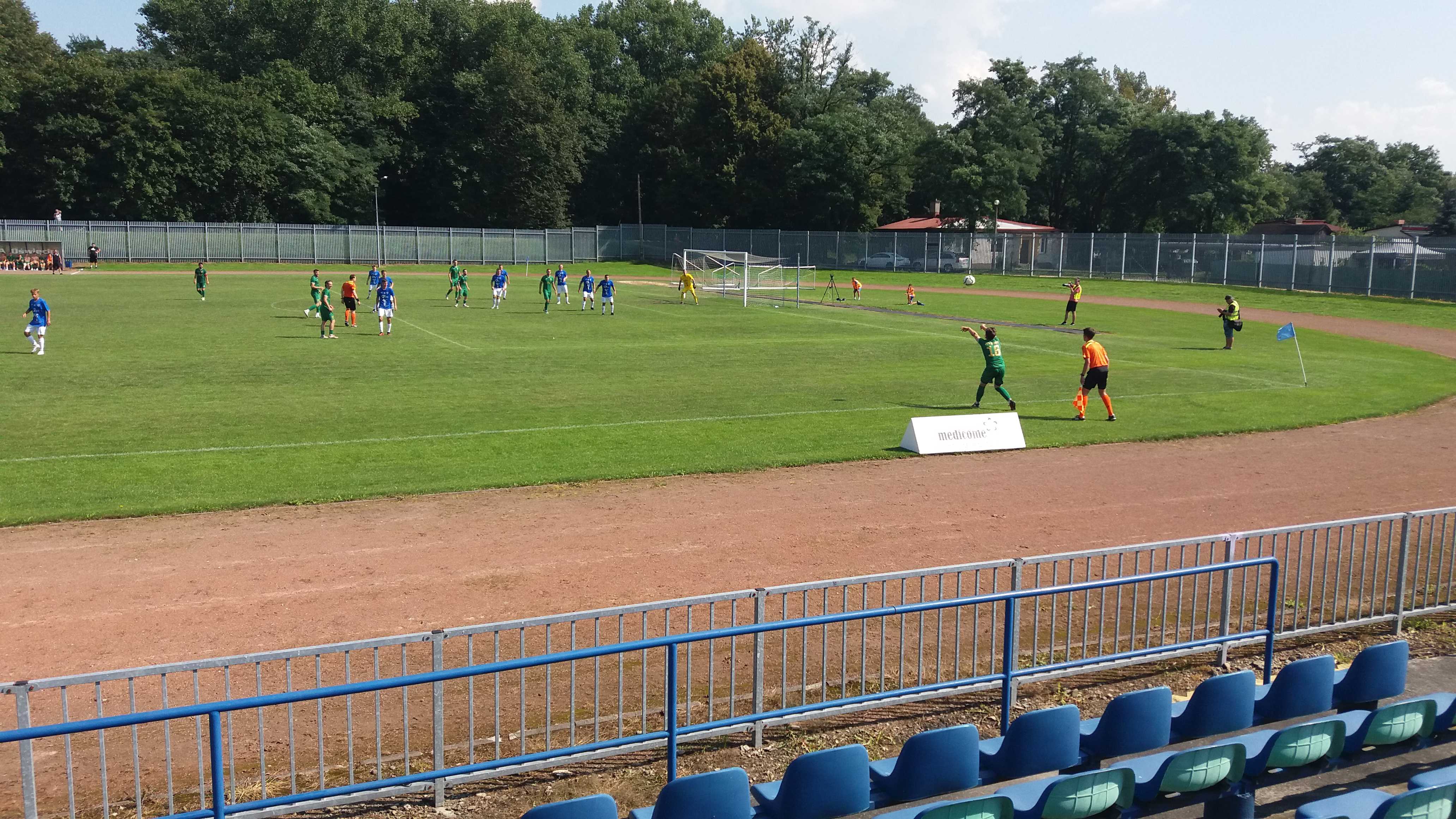 |  | | Rzut z autu dla piłkarzy Lubania - przy okazji widać, jak daleko jest linia boczna od trybuny | |