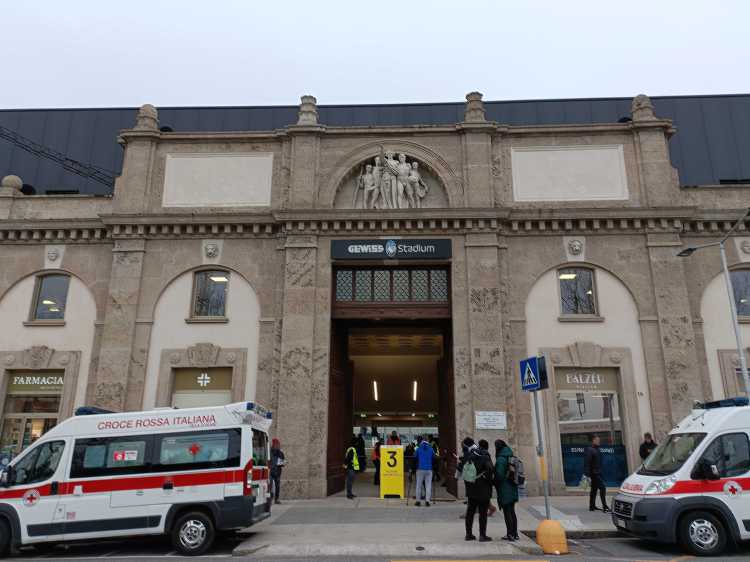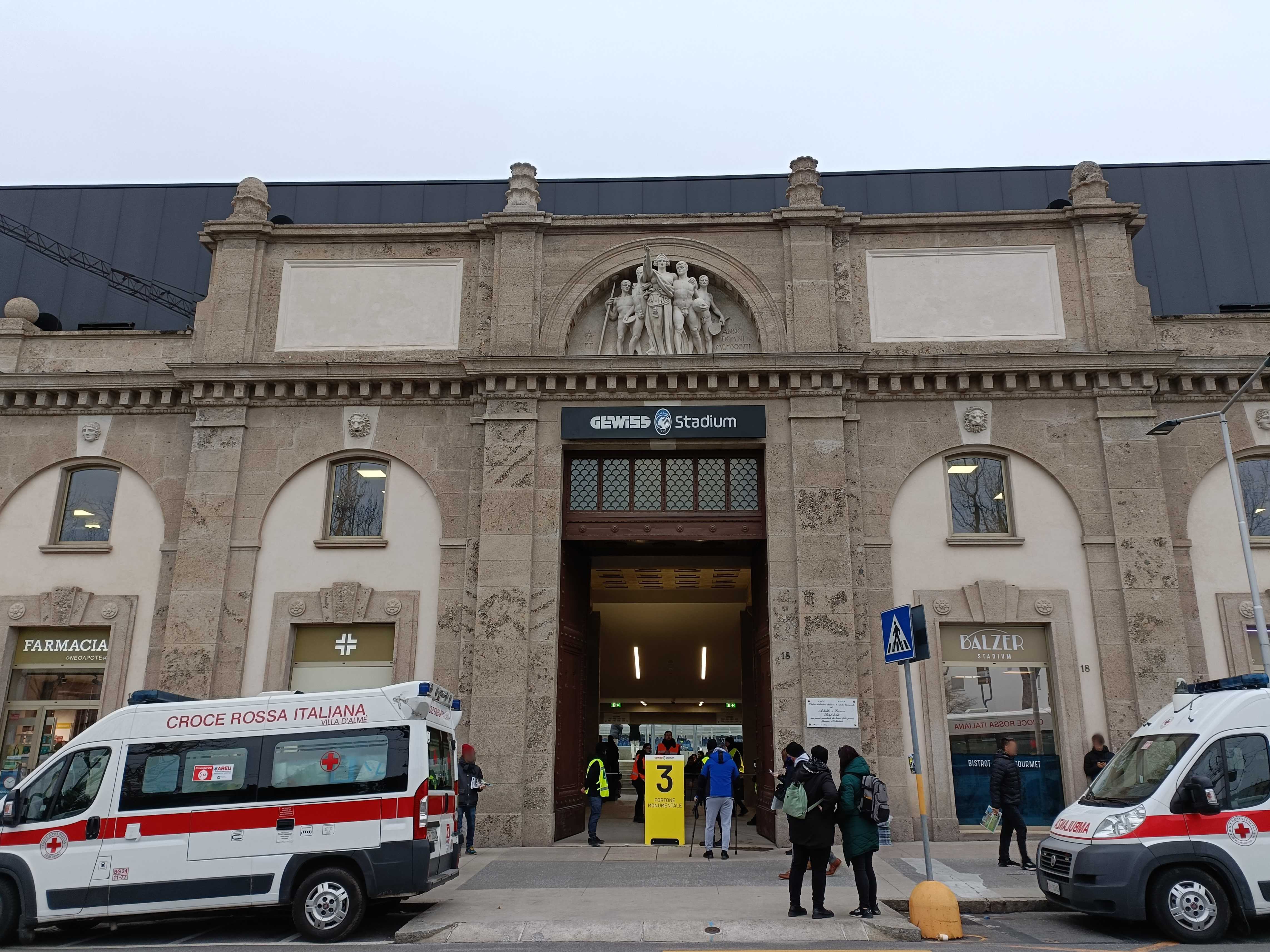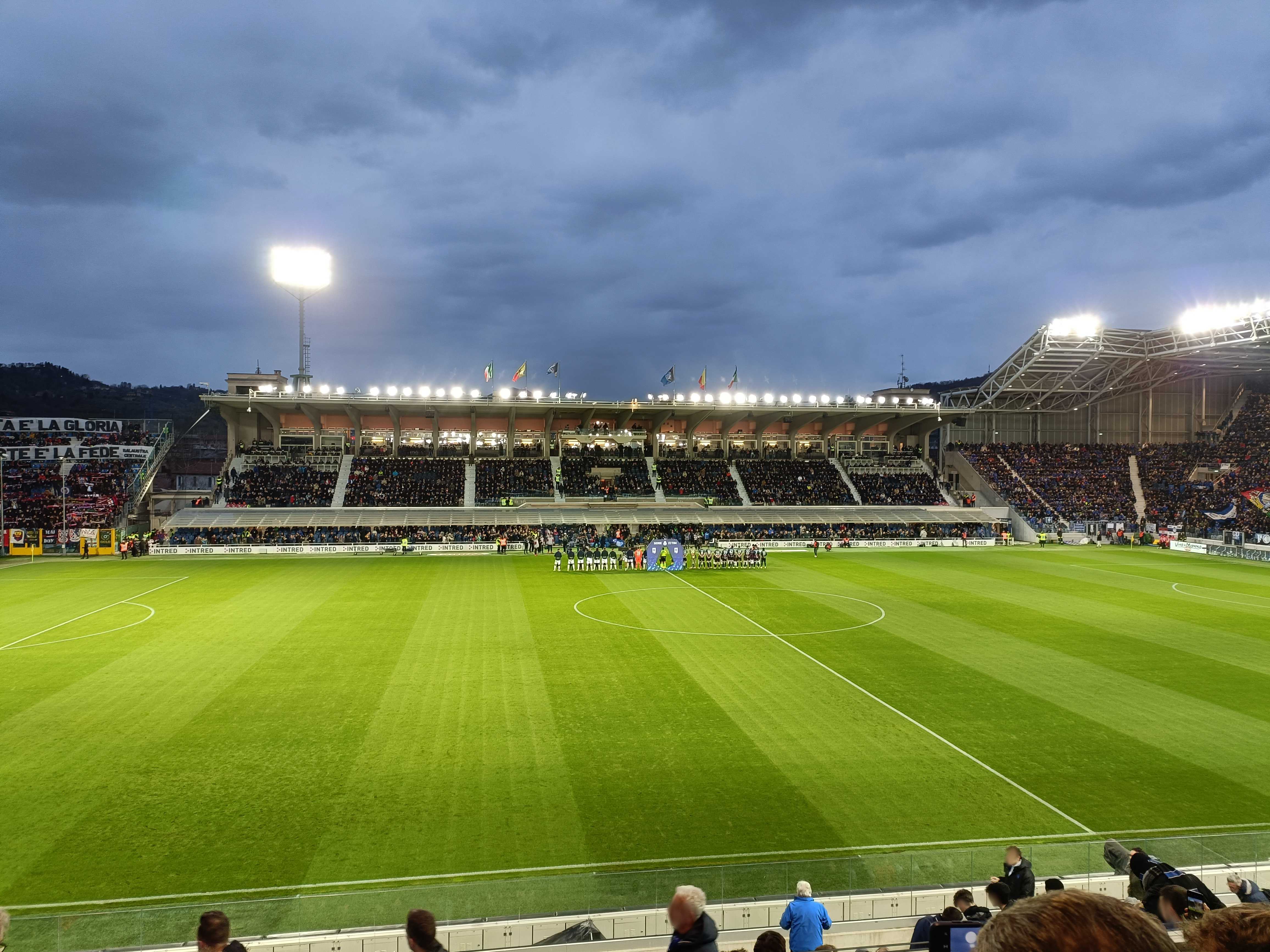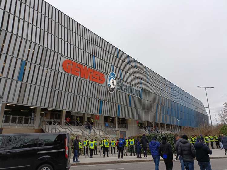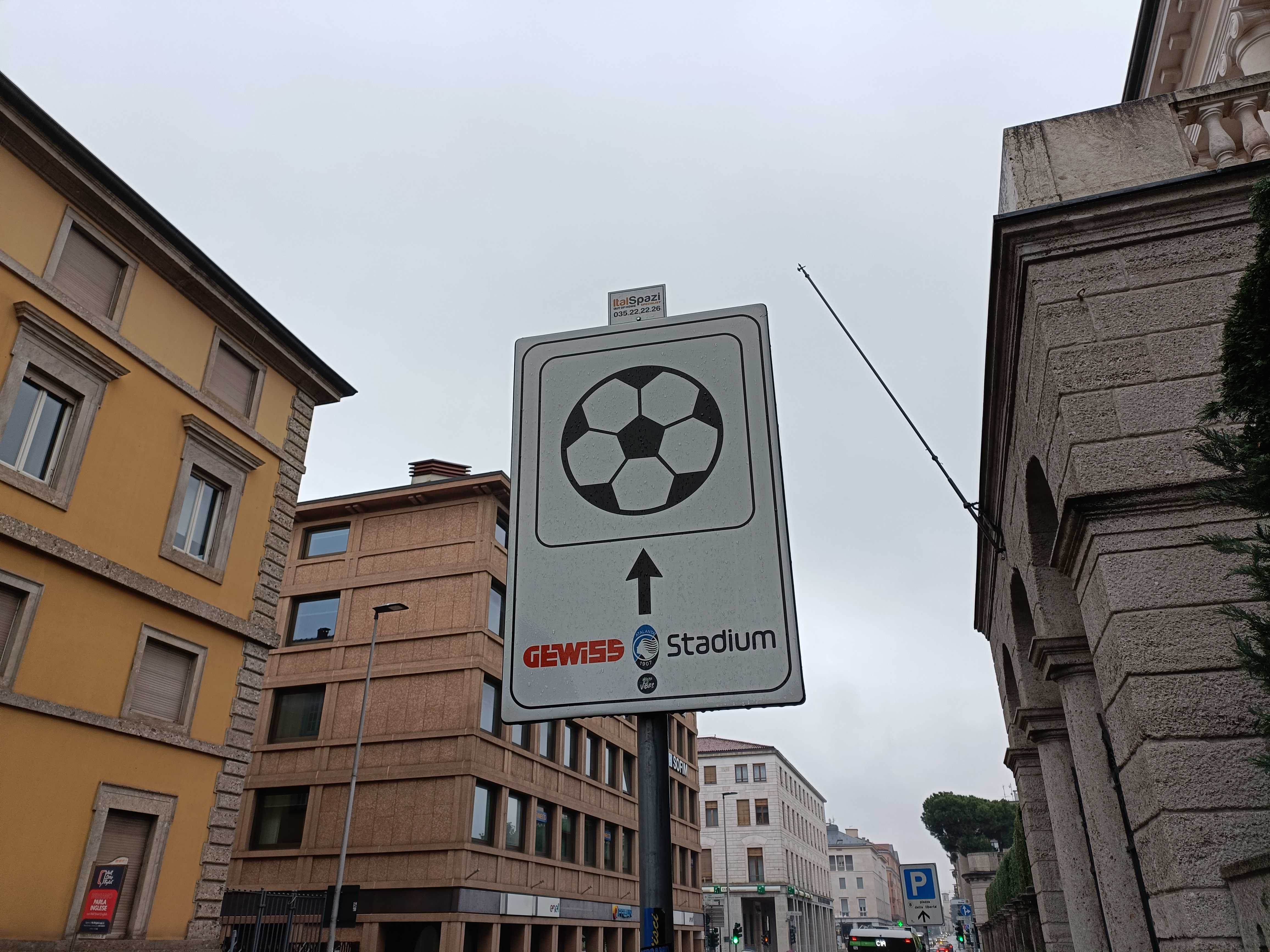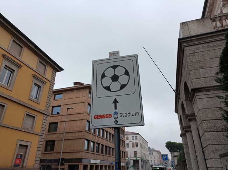 |  | | Tablica wskazująca kierunek na Gewiss Stadium | |
