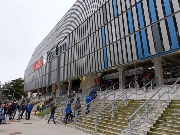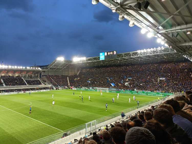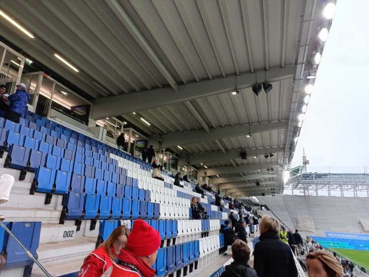 |  | | Widok nie najgorszy, chodciaż trybuna nie jest tak blisko od boiska jak mogłaby być (to chyba pozostałość po bieżni) | |