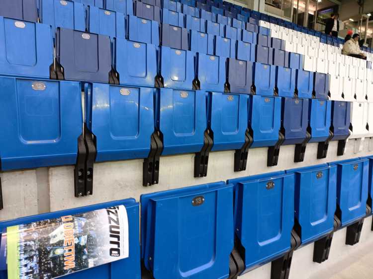 |  | | Krzesełka na trybunie Rinascimento; trochę tu ciasno, a przy okazji widać powieszony na krzesełku program meczowy | |