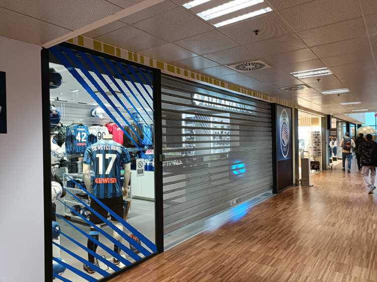 |  | | Sklep Atalanty na lotnisku w Bergamo (przed godziną 8:00 jeszcze zamknięty) | |