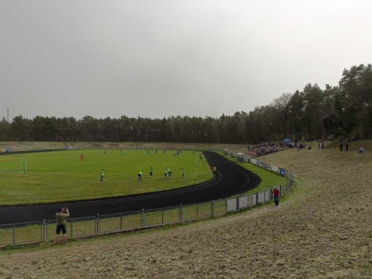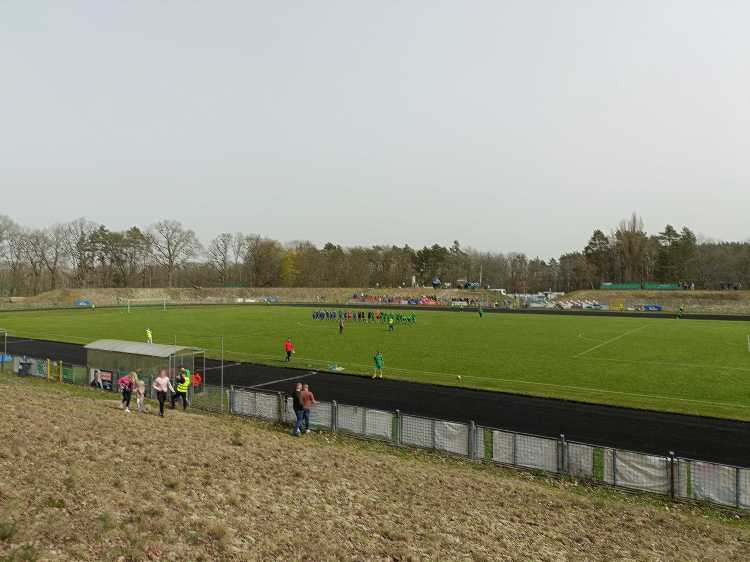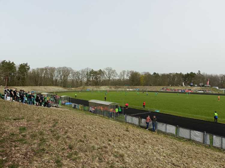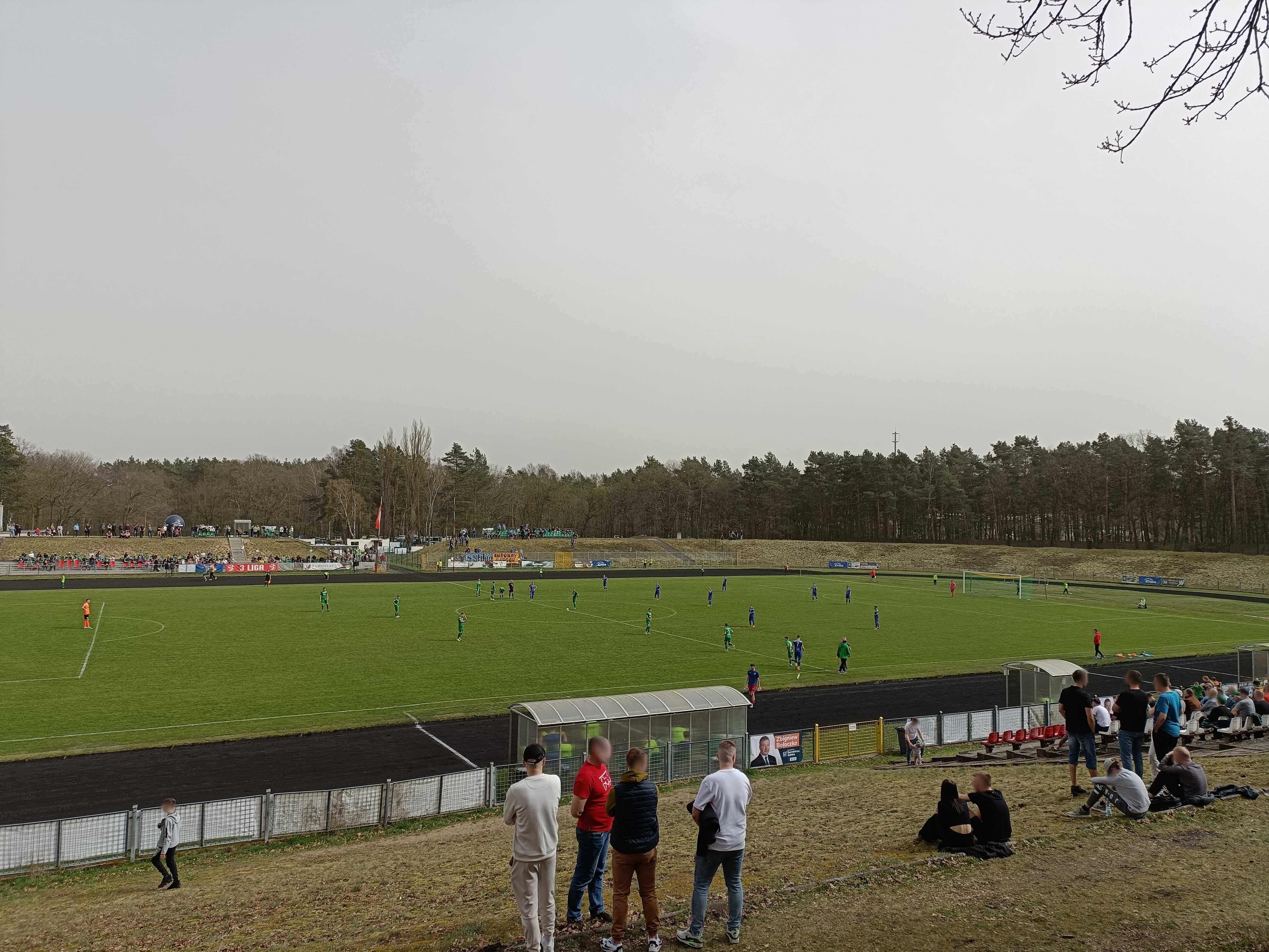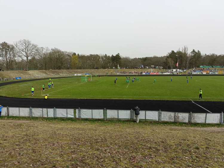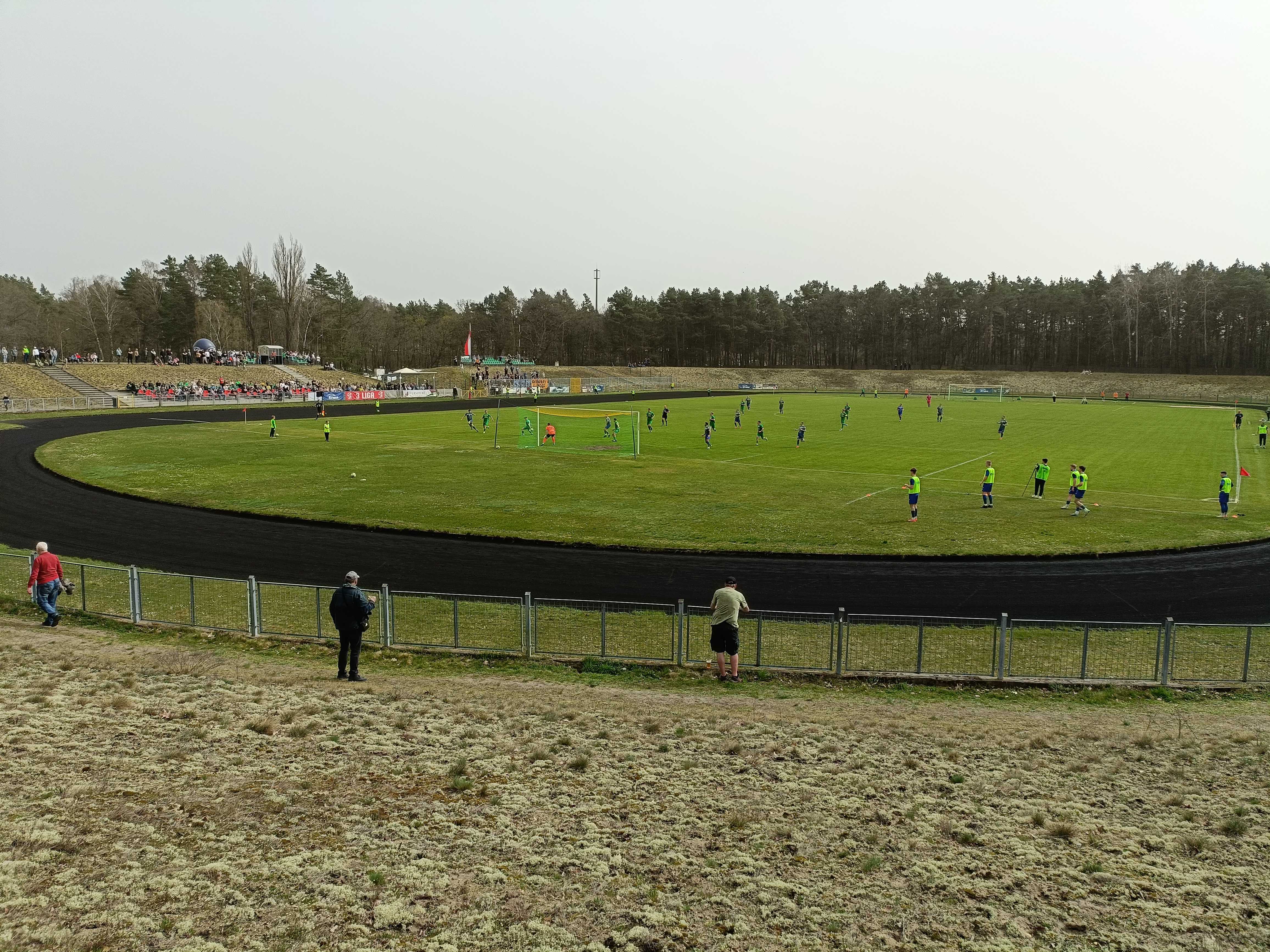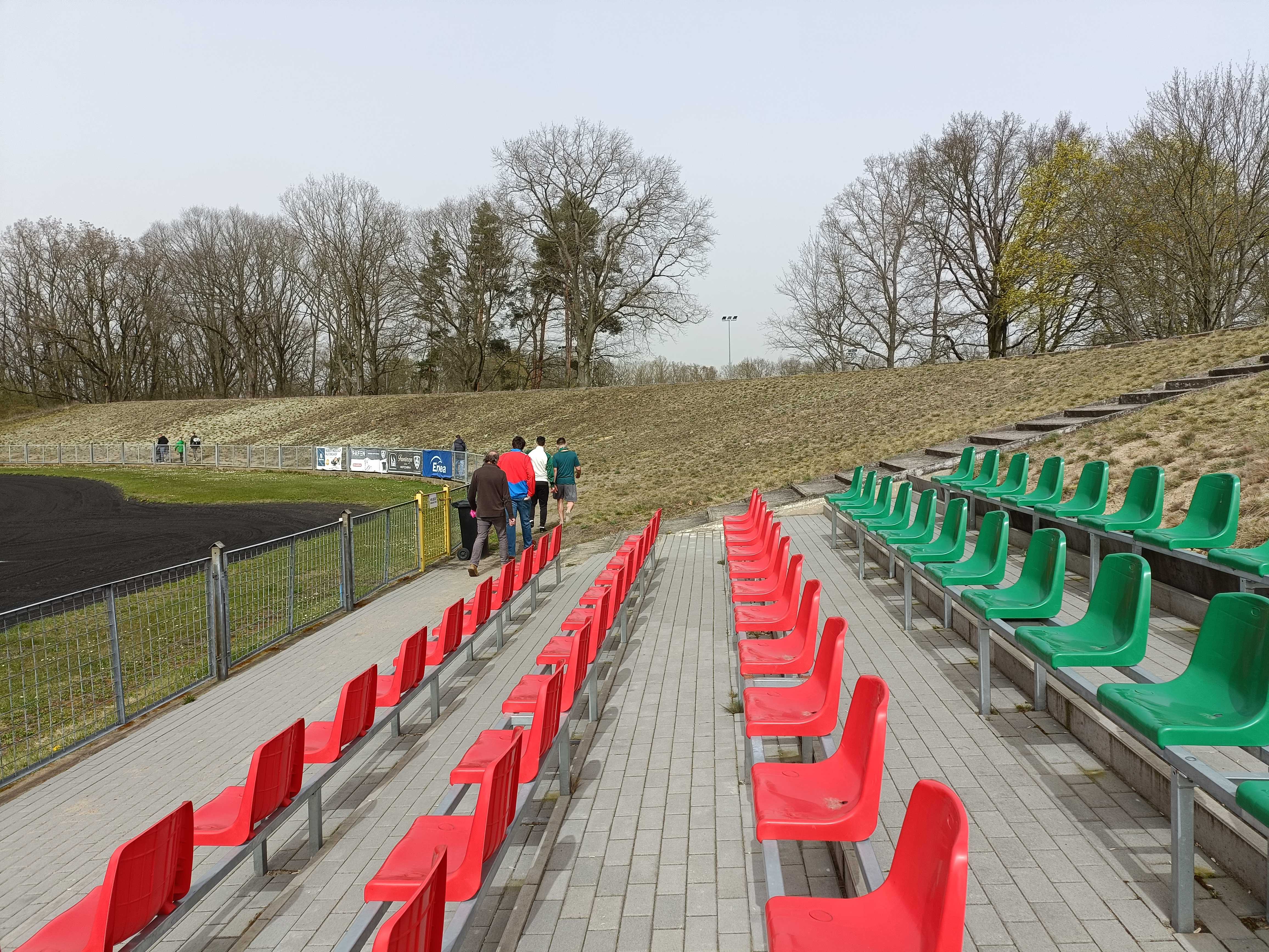 |  | | Widok z górnego wału po wschodniej stronie stadionu - jest cholernie daleko | |