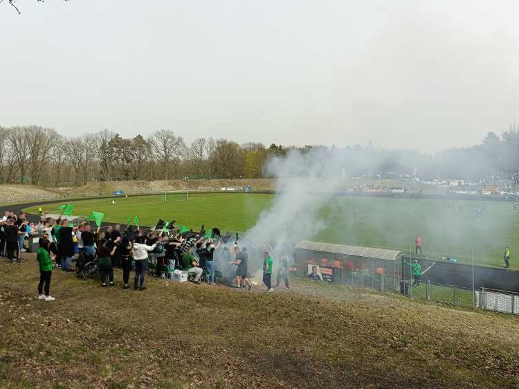 |  | | 26. minuta - goście świętują już gola na 0:2 (Mateusz Kaczor) | |