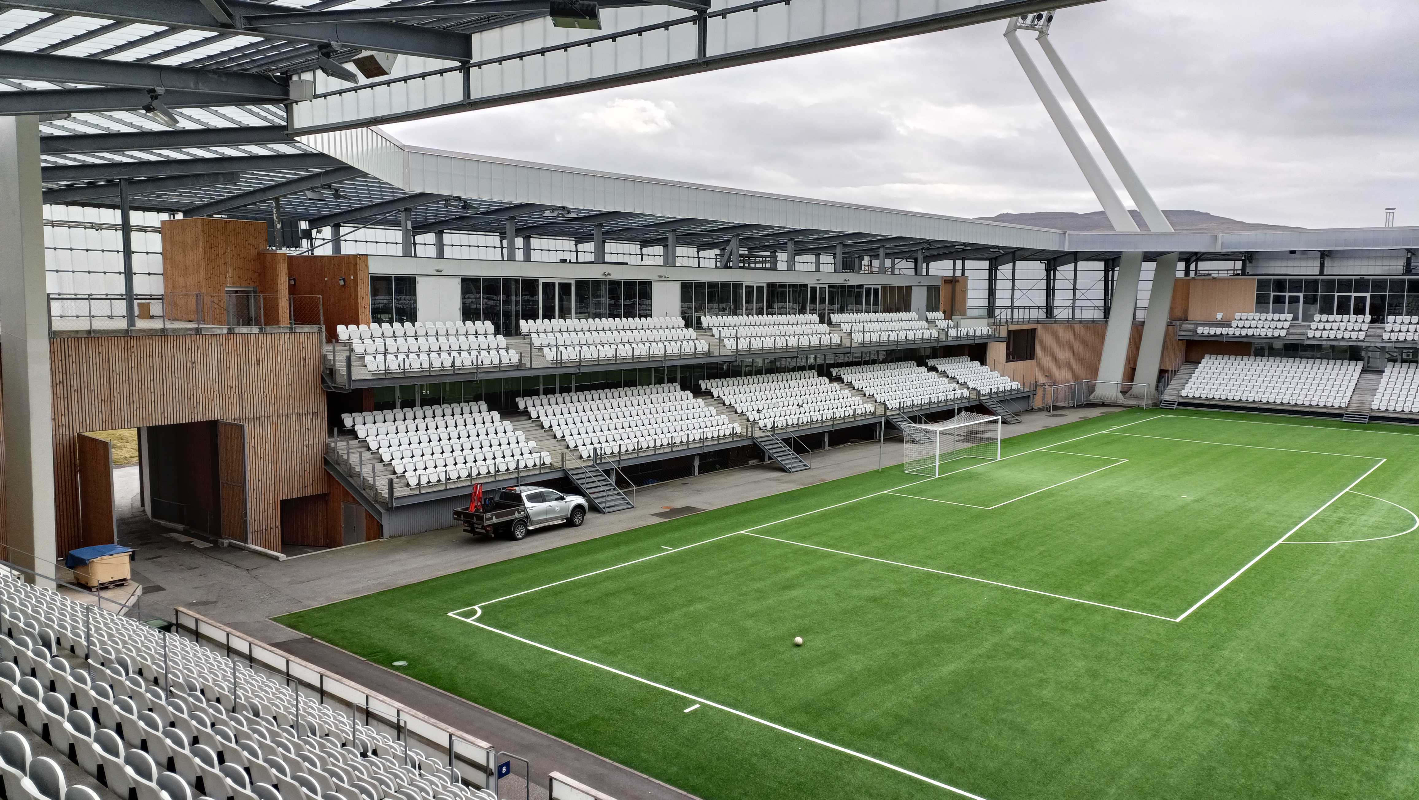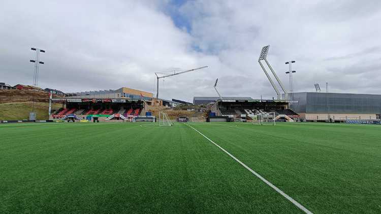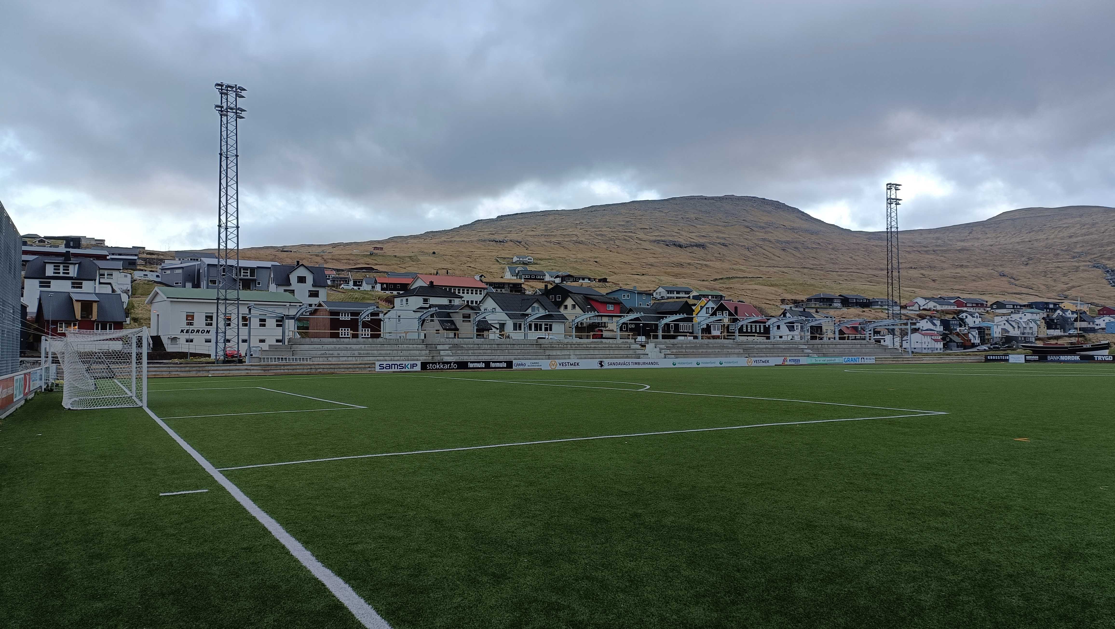 |  | | Stadion ekstraklasowego Vestur 07 Sorvagur (tu widoczna trybuna, która jest w budowie) | |