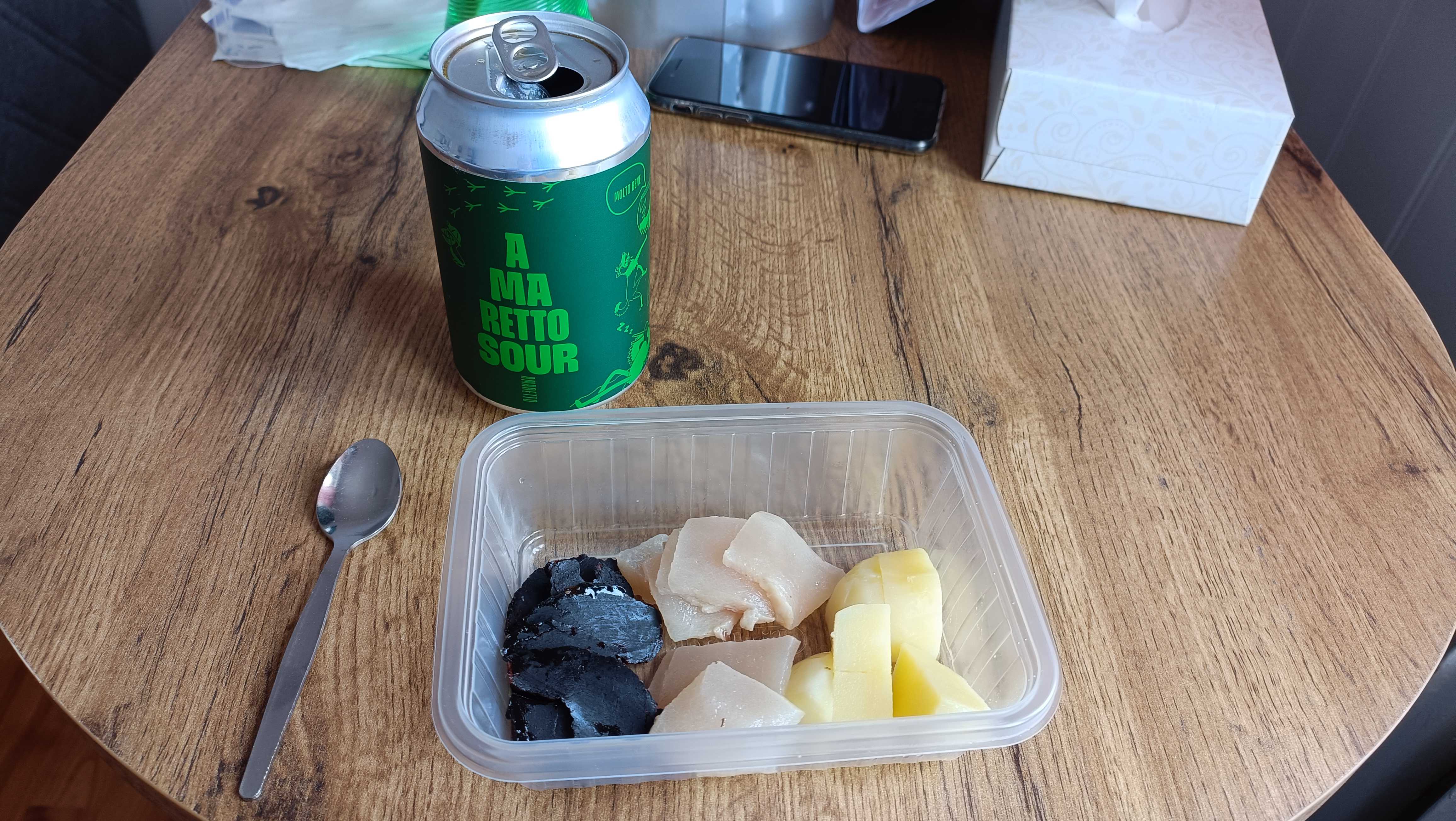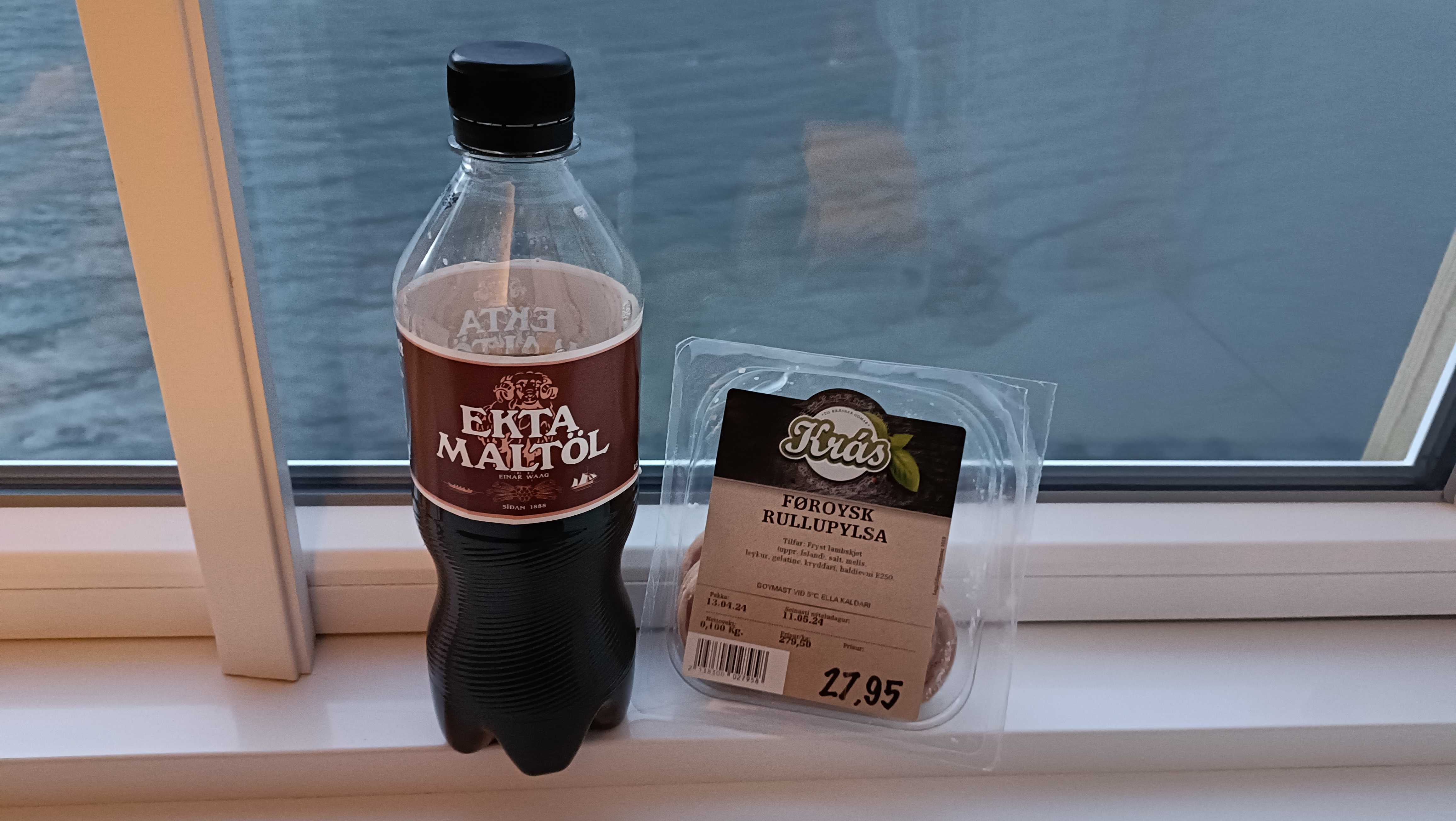 |  | | Posiłek z farerskich przekąsek, jakie udało mi się znaleźć w lokalnym sklepie | |
