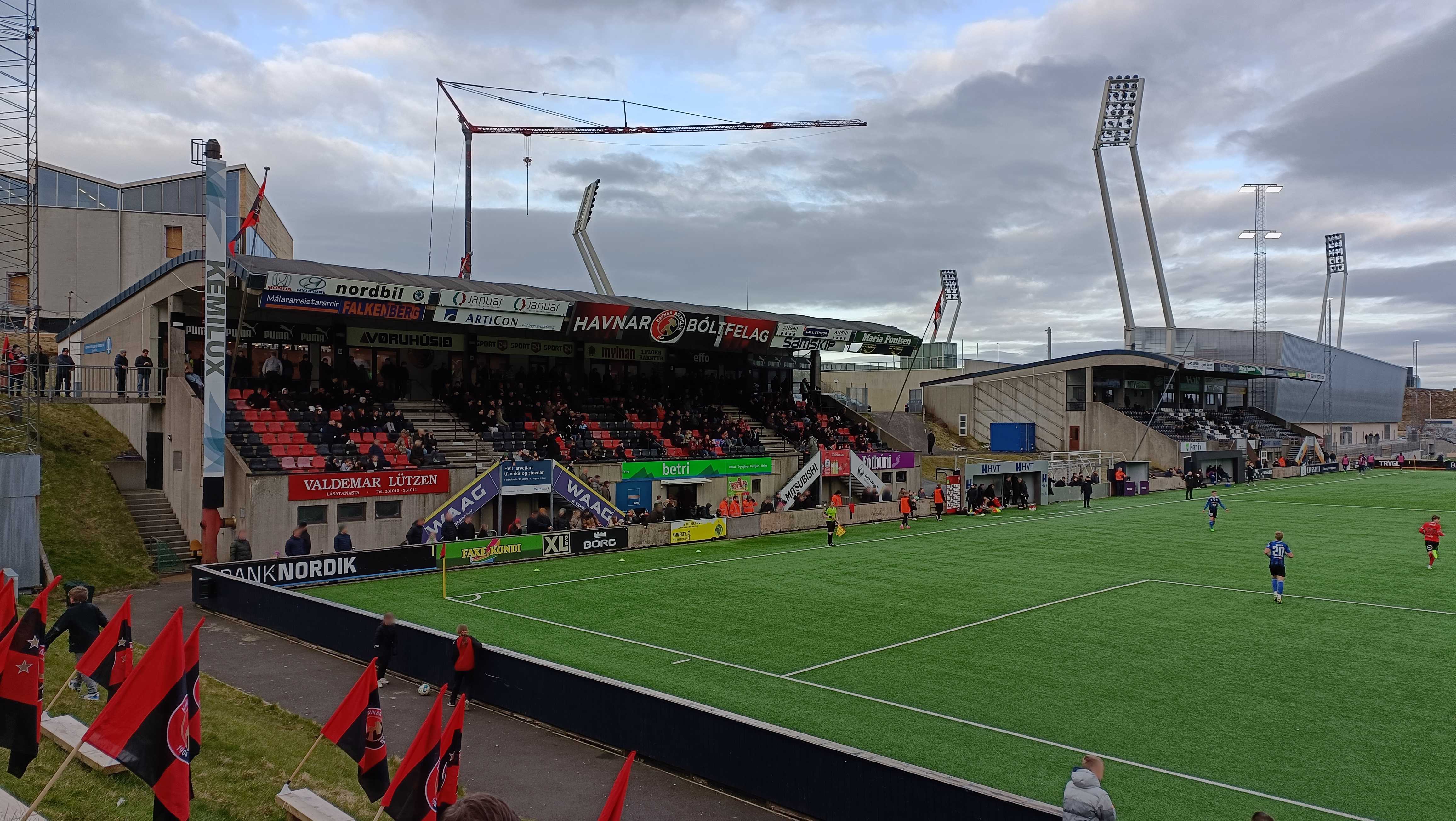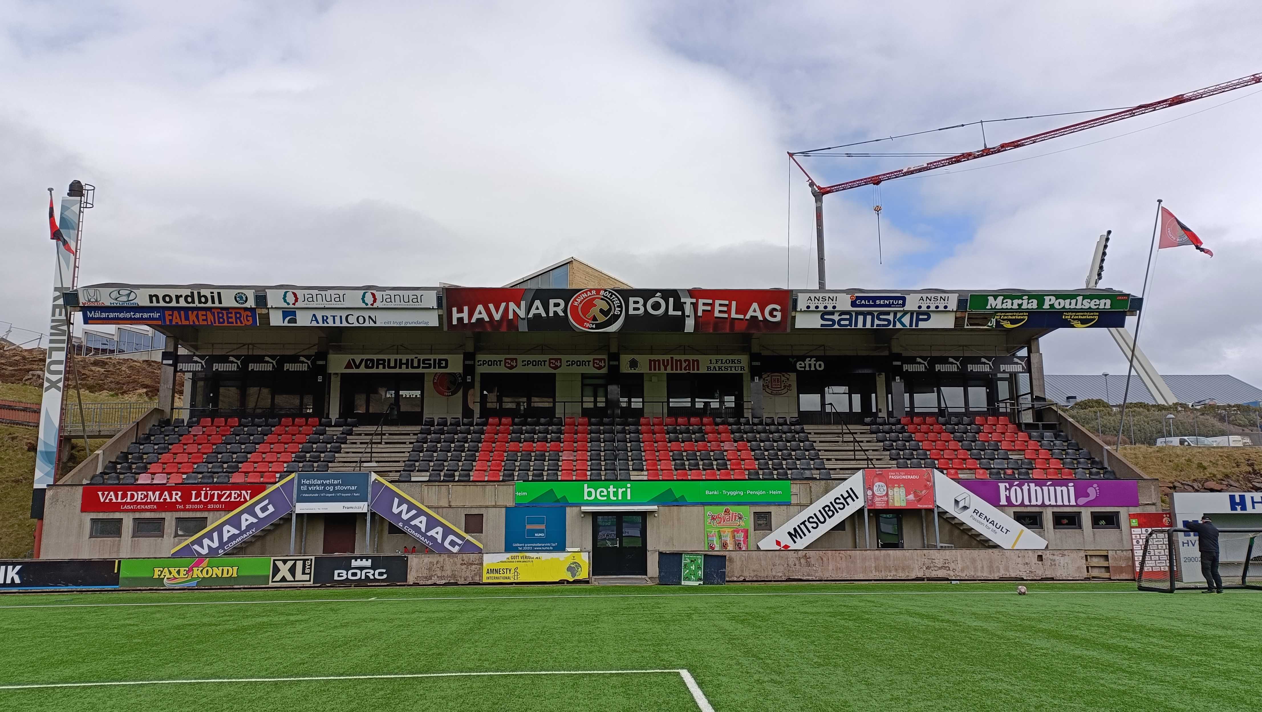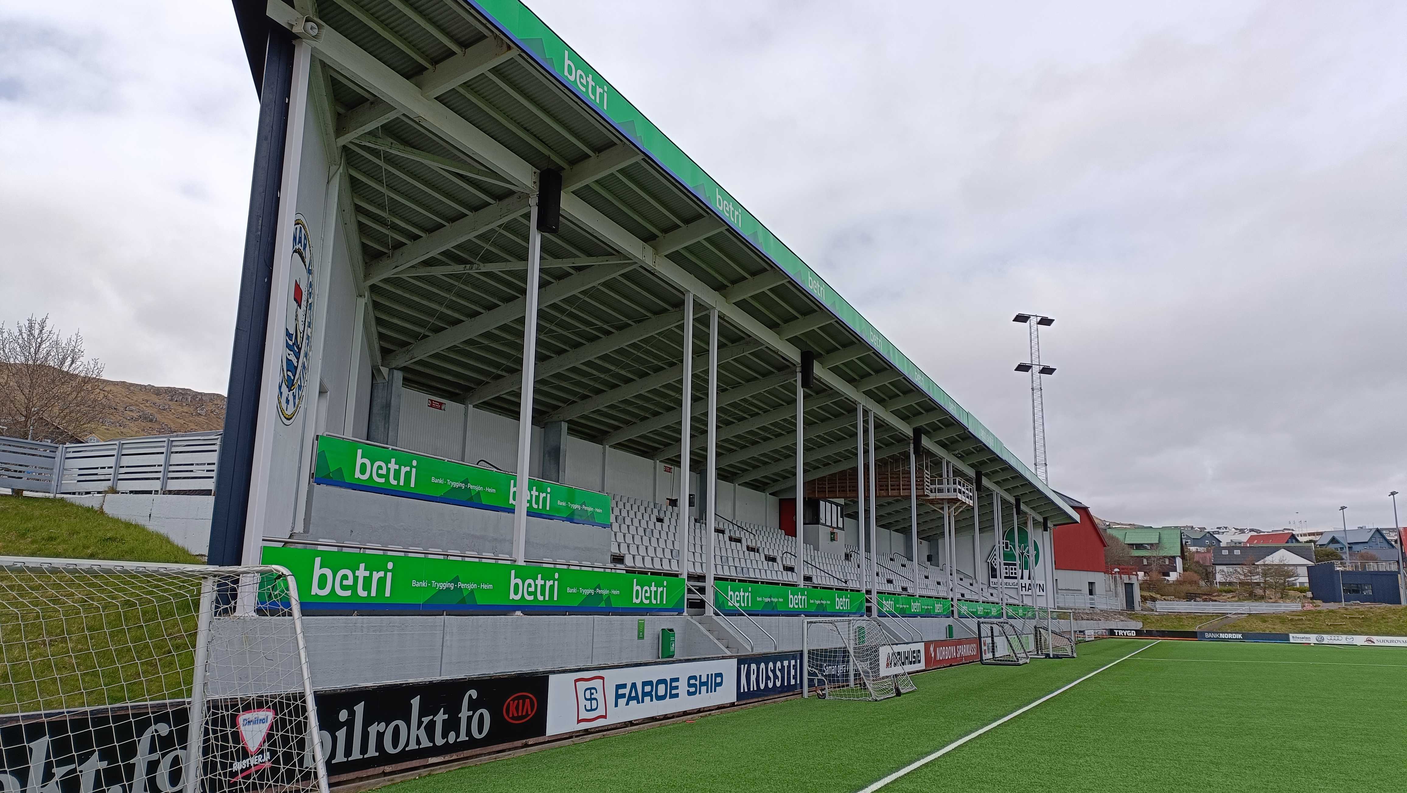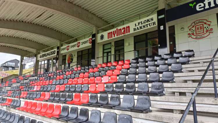 |  | | Po wschodniej stronie stadionu znajdują się dwie trybunki, jedna należy do HB, druga do B36 | |