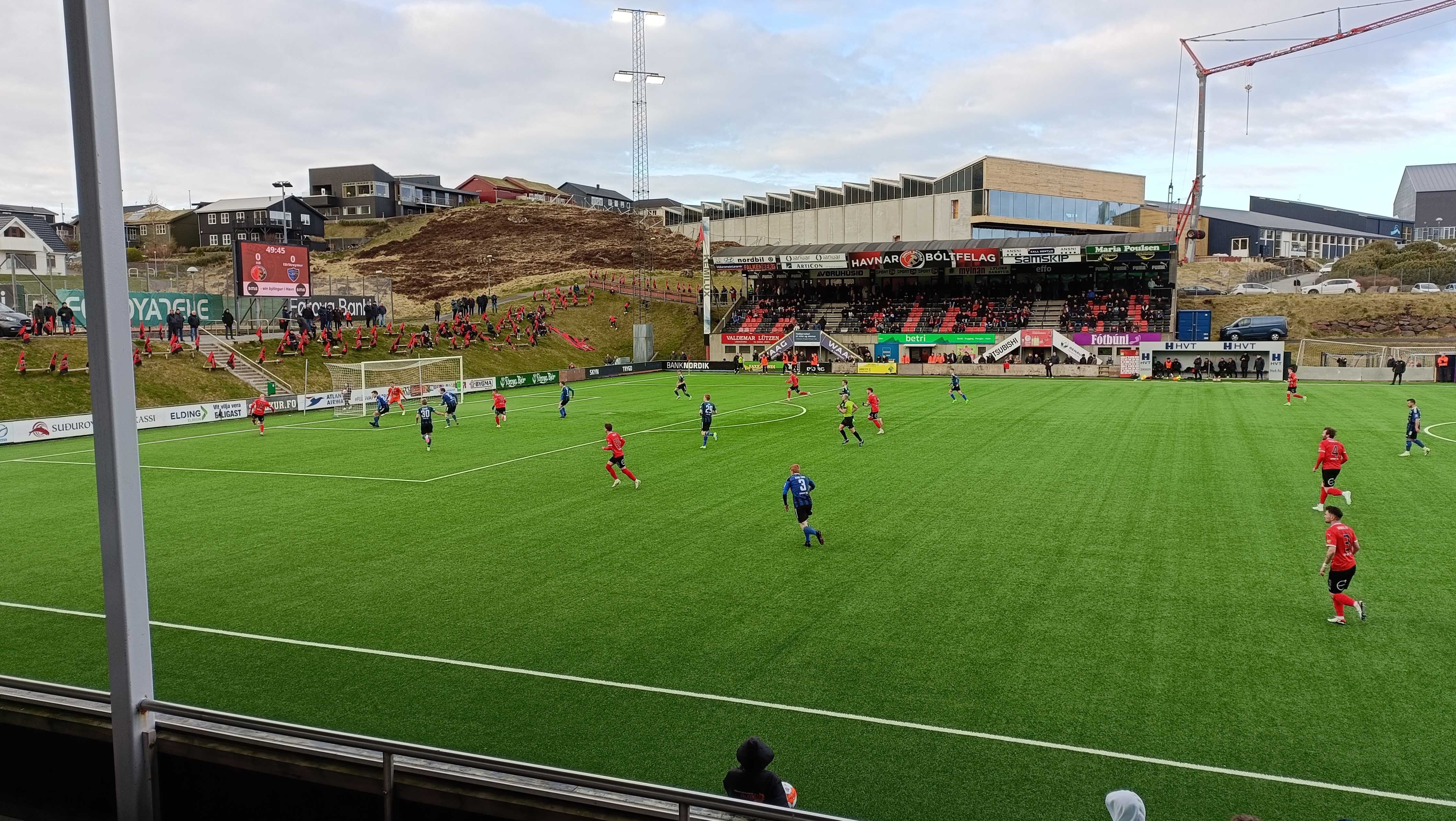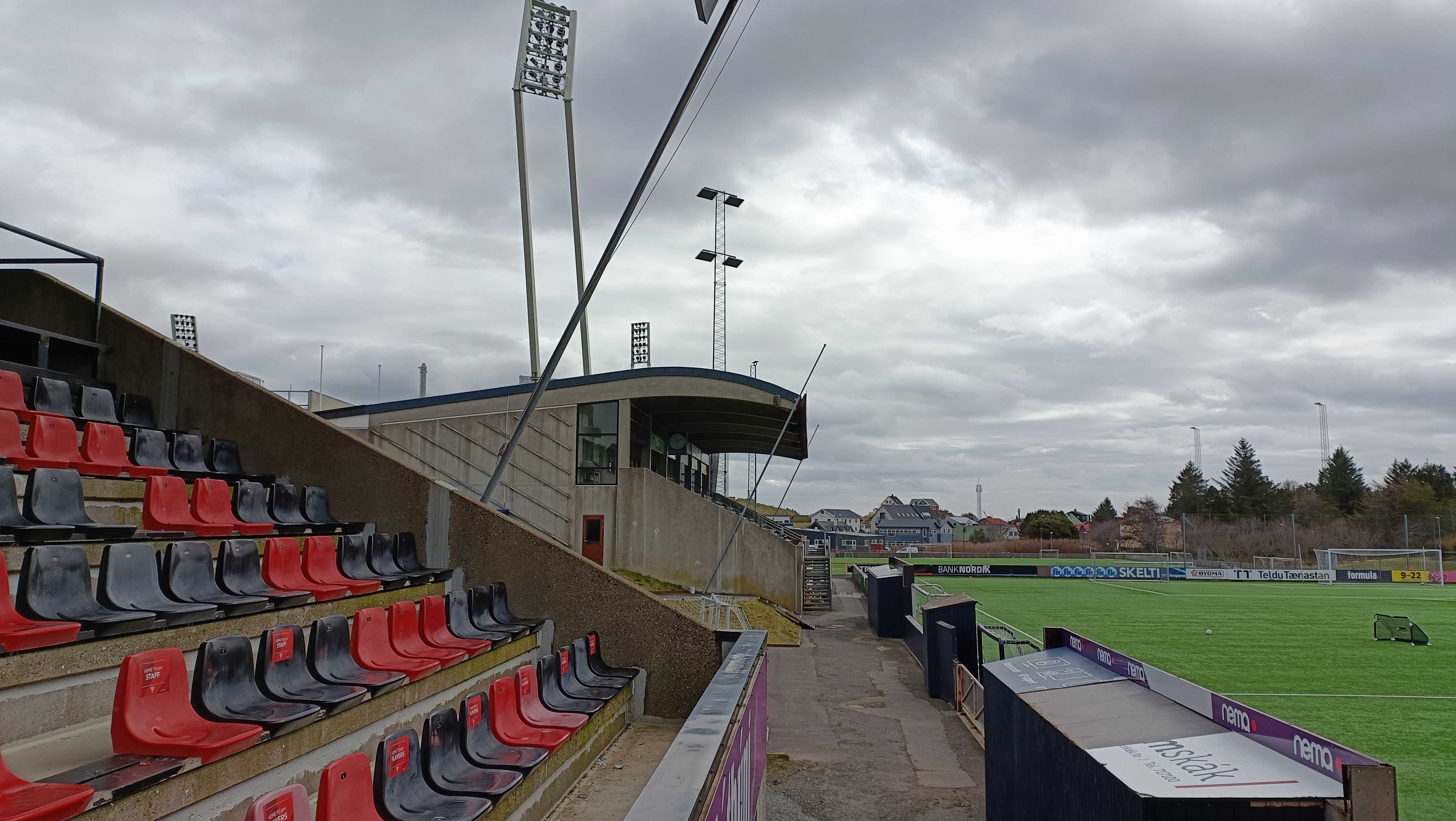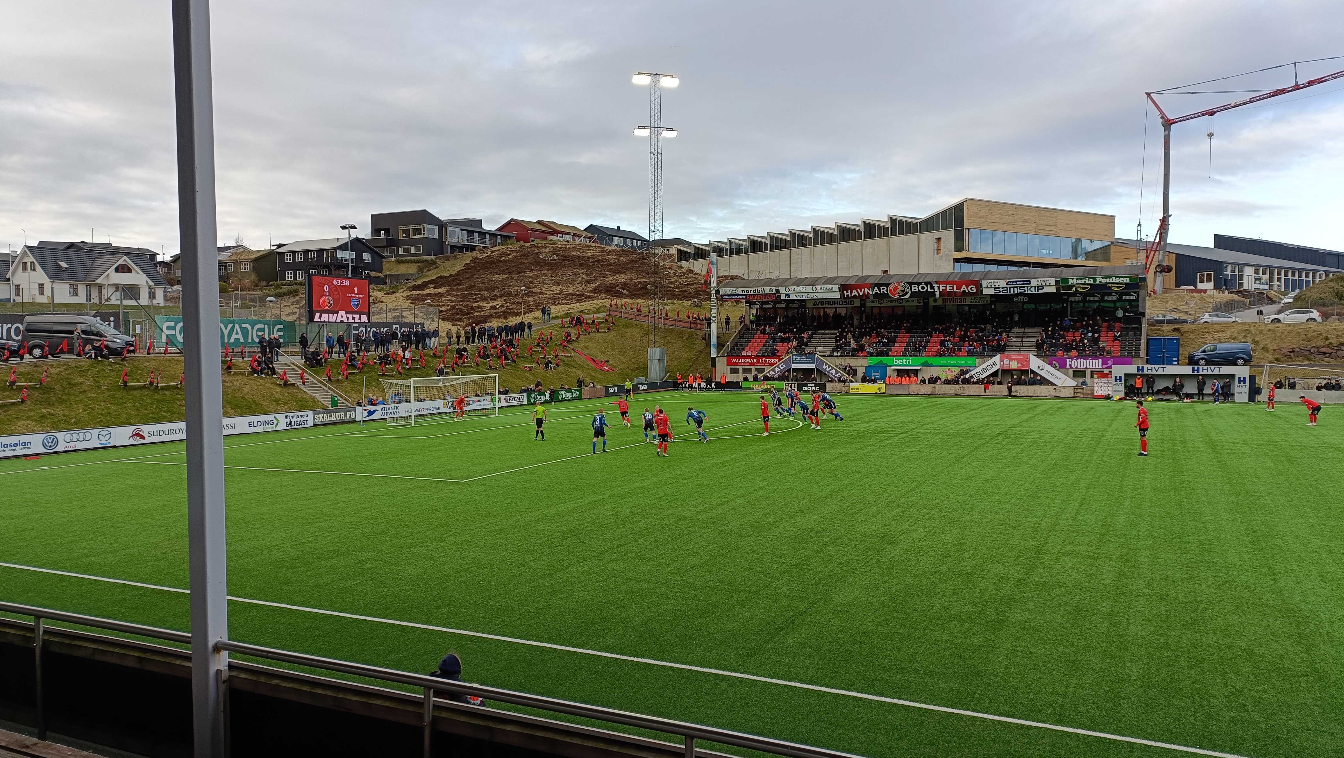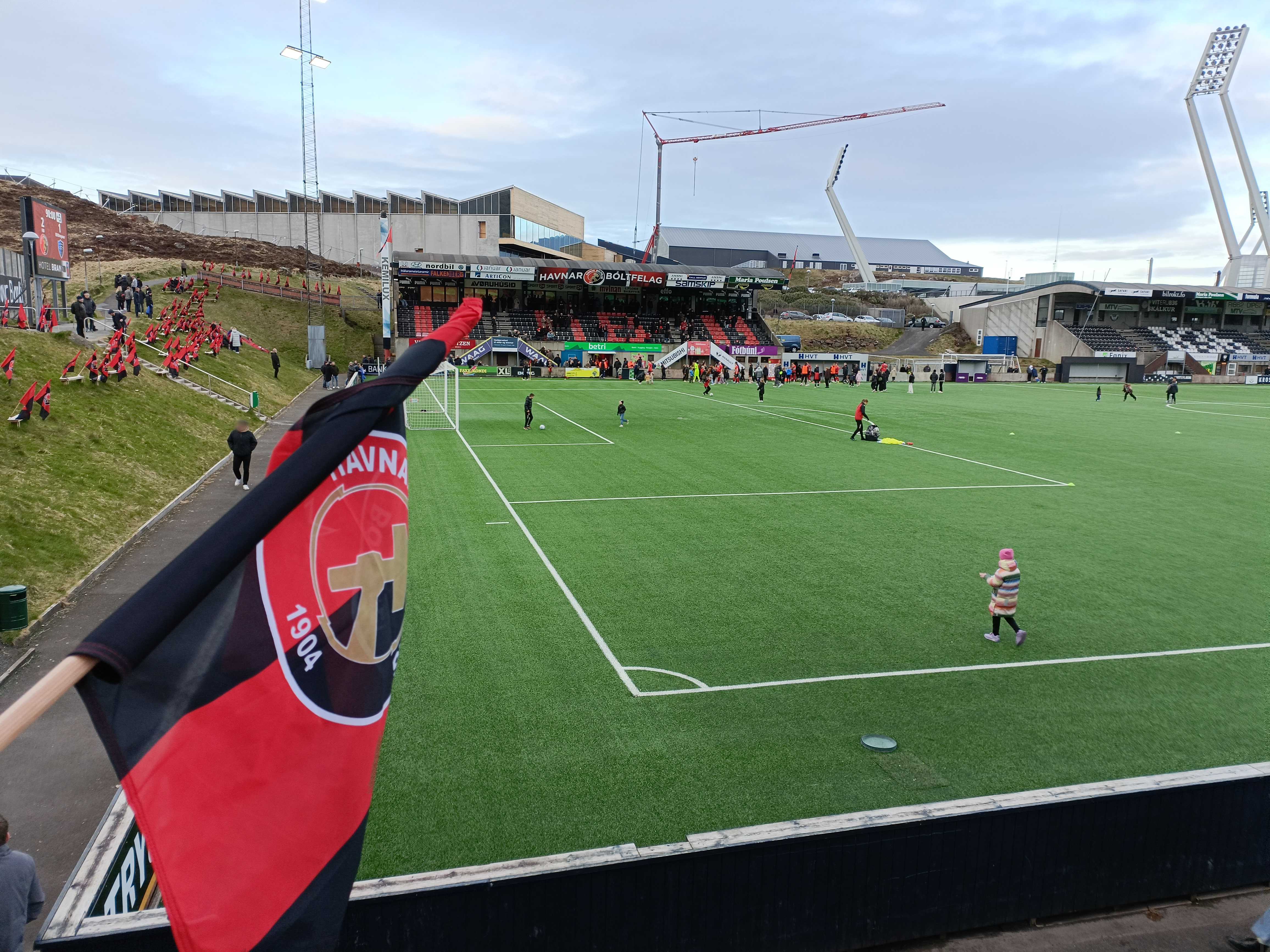 |  | | Po wschodniej stronie stadionu znajdują się dwie trybunki, jedna należy do HB, druga do B36 | |