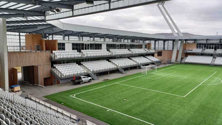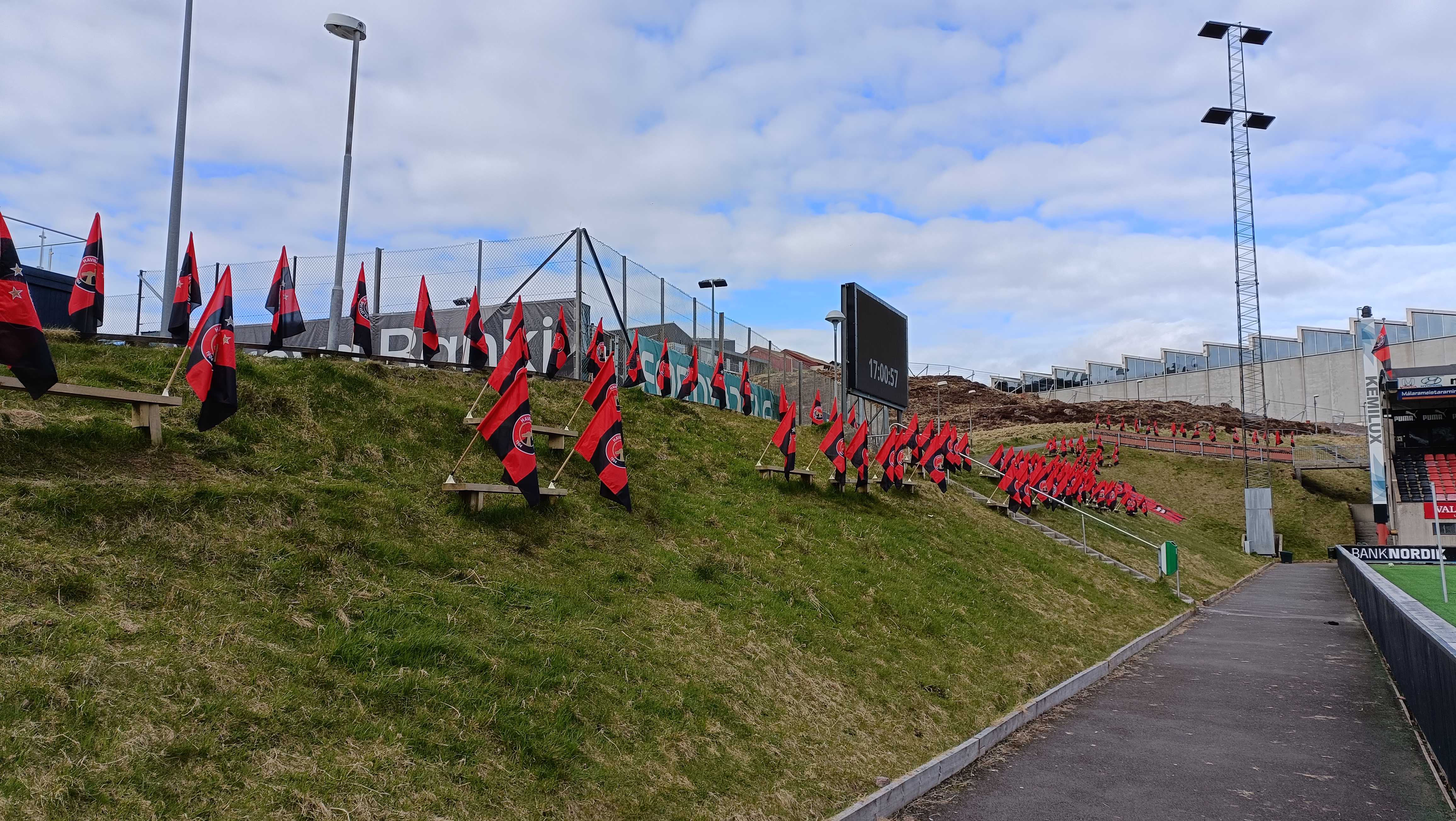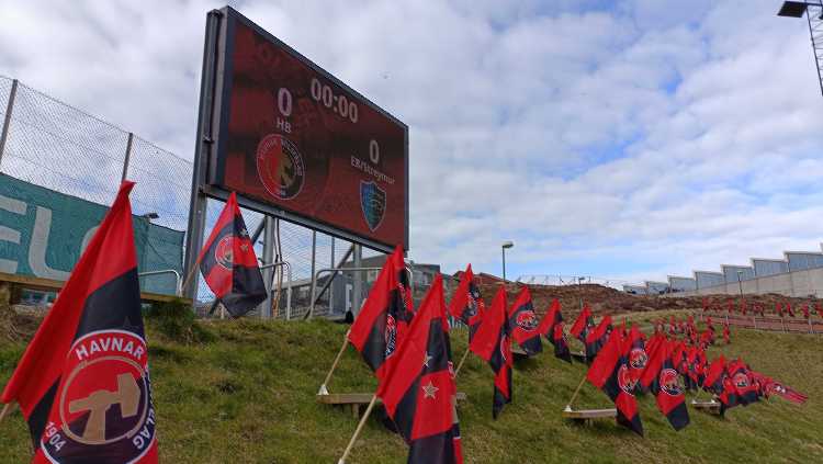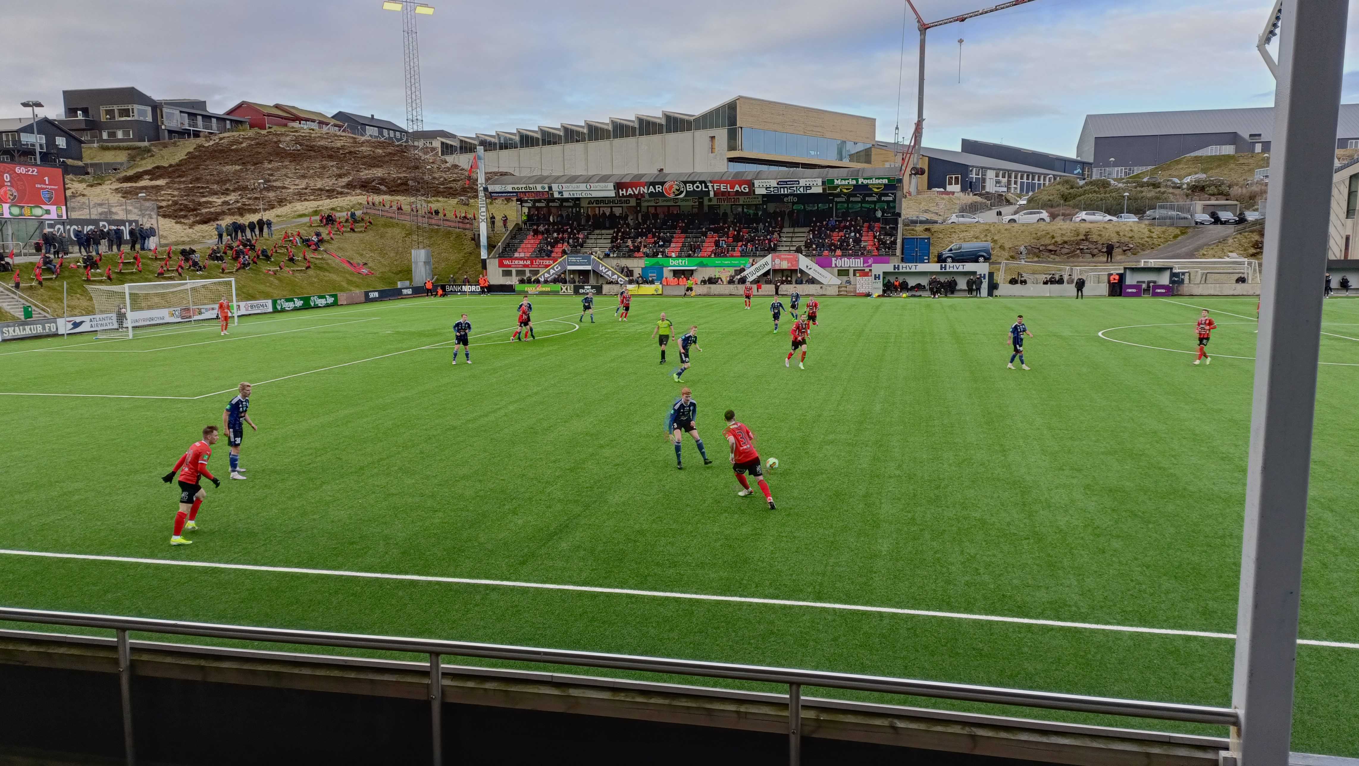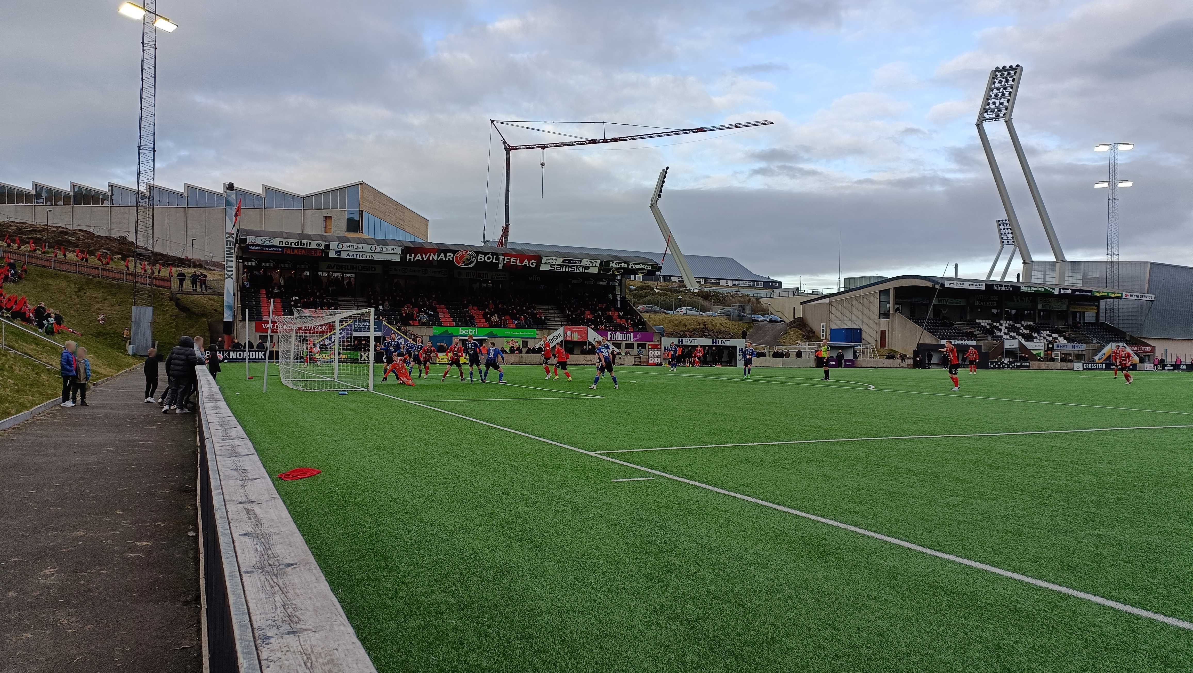 |  | | Po wschodniej stronie stadionu znajdują się dwie trybunki, jedna należy do HB, druga do B36 | |