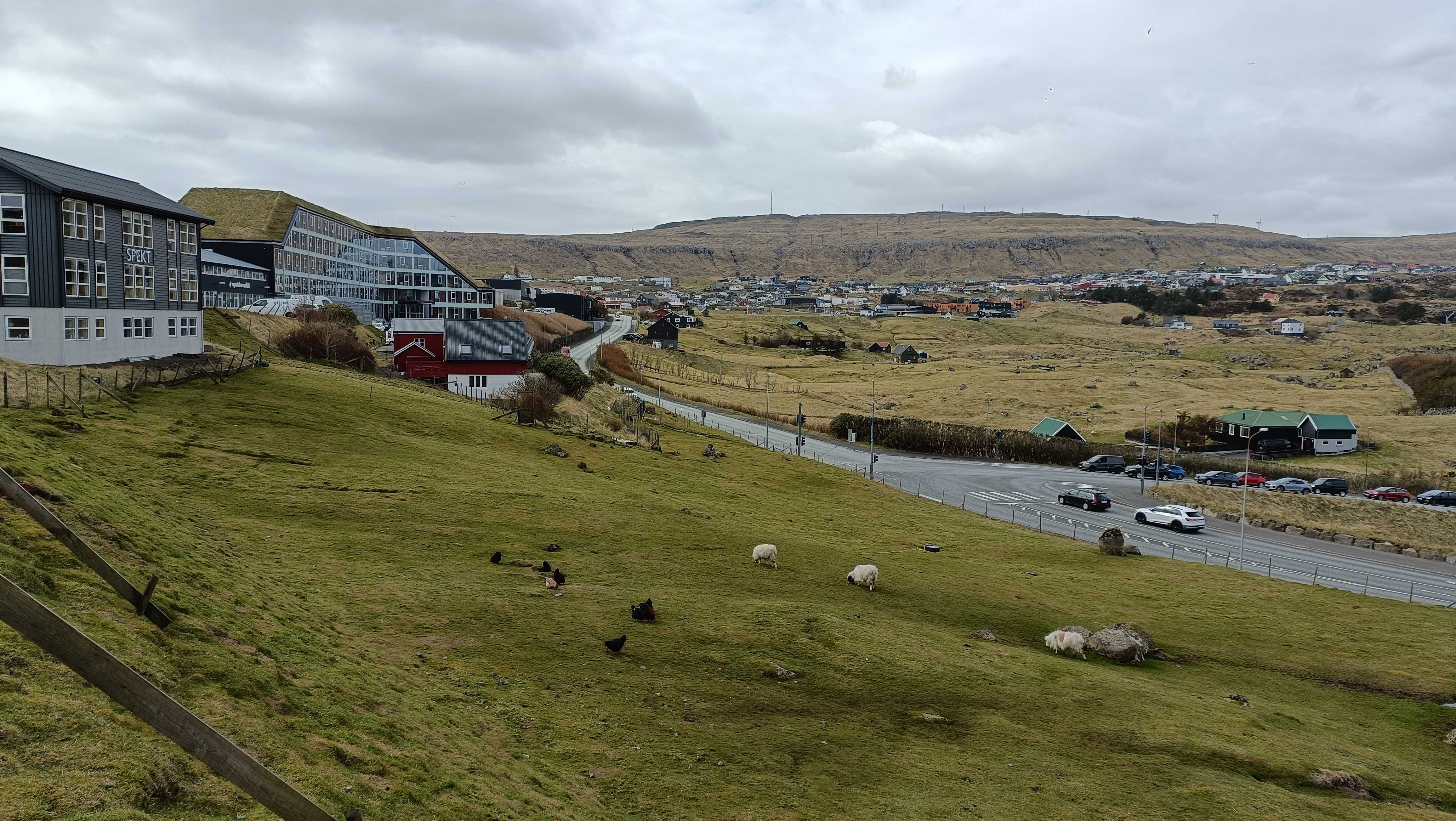 |  | | Absurdalny widok - na pierwszym planie srają owce, a w tle znajduje się hotel Hilton... kryty darnią | |