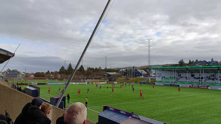 |  | | Powracamy na Gundadalur - od północnej strony boiska mamy dość unikalną ławeczkową trybunę | |
