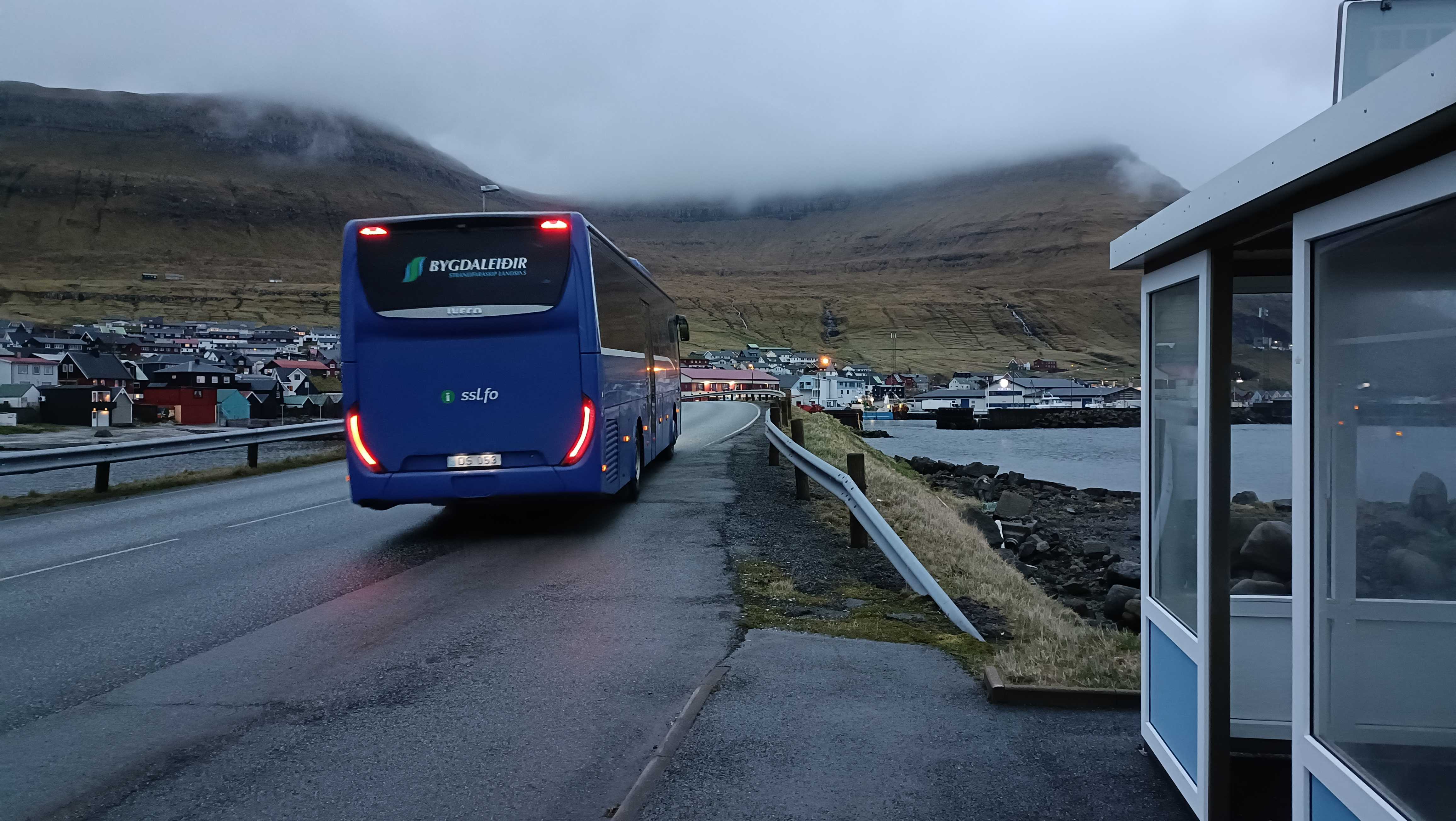 |  | | Sobota wieczór - przyjazd autobusem z Klaksvik (na wyspie Bordoy) do Leirvik (na wyspie Eysturoy), gdzie miałem nocleg | |