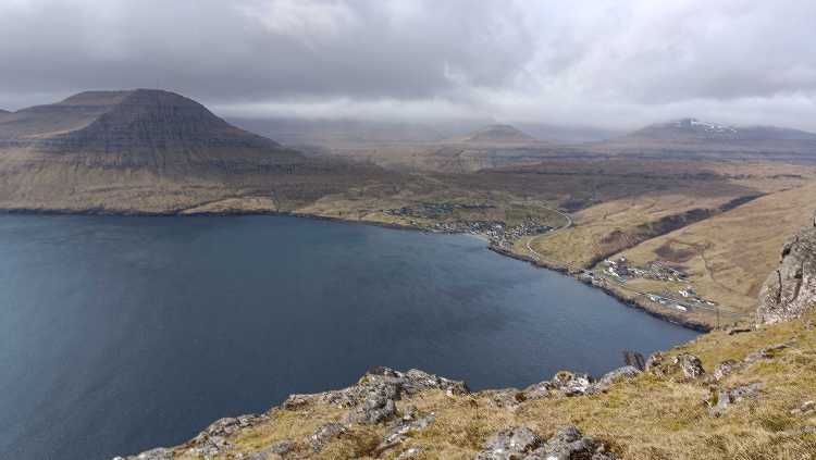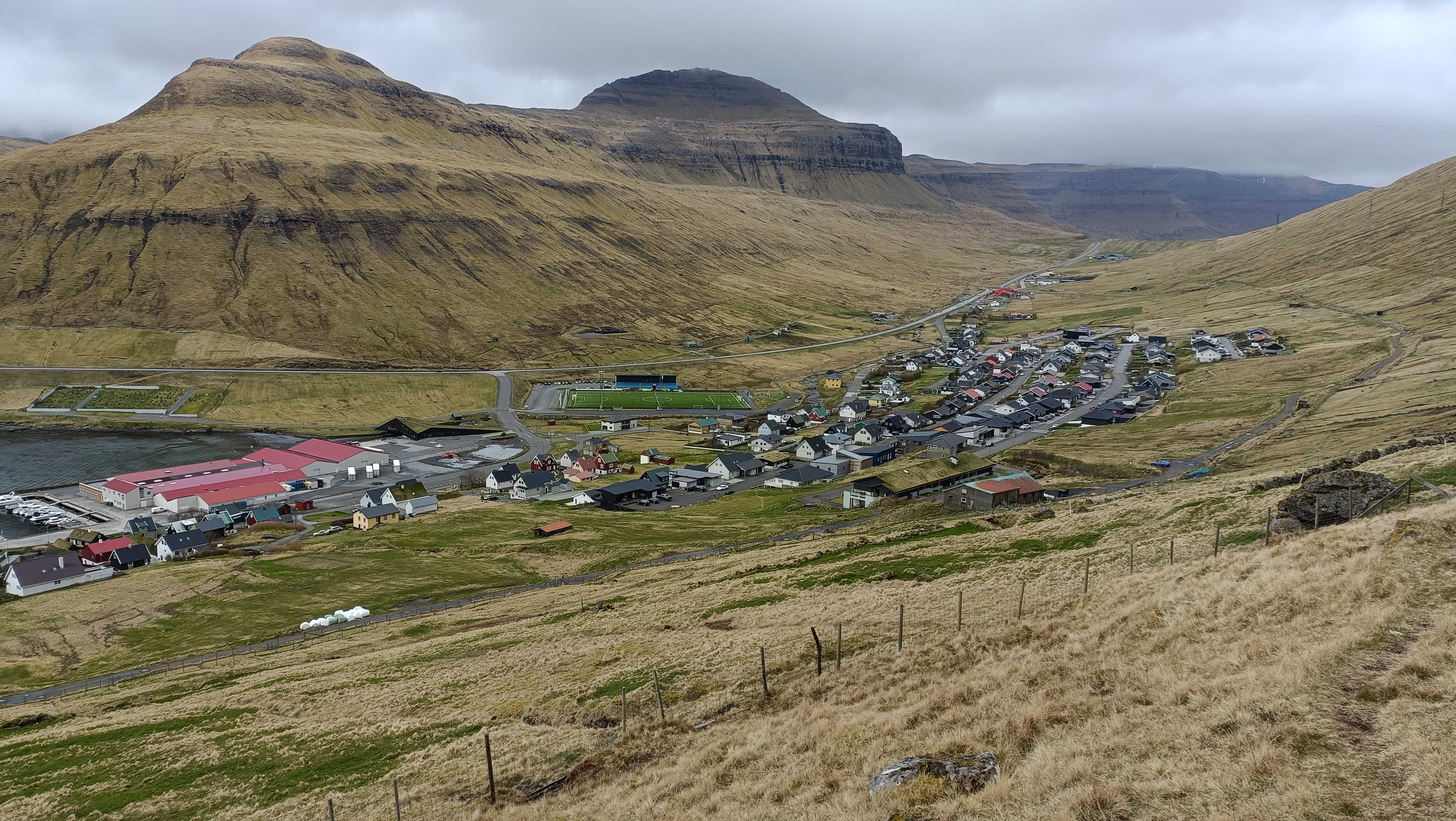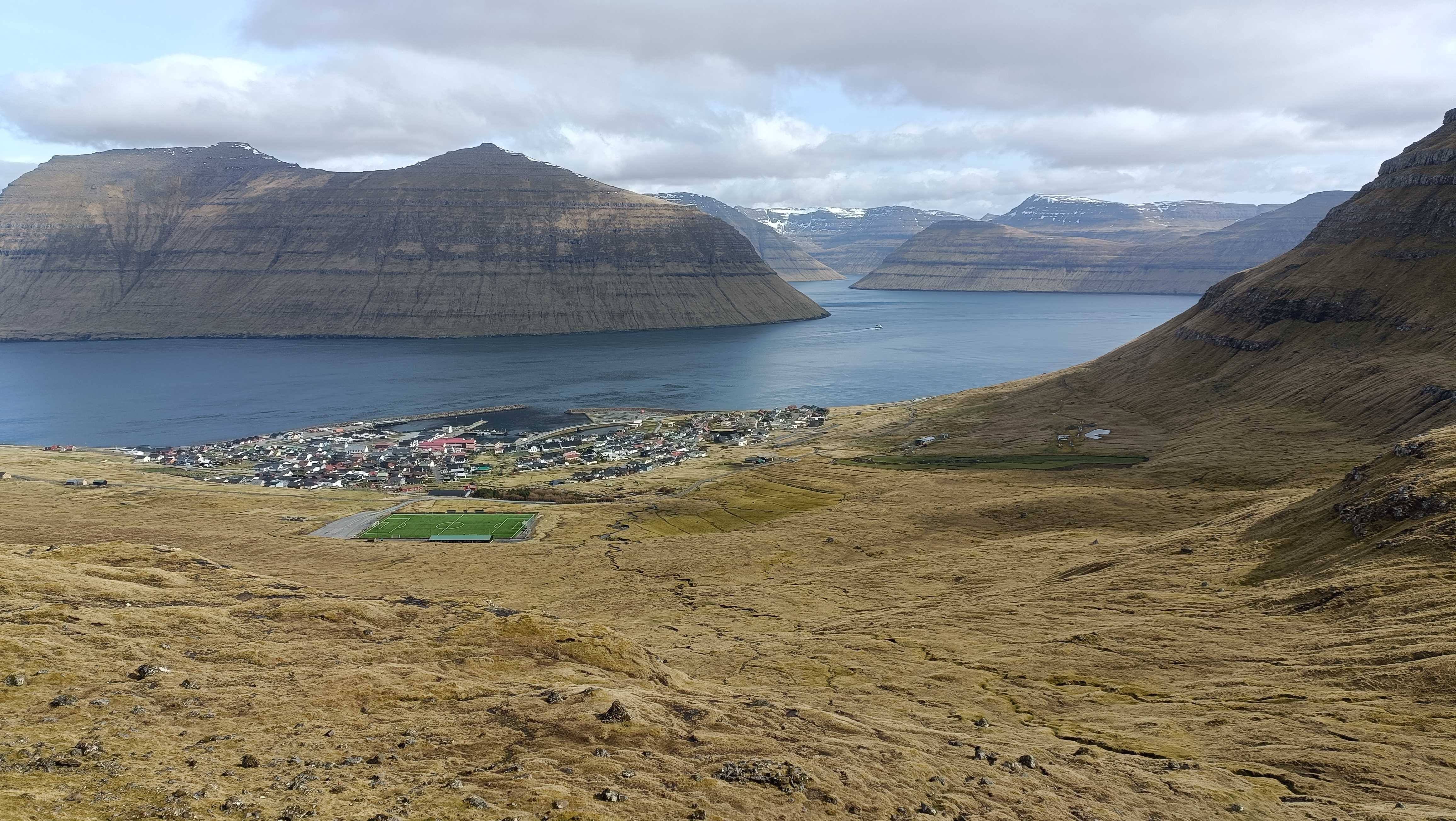 |  | | Widok ze szlaku na Knukur na Leirvik oraz stadion | |