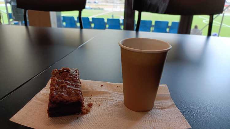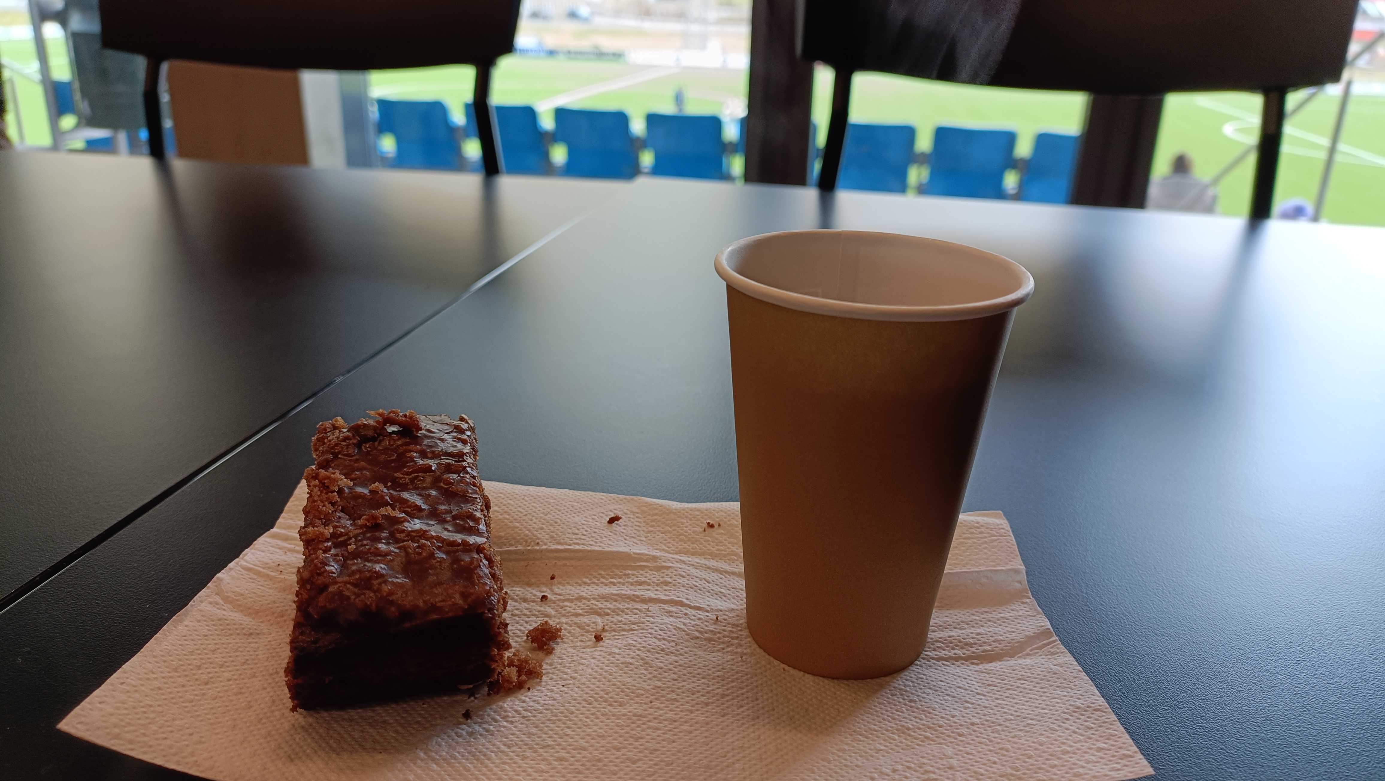 |  | | Nie wiem czy mi to przysługiwało, ale w przerwie meczu załapałem się na ciastko i herbatę | |