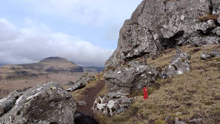 |  | | Przyjęło się, że szlaki górskie oznaczane są kupkami kamieni - w tym przypadku nie było wystarczająco dużo kamieni, więc postawiono słupki ze stosownym symbolem | |