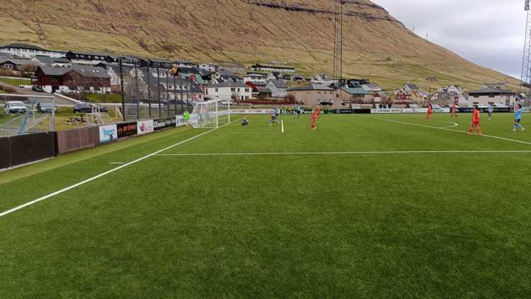 |  | | Piłka na połowie Vikingura | |