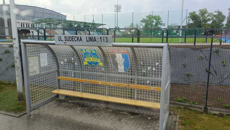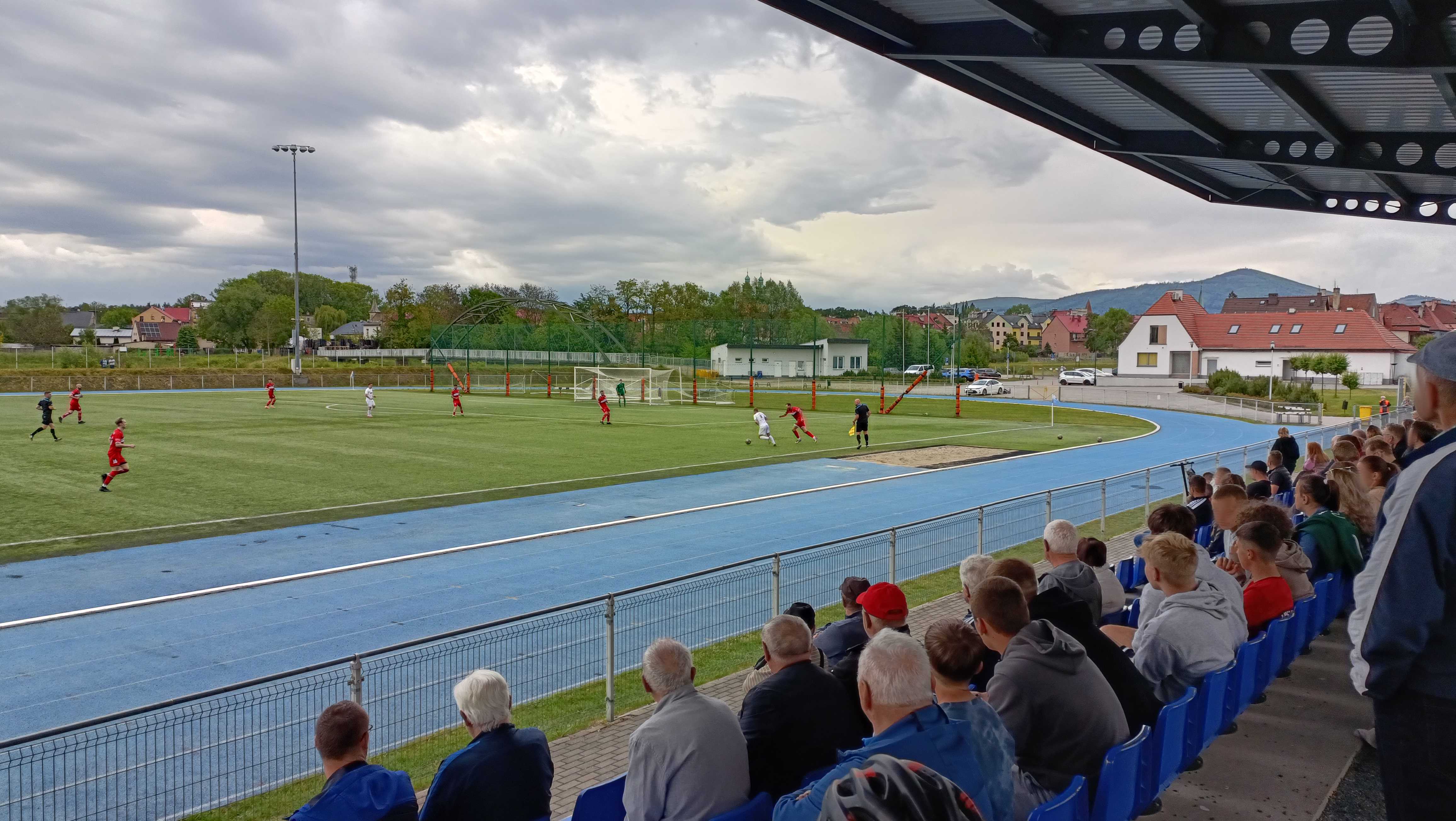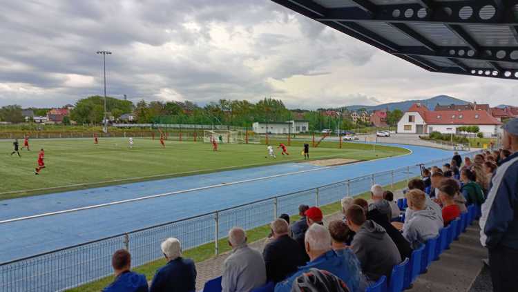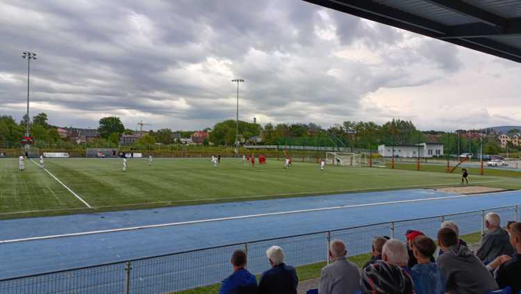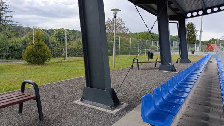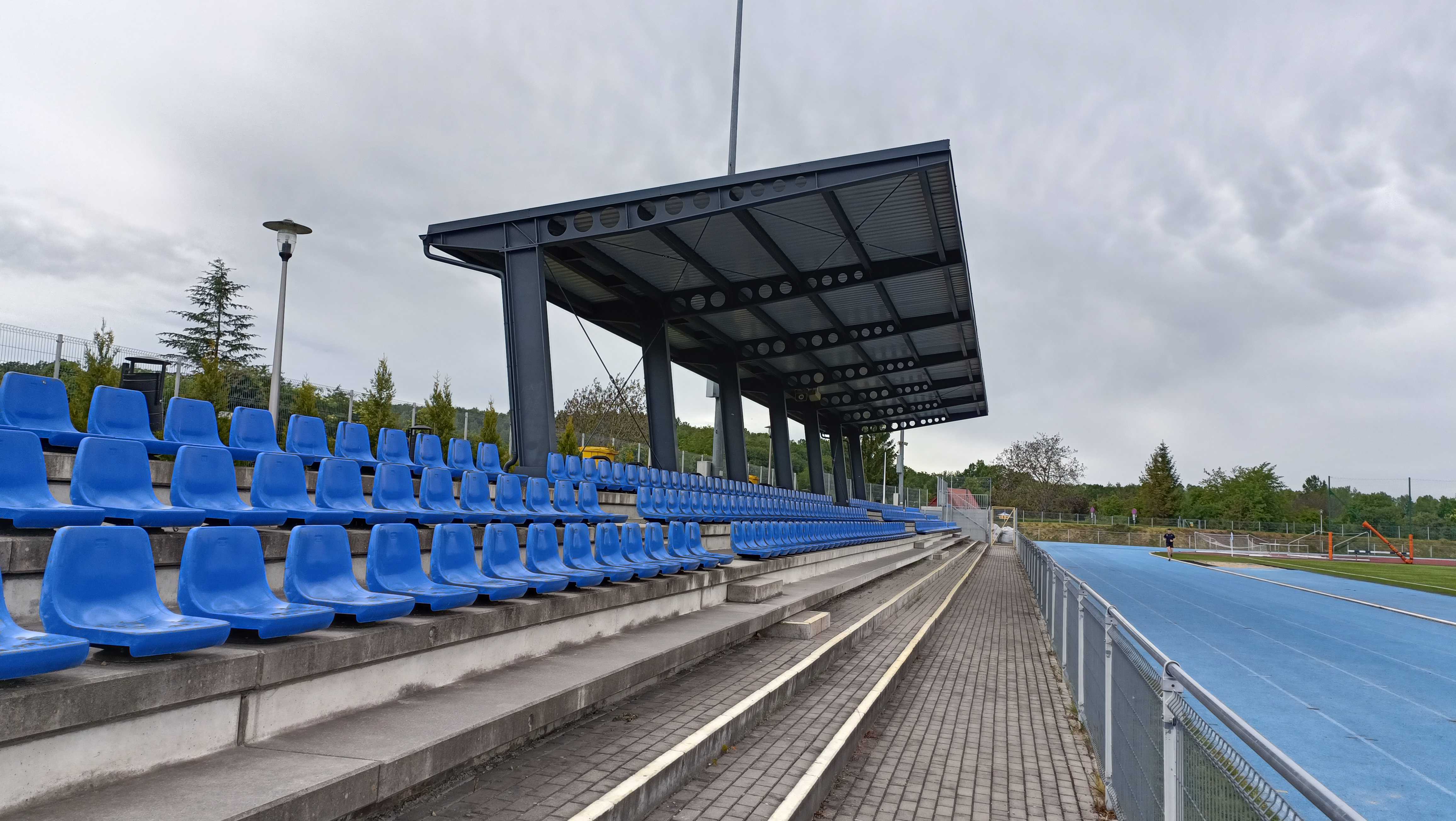 |  | | Zachodnia (i jedyna) trybuna Stadionu Miejskiego w Głuchołazach | |