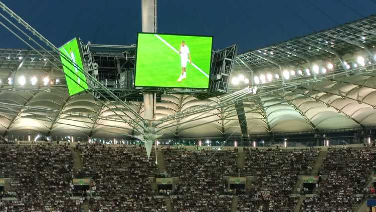 |  | | Kylian Mbappe prezentowany na stadionowych telebimach | |