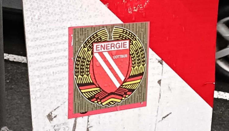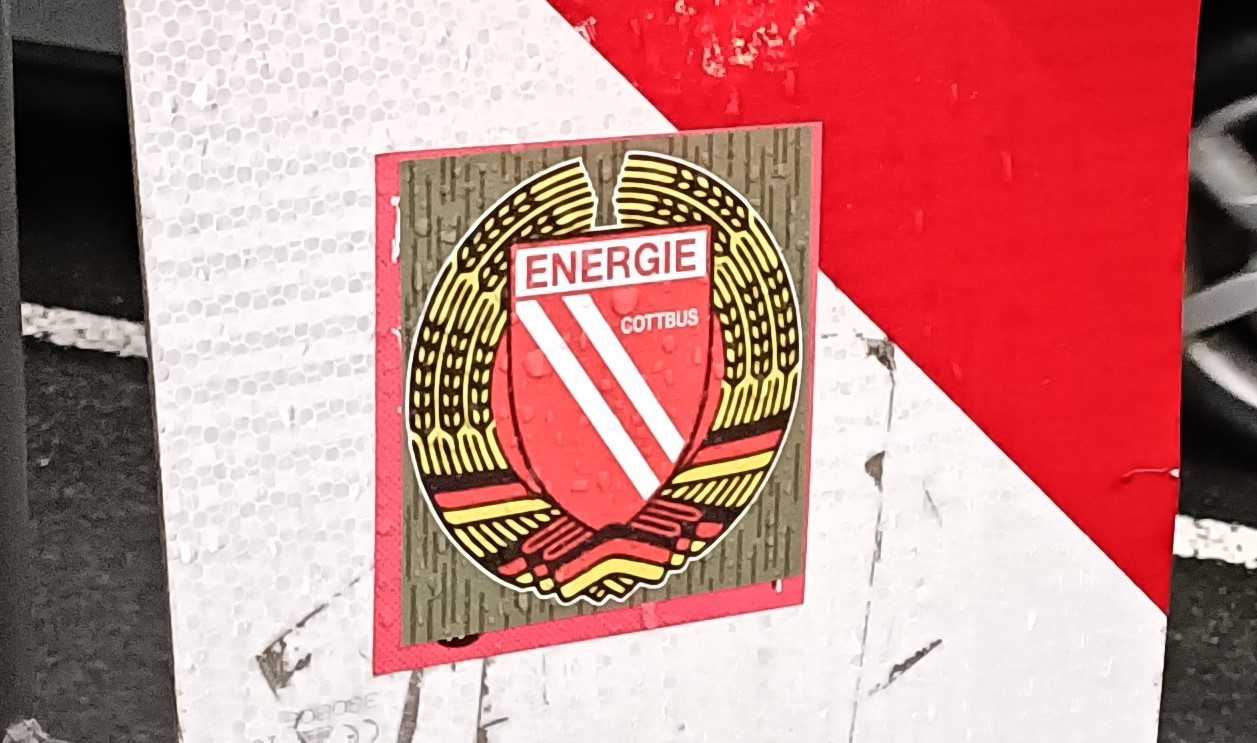 |  | | Vlepka kibiców Energie Cottbus - zwróćcie uwagę na piękny wieniec wzięty wprost w godła DDR | |