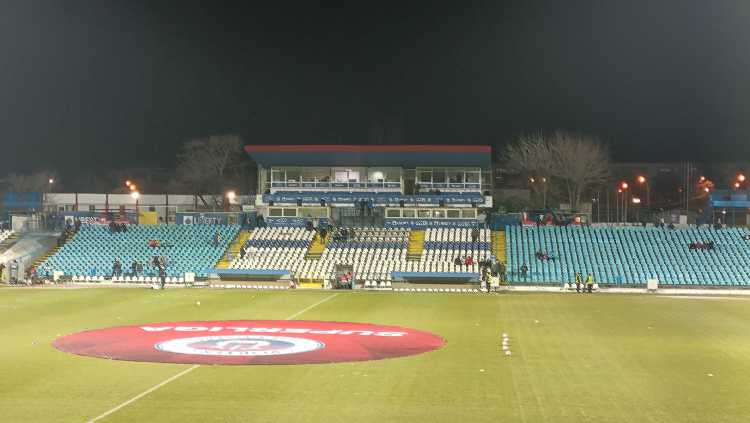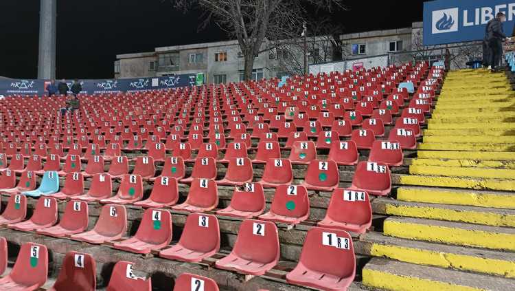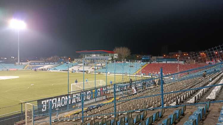 |  | | Trybuna zachodnia - tak, ten budynek w centralnym miejscu to jedyne zadaszenie występujące na stadionie | |